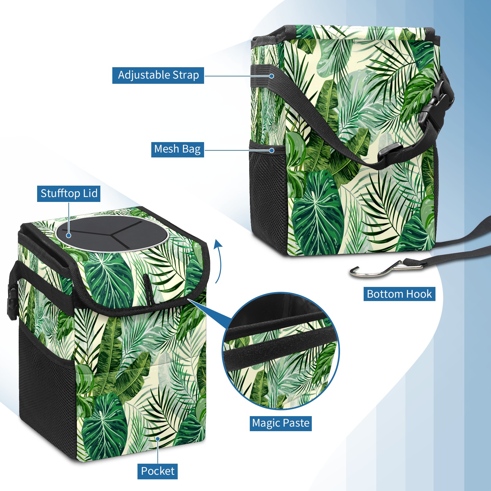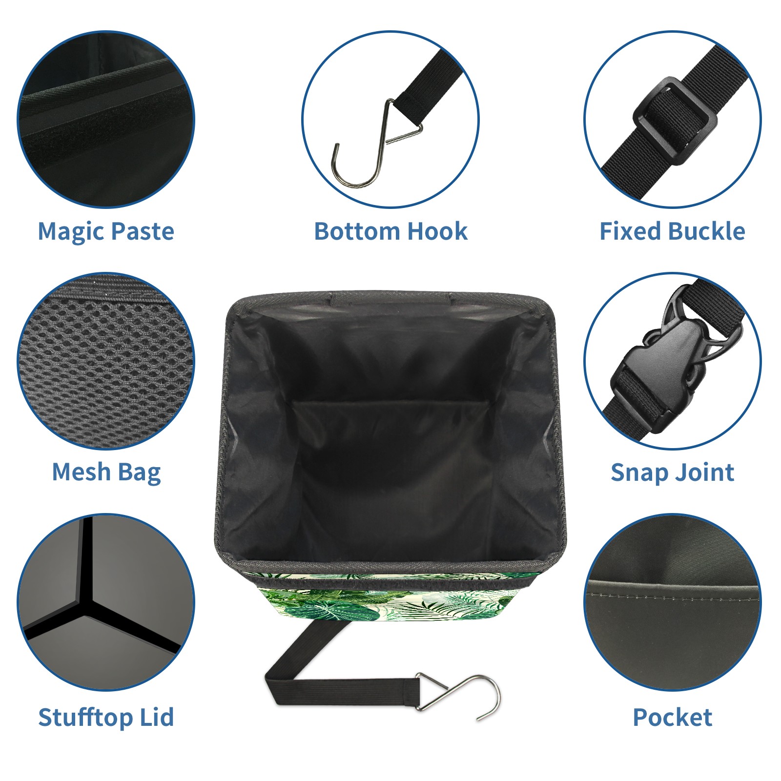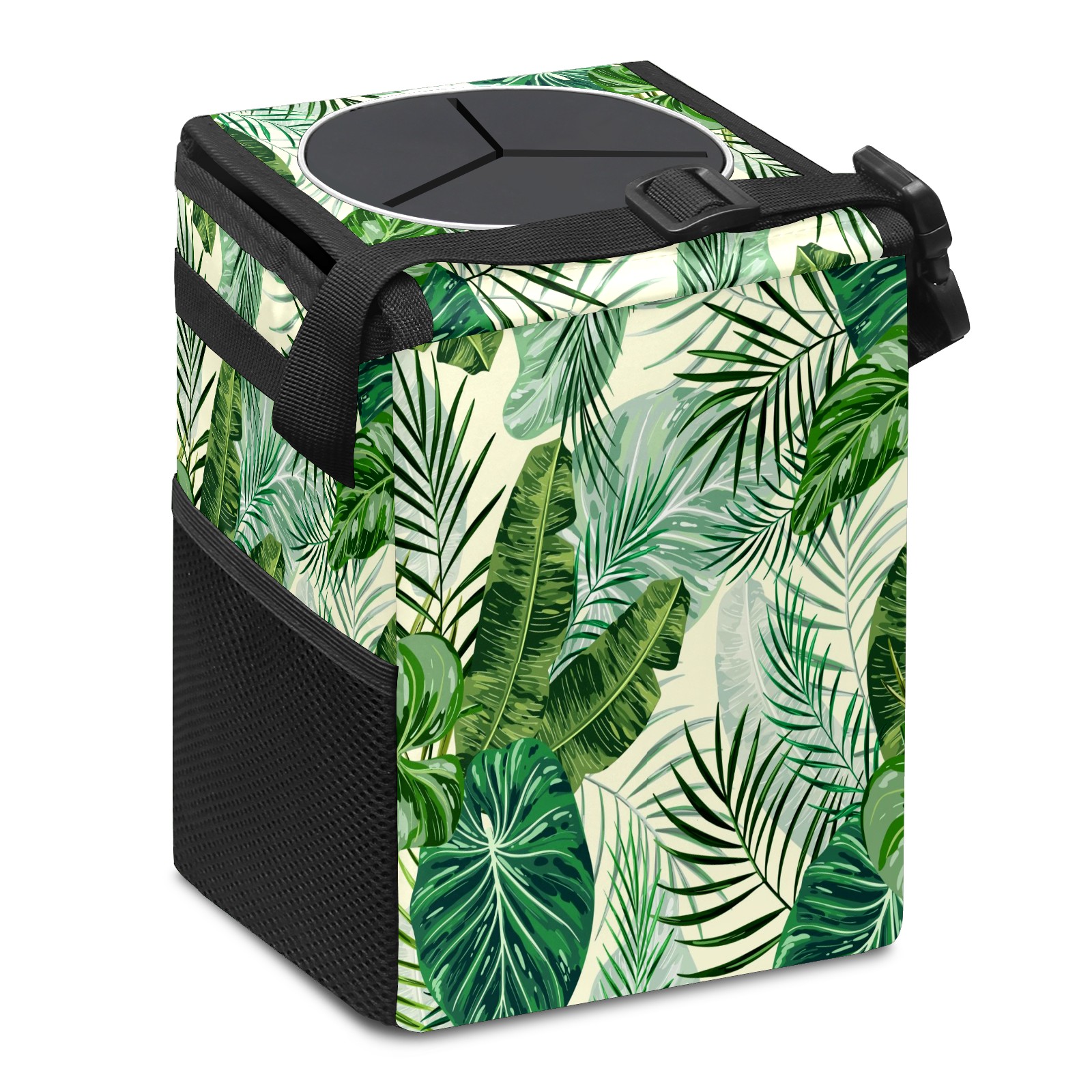 Car Garbage Can — Multi-functional, Lightweight Portable, Reusable Vehicle Trash Can, Waterproof with Sufficient Storage Capacity Green Tropical Leaves Background