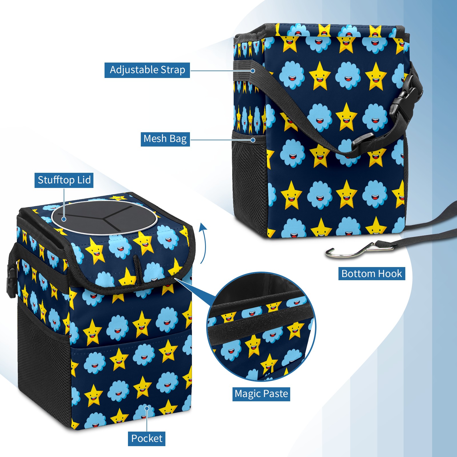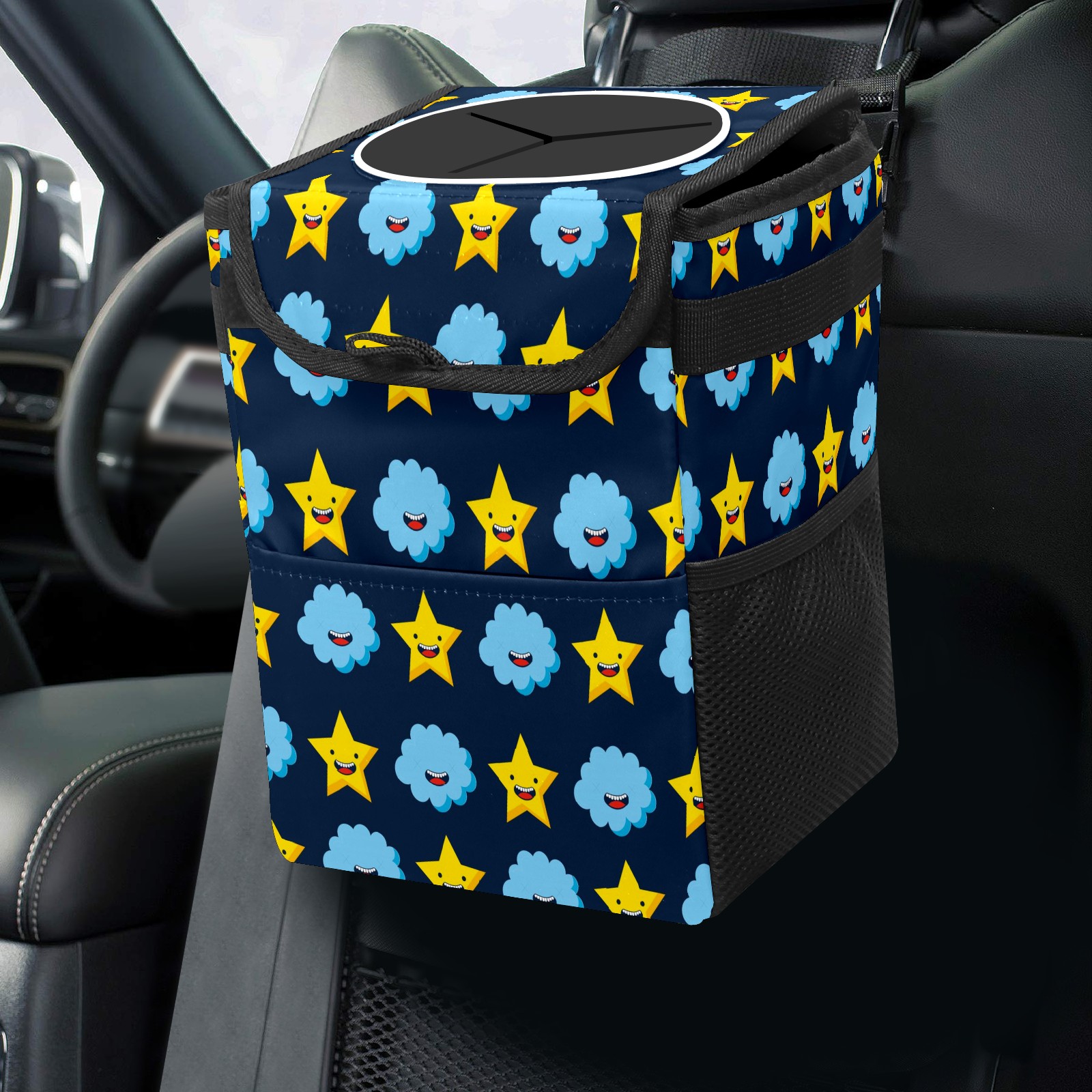 Car Garbage Can — Multi-functional, Lightweight Portable, Reusable Vehicle Trash Can, Waterproof with Sufficient Storage Capacity Cloud Star Pattern