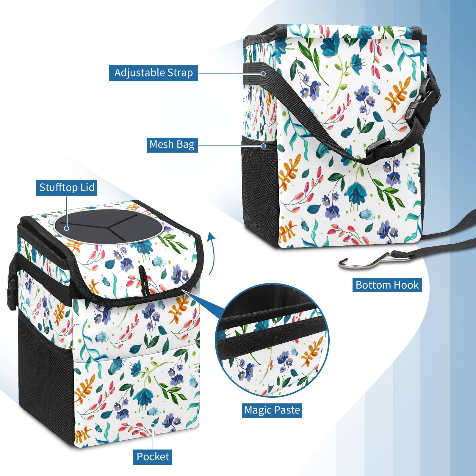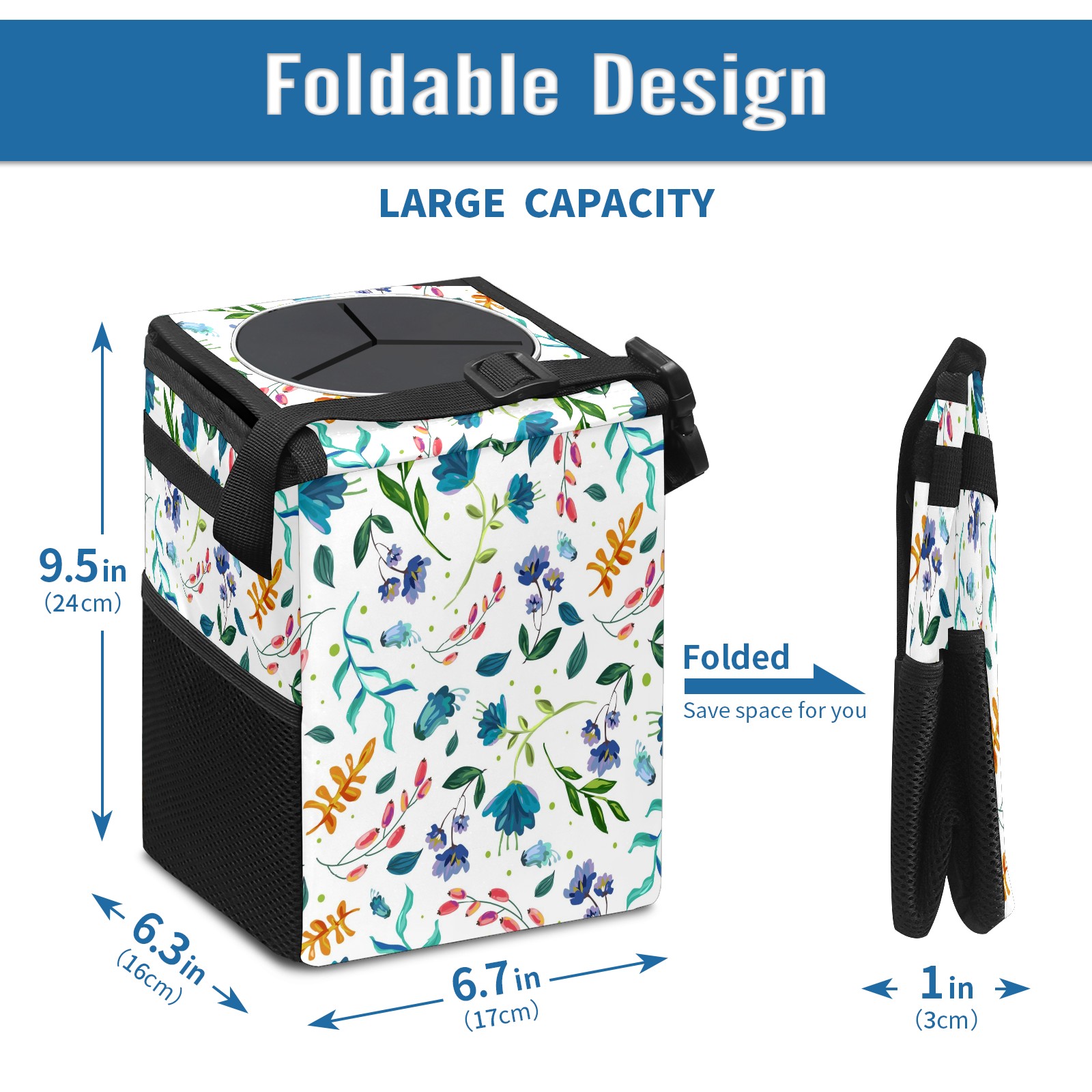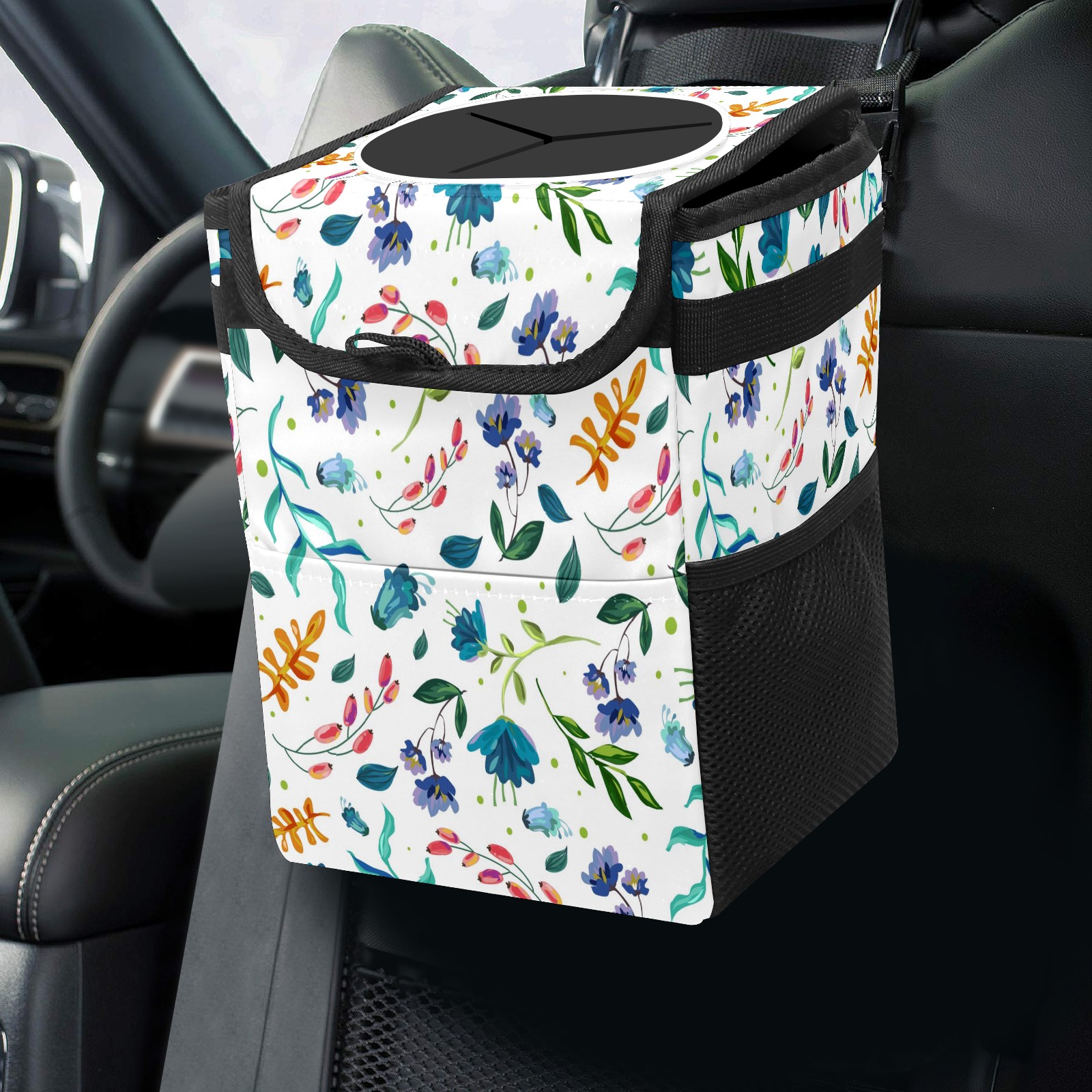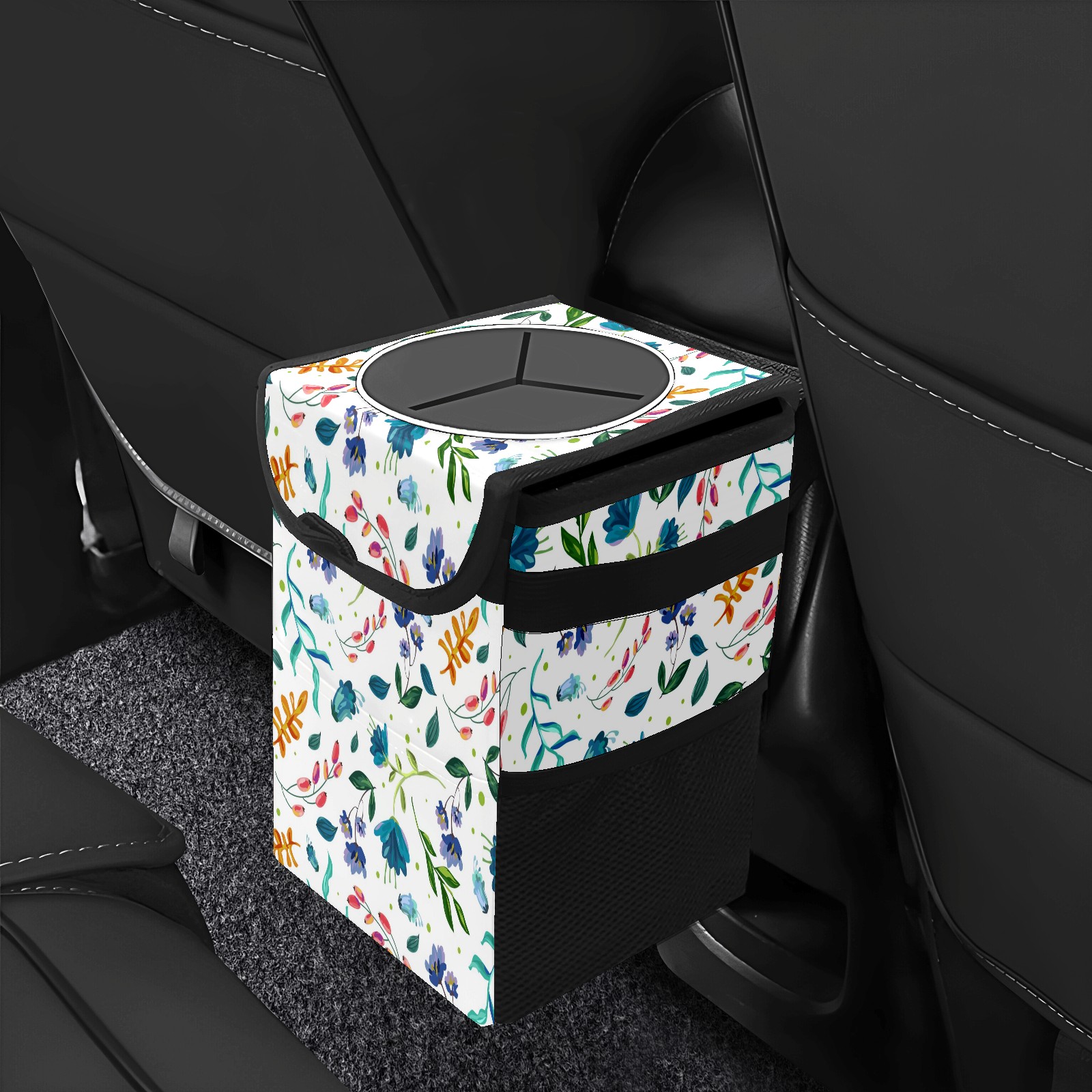 Car Garbage Can — Multi-functional, Lightweight Portable, Reusable Vehicle Trash Can, Waterproof with Sufficient Storage Capacity Batural Colorful Painted Flowers