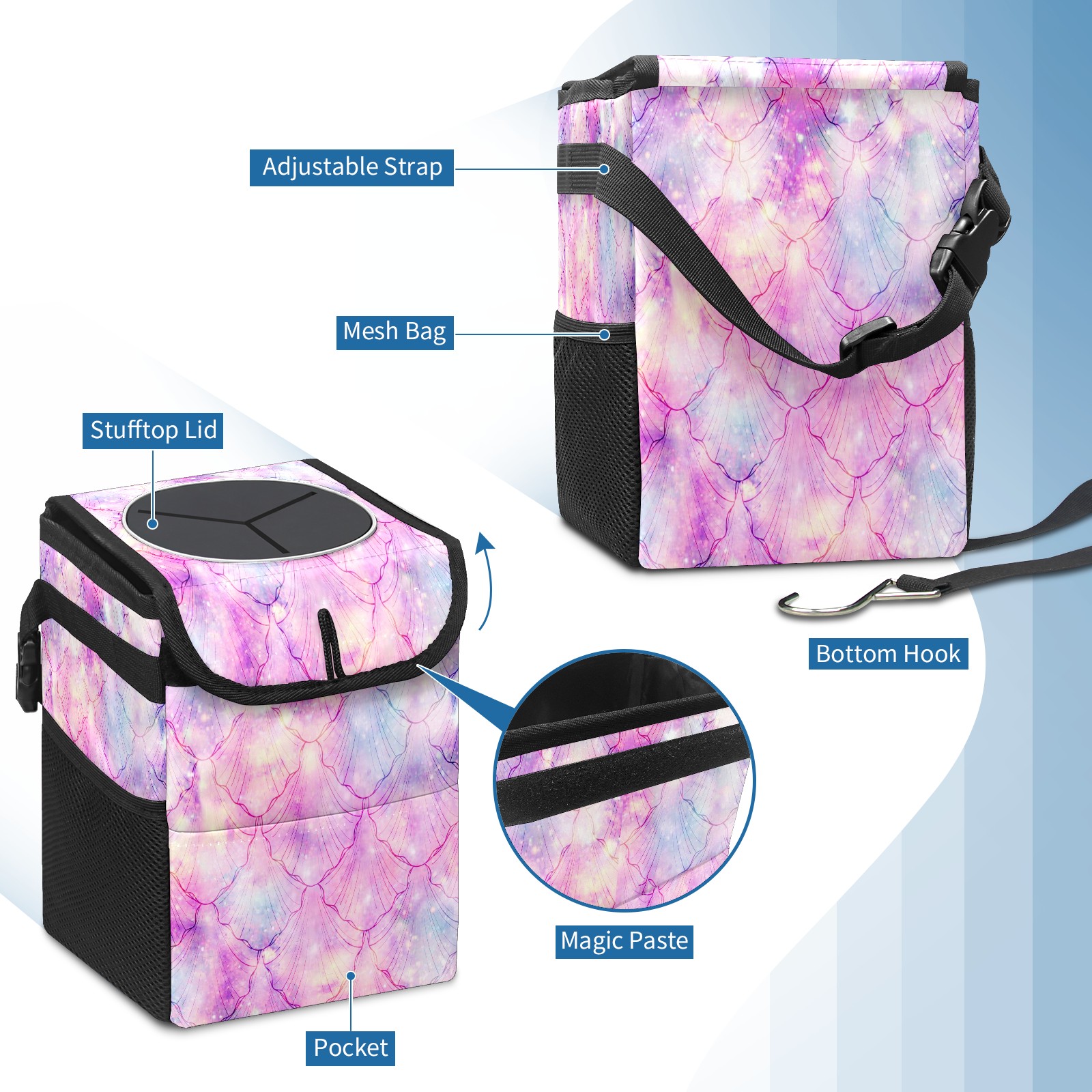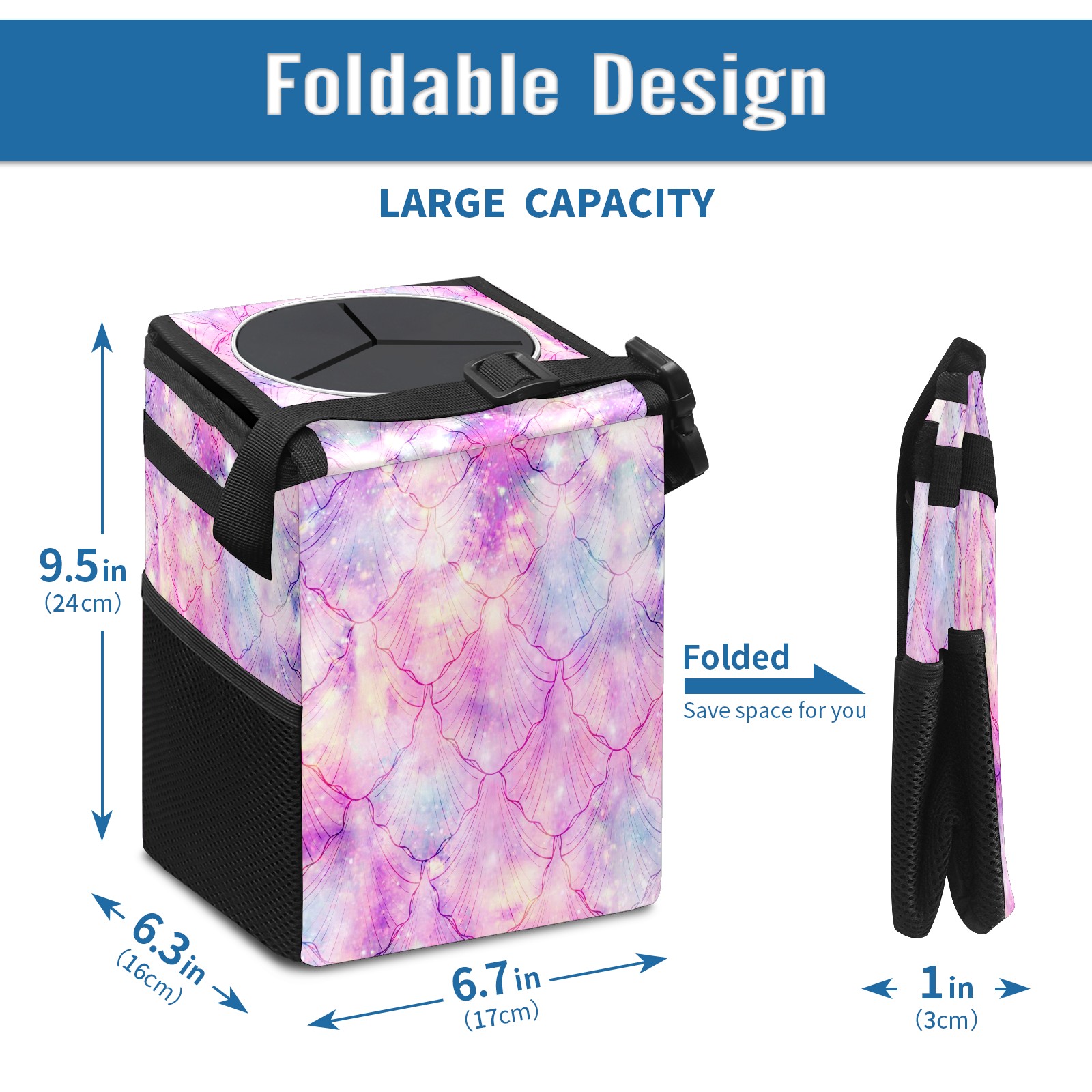 Car Garbage Can — Multi-functional, Lightweight Portable, Reusable Vehicle Trash Can, Waterproof with Sufficient Storage Capacity Beautiful Pink Mermaid Scale