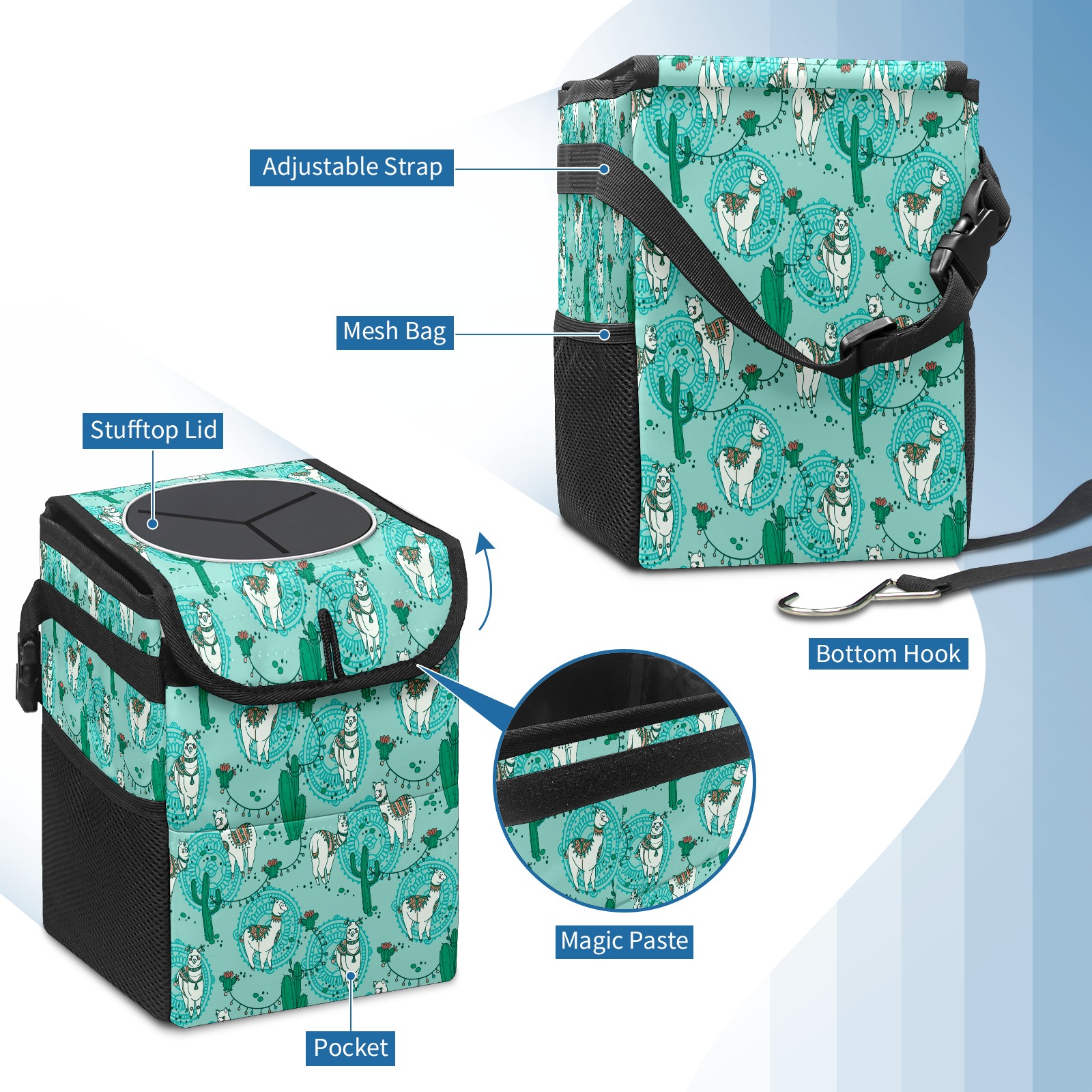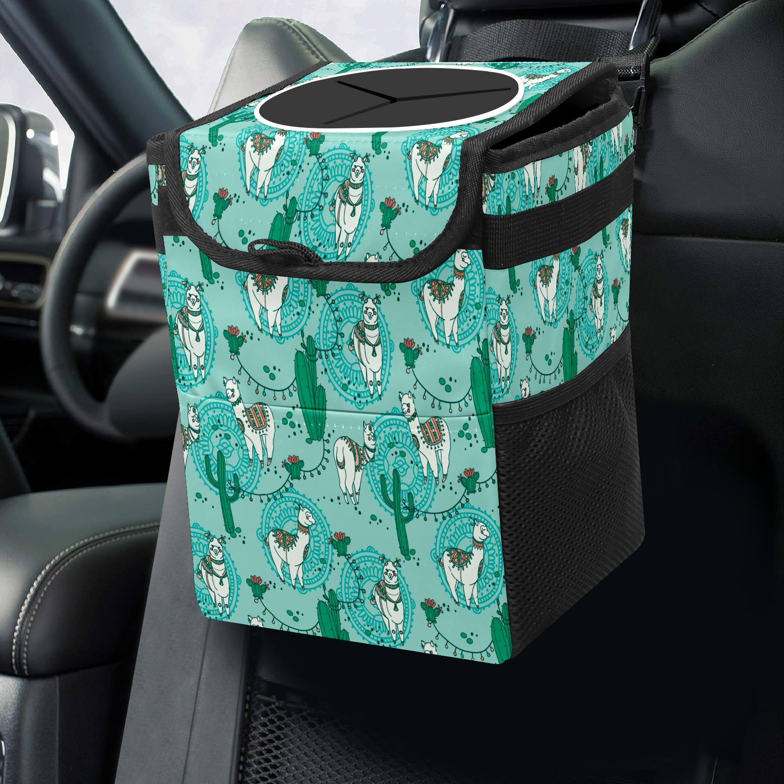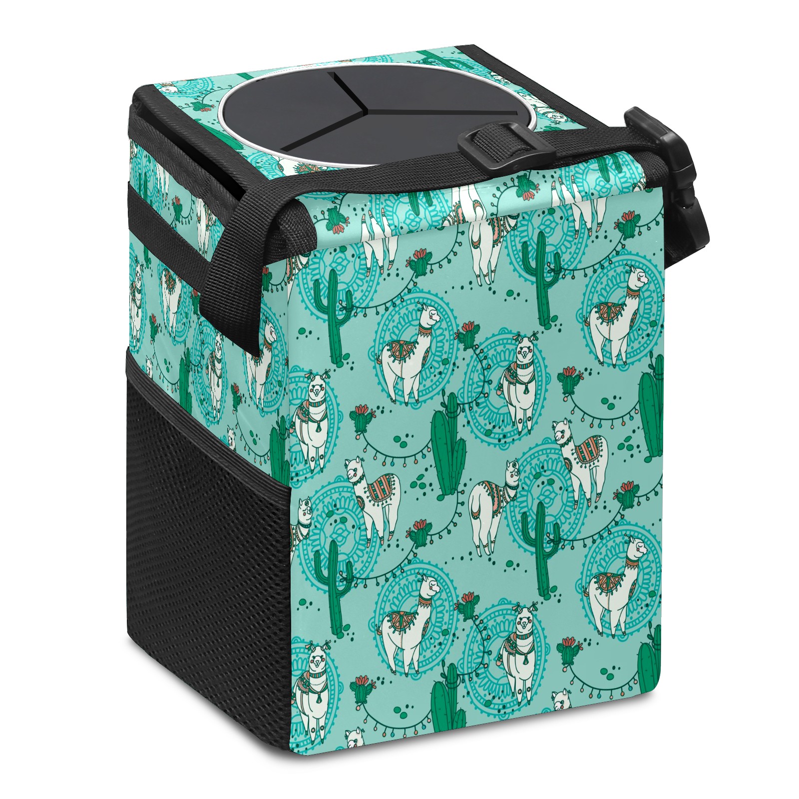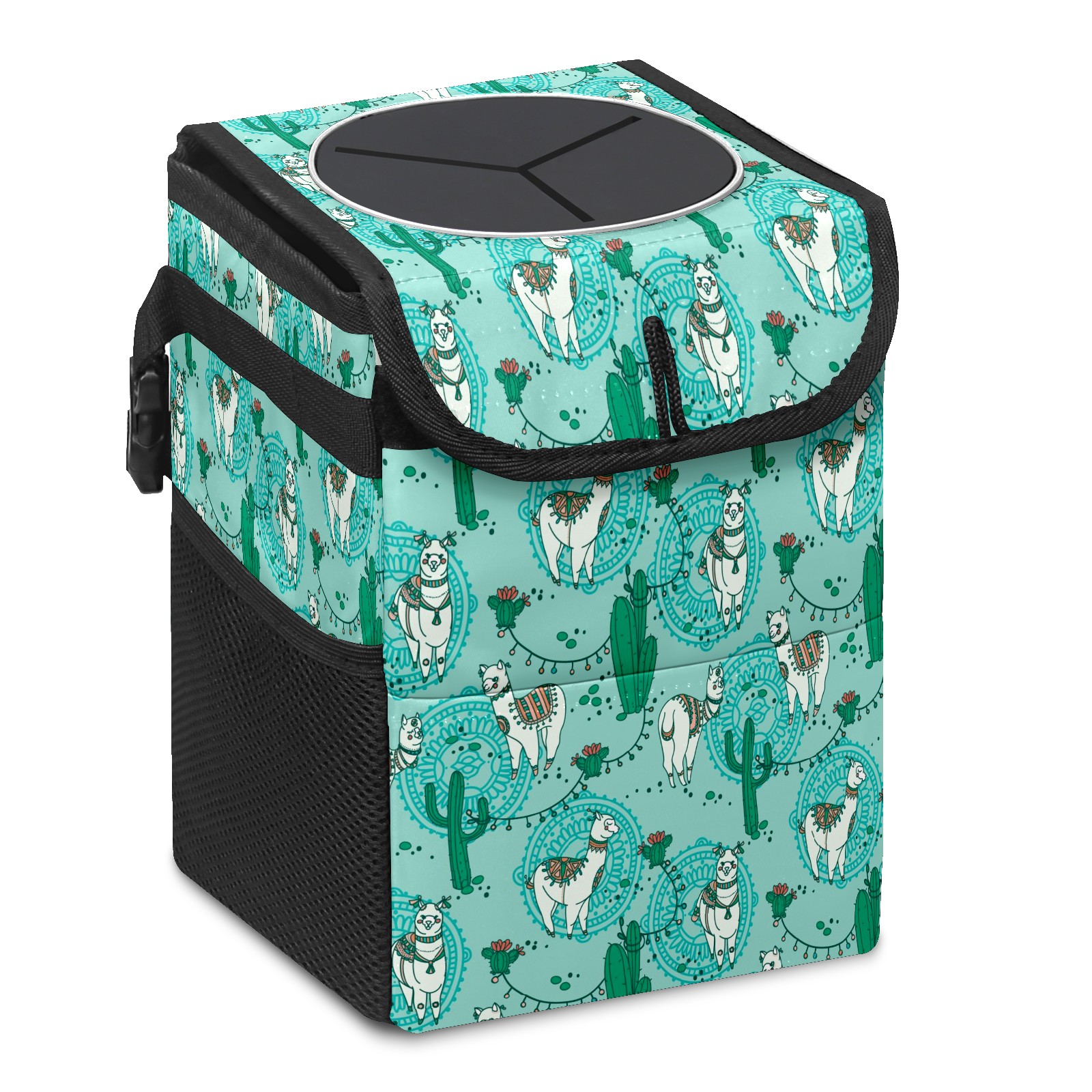 Car Garbage Can — Multi-functional, Lightweight Portable, Reusable Vehicle Trash Can, Waterproof with Sufficient Storage Capacity Green Alpaca Cactus Cute Cartoon Llama