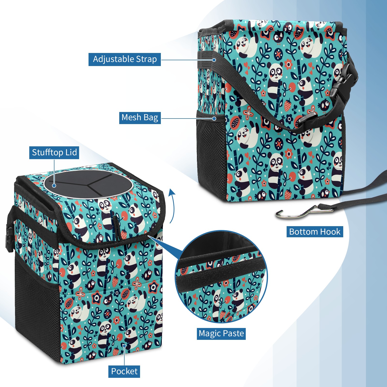 Car Garbage Can — Multi-functional, Lightweight Portable, Reusable Vehicle Trash Can, Waterproof with Sufficient Storage Capacity パンダ 竹 花