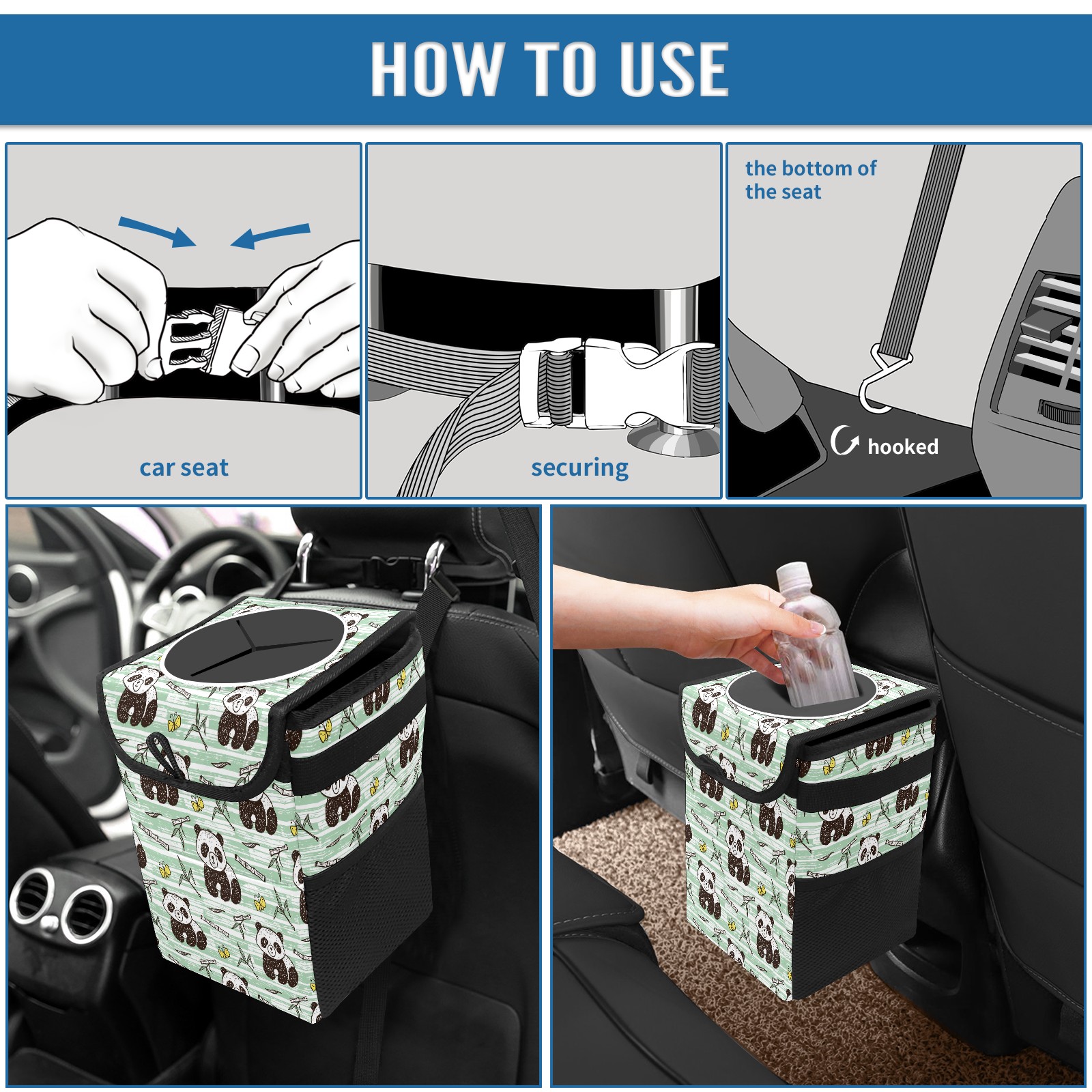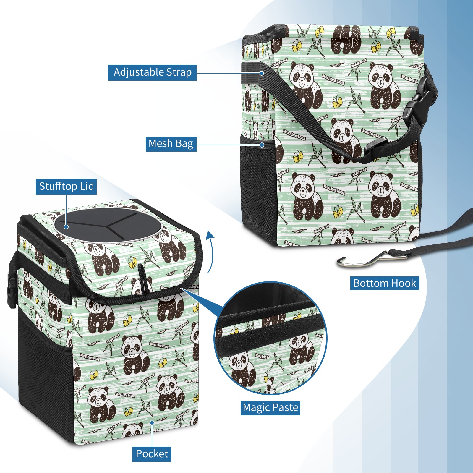 Car Garbage Can — Multi-functional, Lightweight Portable, Reusable Vehicle Trash Can, Waterproof with Sufficient Storage Capacity パンダ 竹 国宝