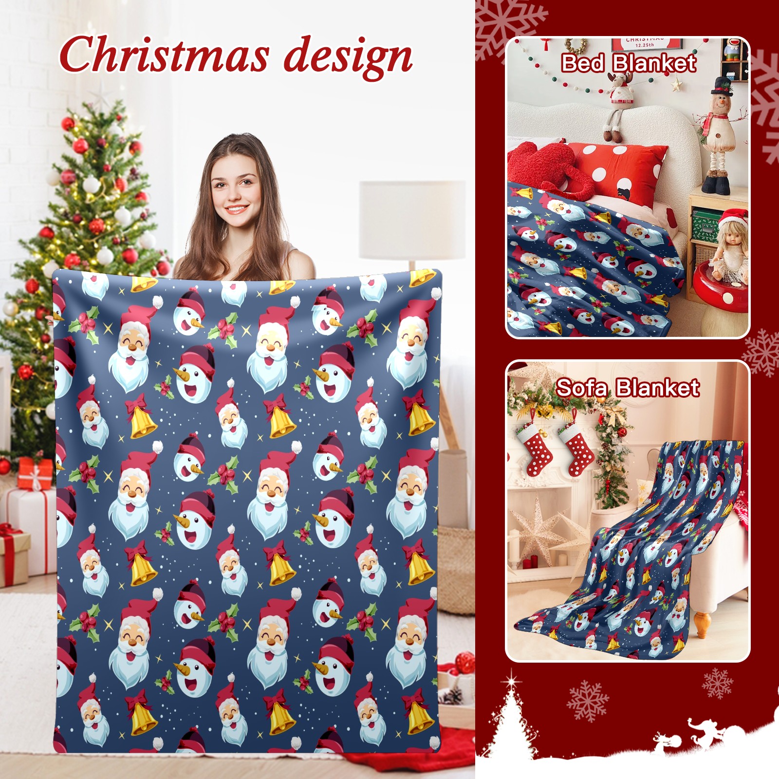 Премиальная фланелевая одеяло Santa Claus