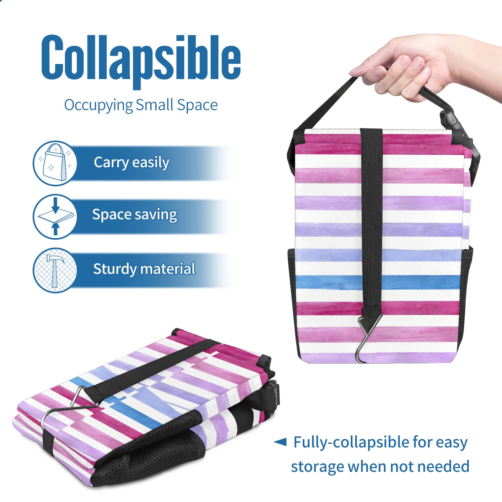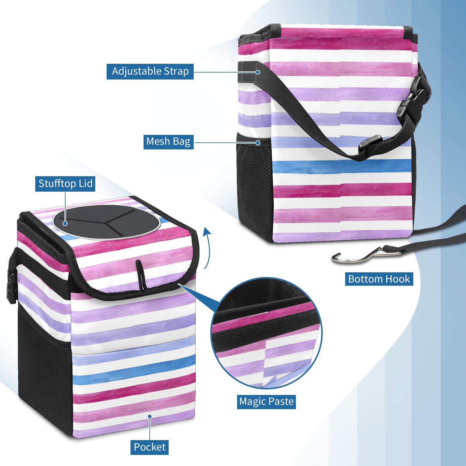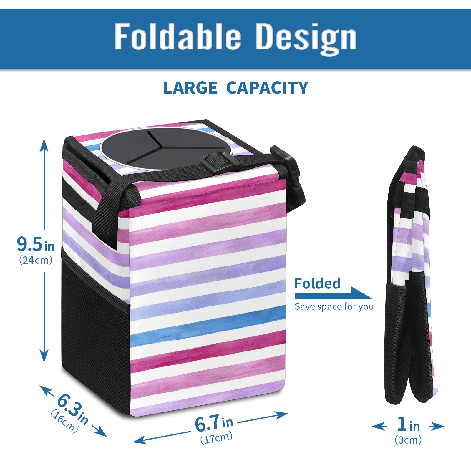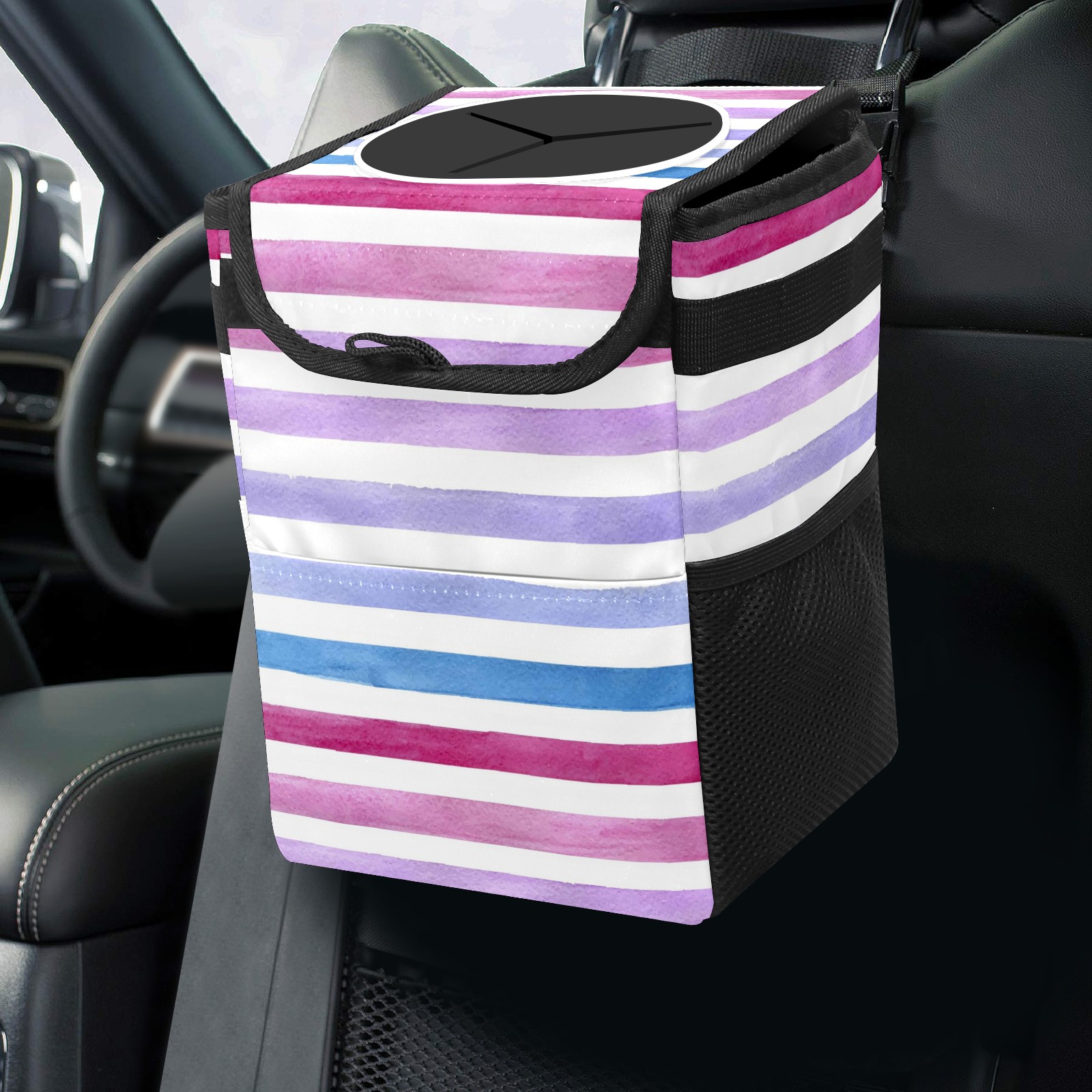 Car Garbage Can — Multi-functional, Lightweight Portable, Reusable Vehicle Trash Can, Waterproof with Sufficient Storage Capacity Colorful Stripe