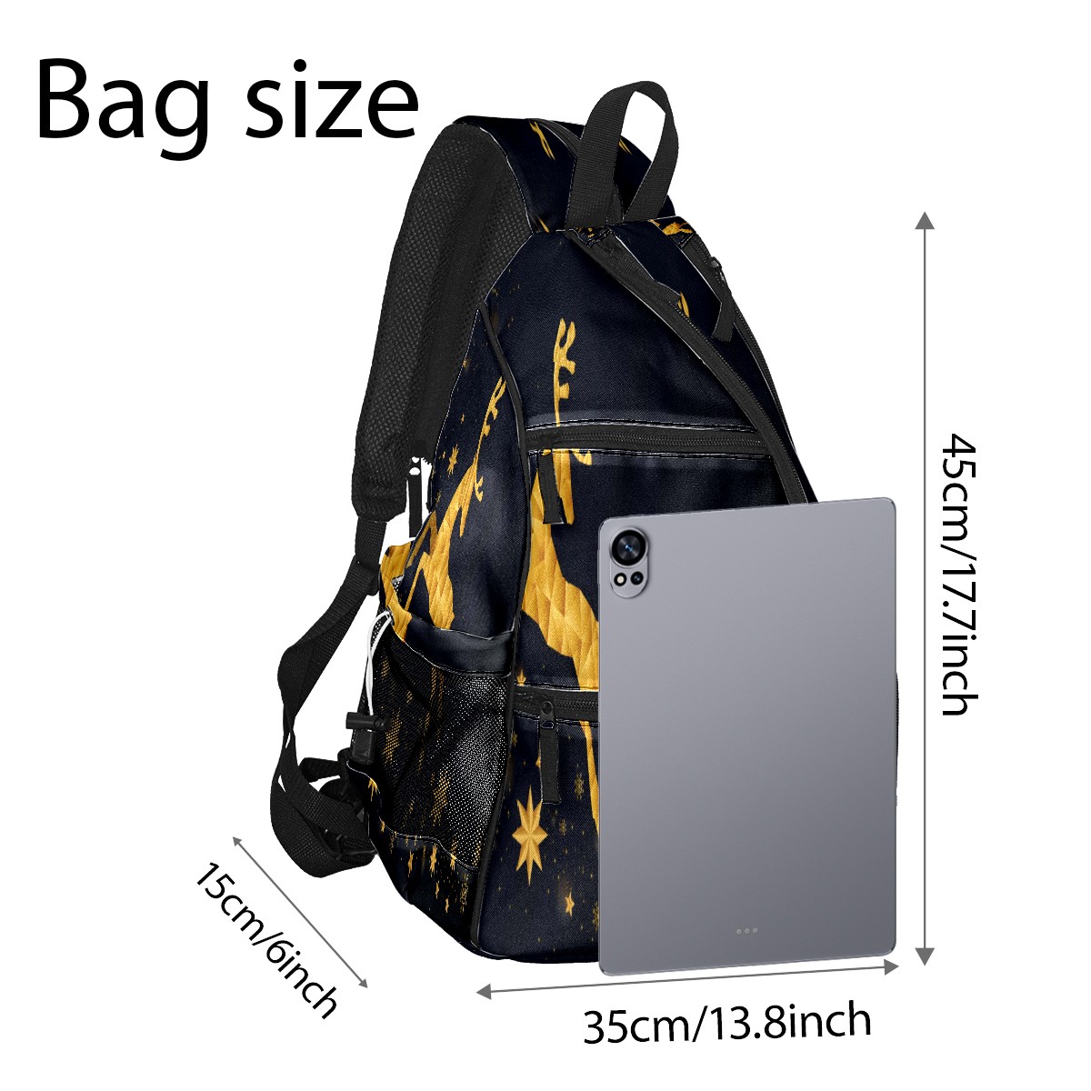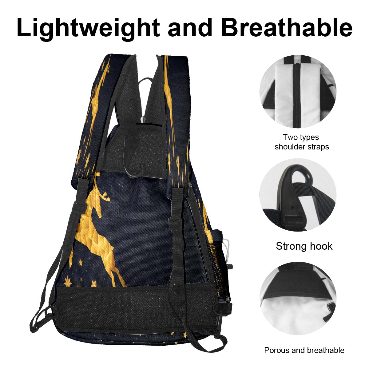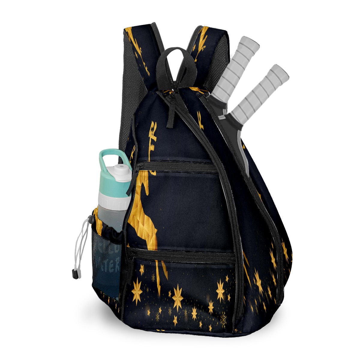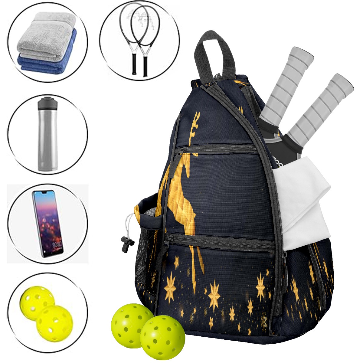 Multifunctional Pickleball Bag,Large Capacity Sports Pickleball Racket Bag, Water Bottle Holder and Fence Hook,Suitable for Both Men Women -Merry Christmas Golden Reindeer
