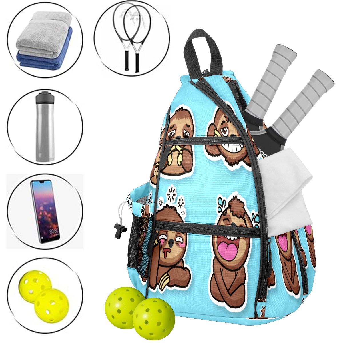 Multifunctional Pickleball Bag,Large Capacity Sports Pickleball Racket Bag, Water Bottle Holder and Fence Hook,Suitable for Both Men Women -Funny Stickers Sloth