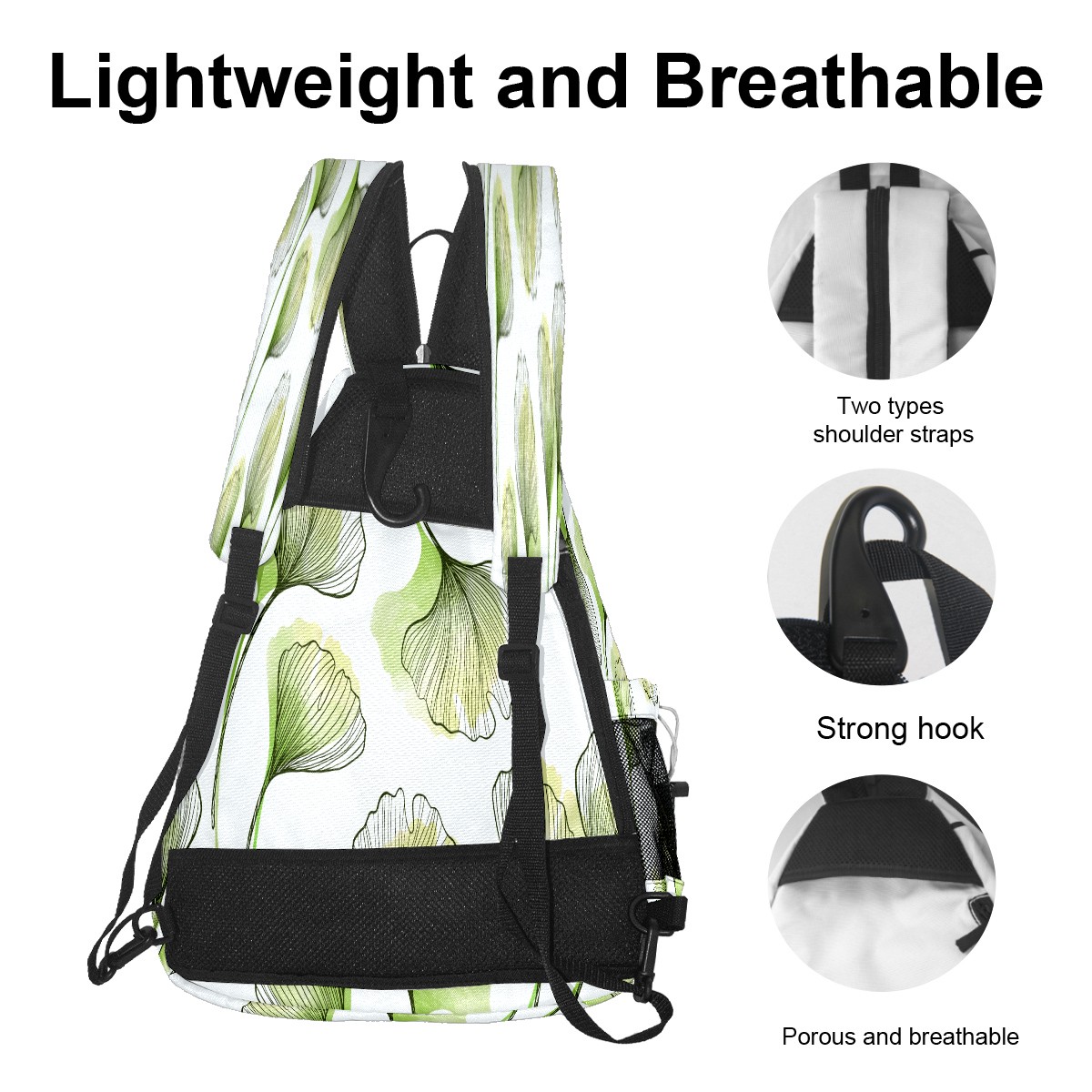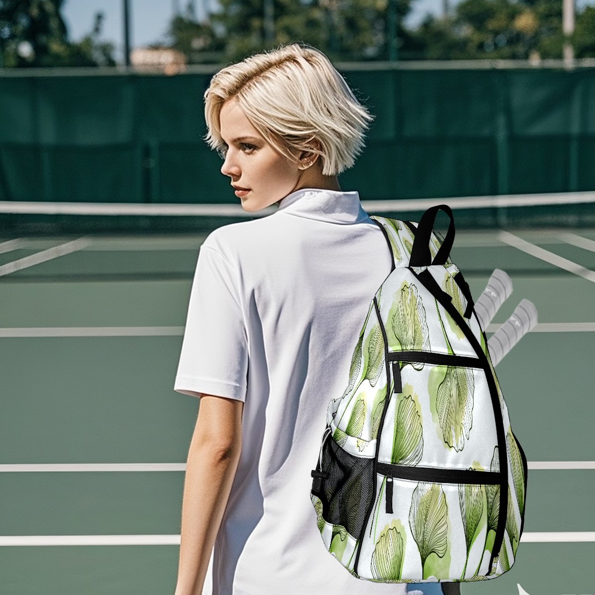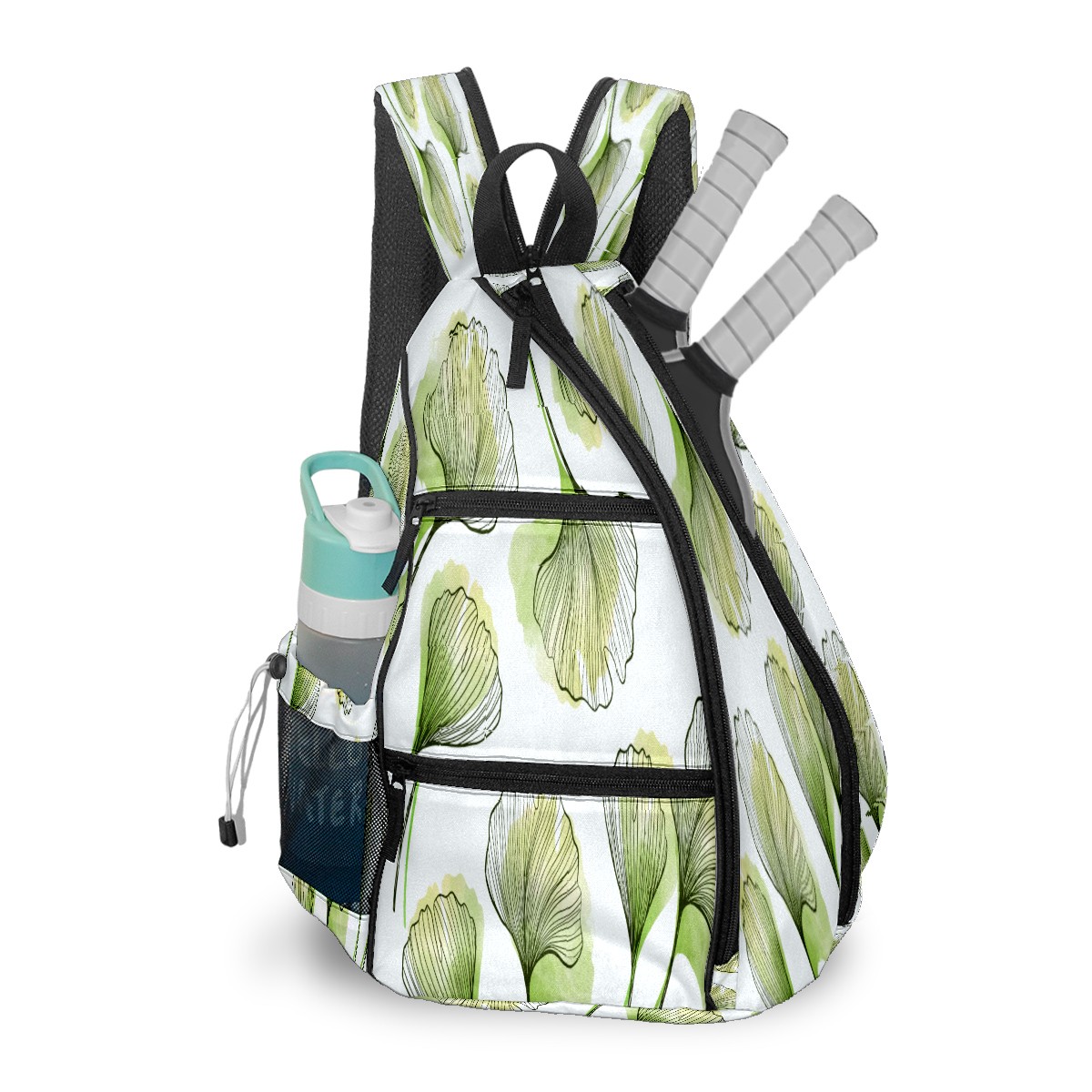 Multifunctional Pickleball Bag,Large Capacity Sports Pickleball Racket Bag, Water Bottle Holder and Fence Hook,Suitable for Both Men Women -Green Leaf