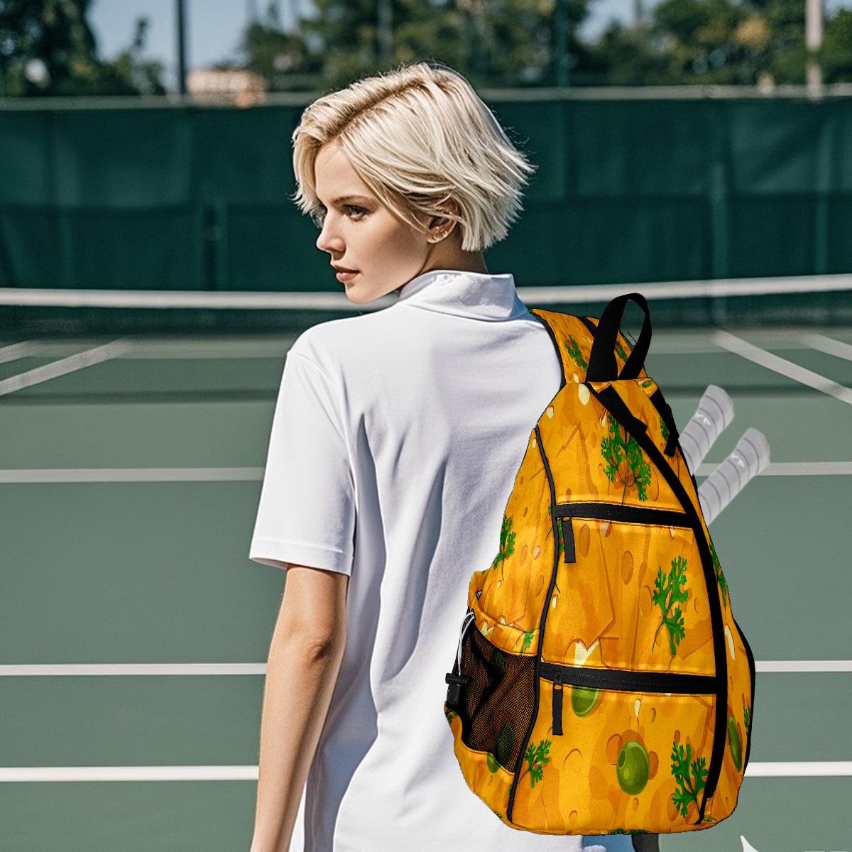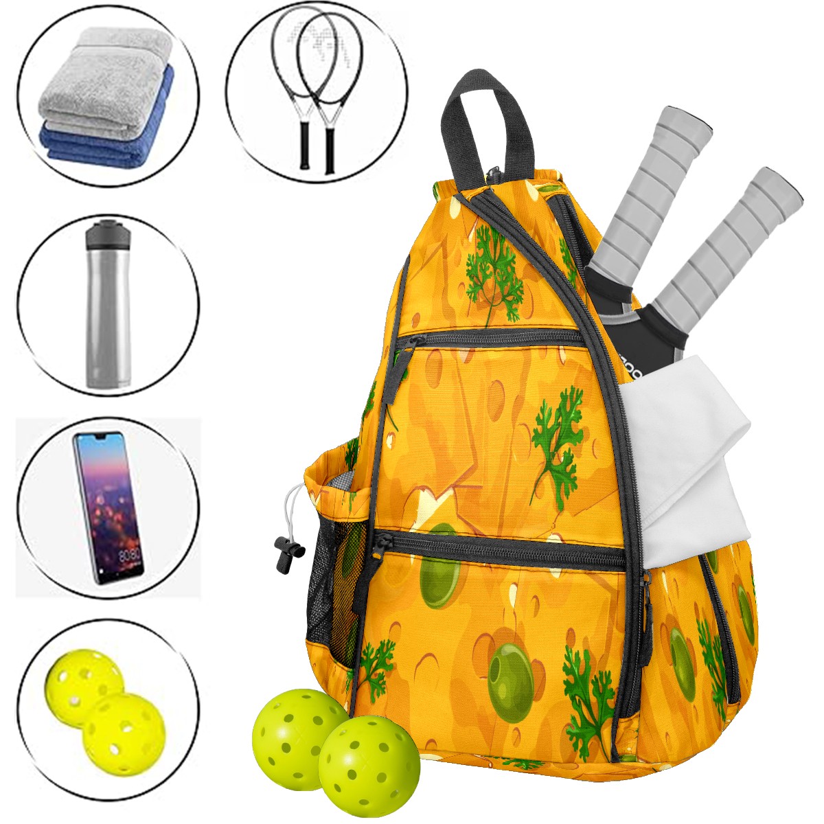 Multifunctional Pickleball Bag,Large Capacity Sports Pickleball Racket Bag, Water Bottle Holder and Fence Hook,Suitable for Both Men Women -Cheese