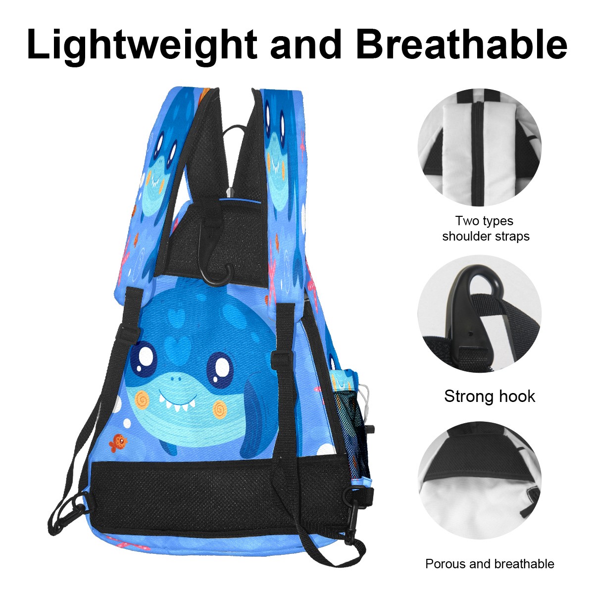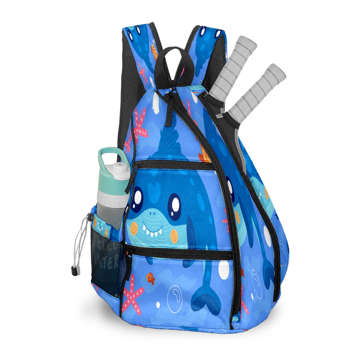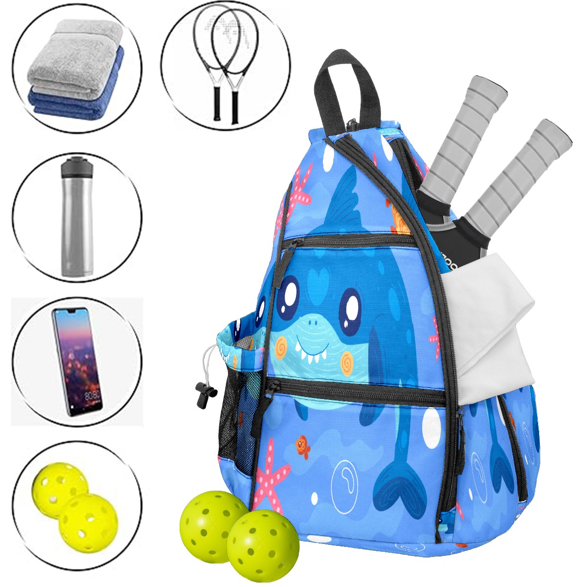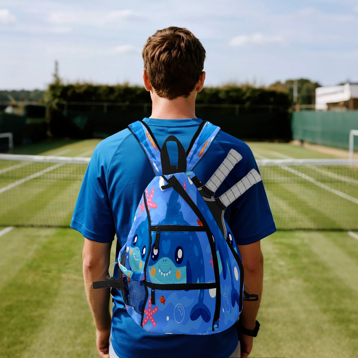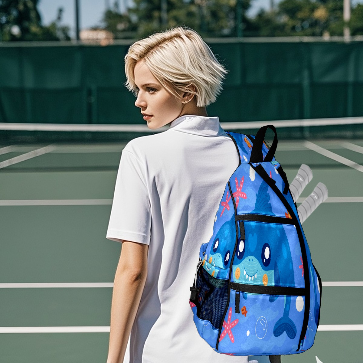 Multifunctional Pickleball Bag,Large Capacity Sports Pickleball Racket Bag, Water Bottle Holder and Fence Hook,Suitable for Both Men Women -Cute Shark Fish