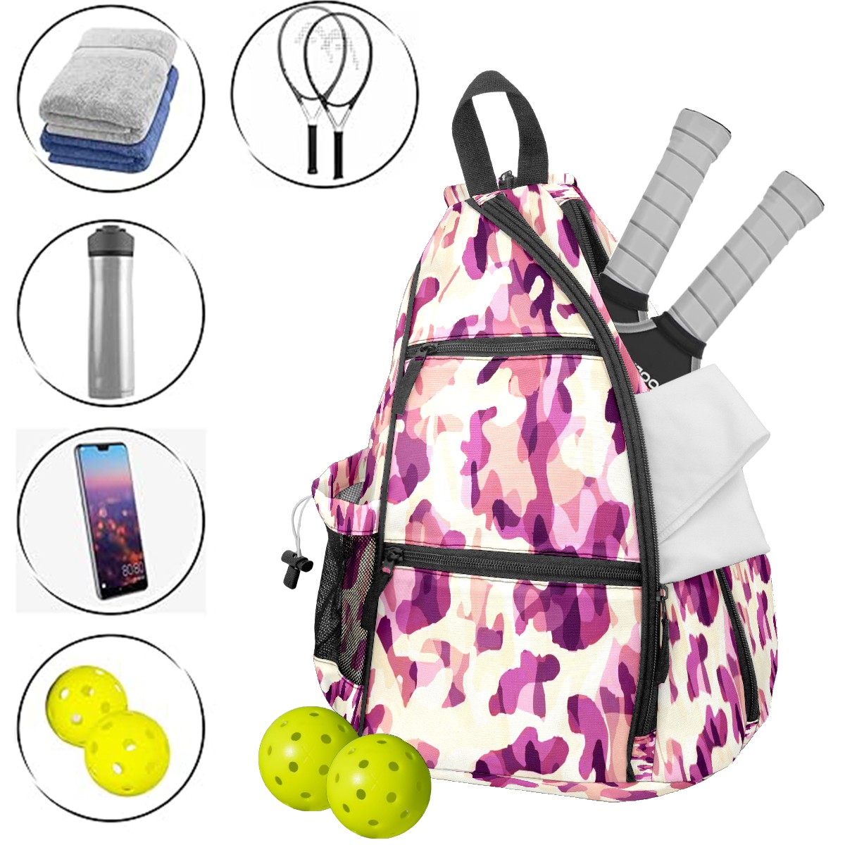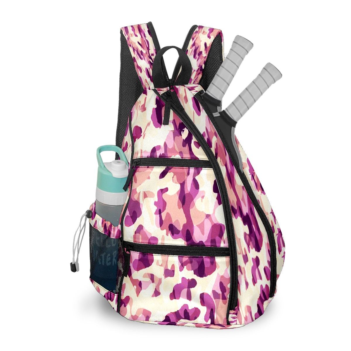 Multifunctional Pickleball Bag,Large Capacity Sports Pickleball Racket Bag, Water Bottle Holder and Fence Hook,Suitable for Both Men Women -Colorful Abstract Camouflage