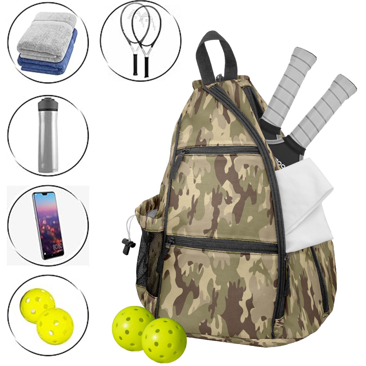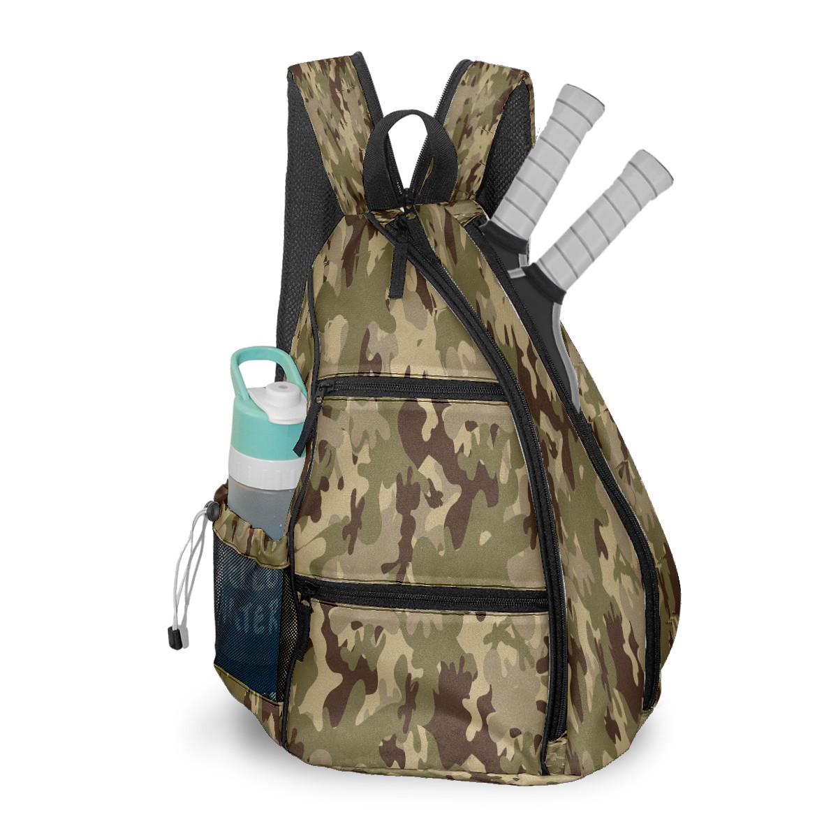 Multifunctional Pickleball Bag,Large Capacity Sports Pickleball Racket Bag, Water Bottle Holder and Fence Hook,Suitable for Both Men Women -Army Camouflage