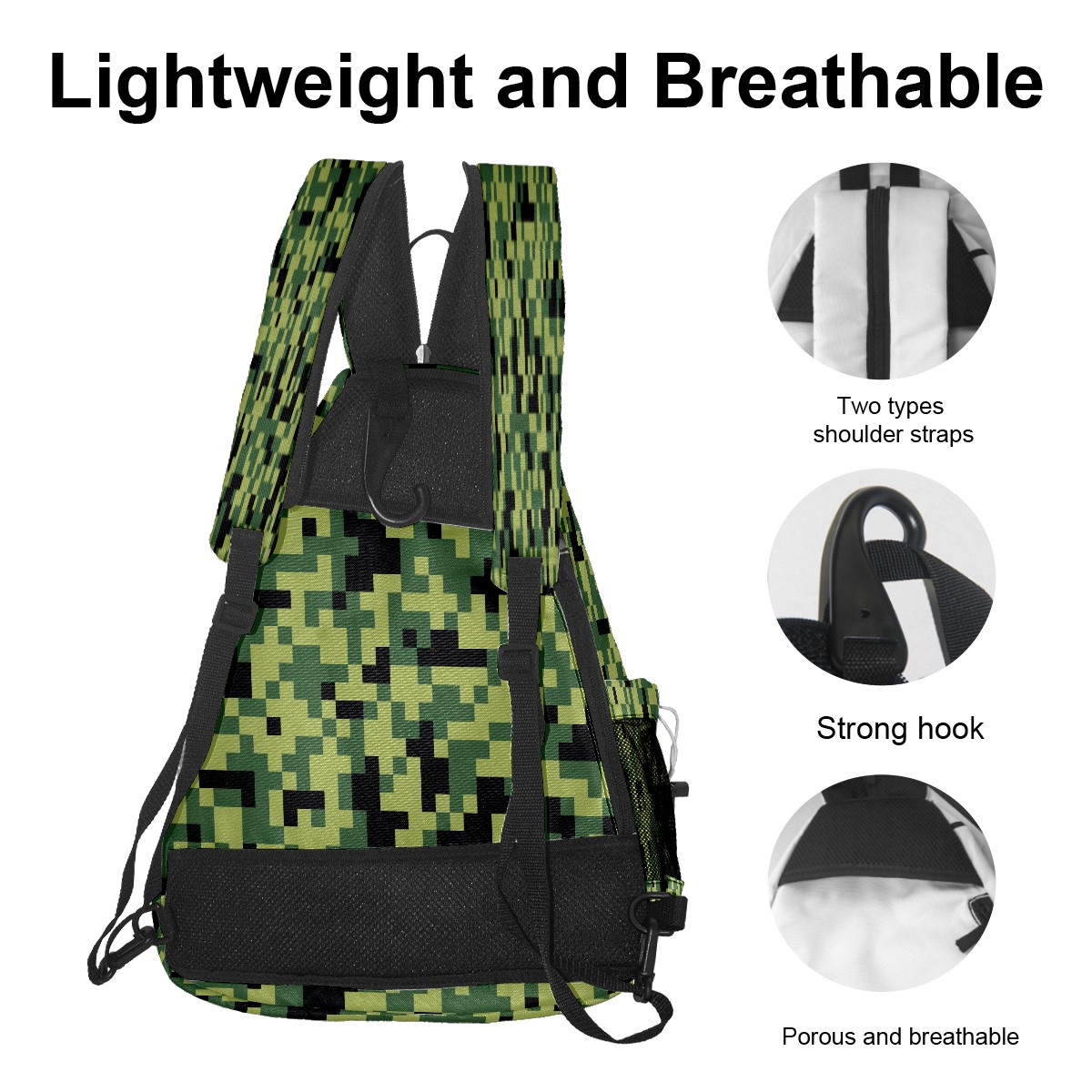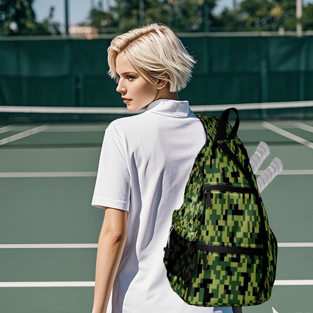 Multifunctional Pickleball Bag,Large Capacity Sports Pickleball Racket Bag, Water Bottle Holder and Fence Hook,Suitable for Both Men Women -Polygonal Camouflage