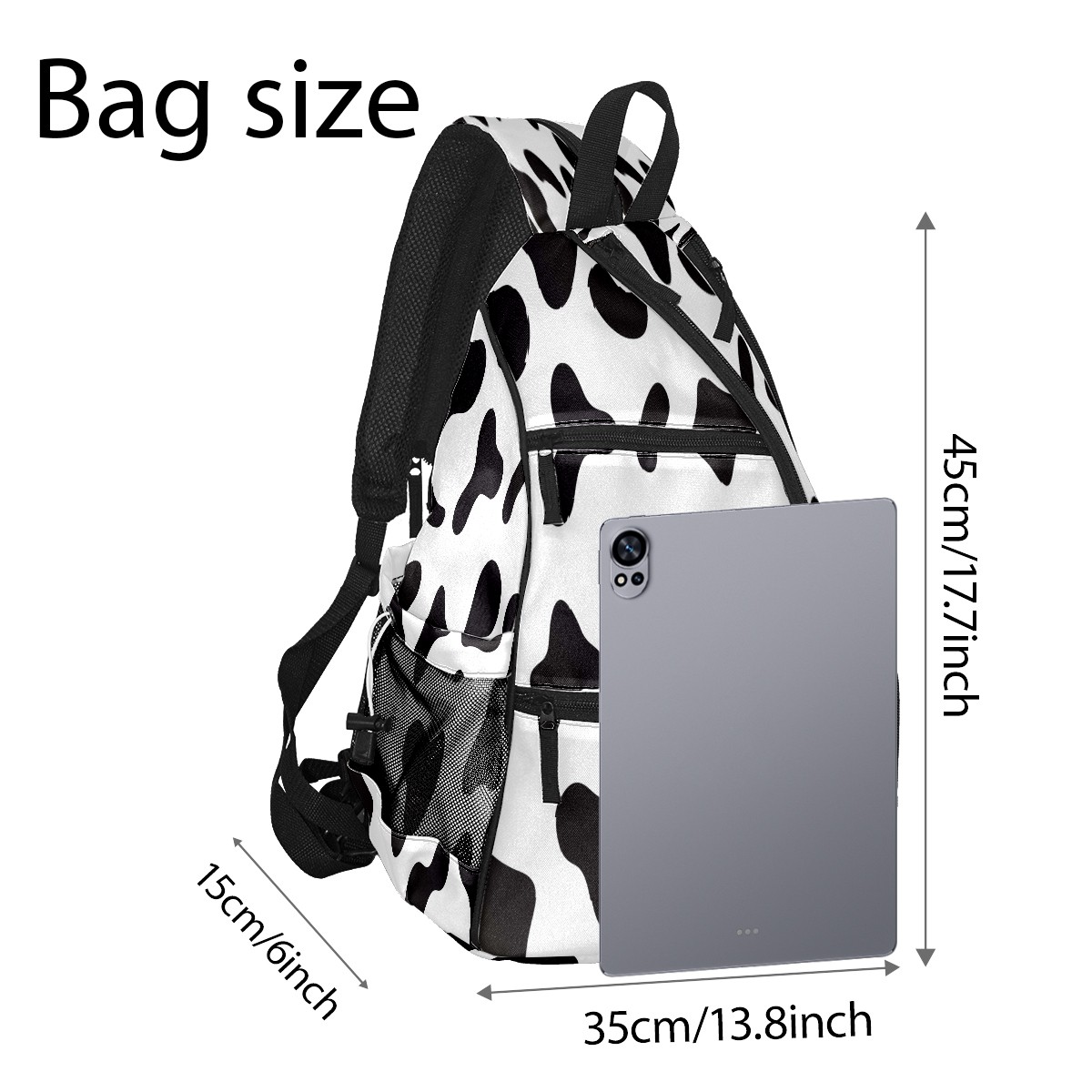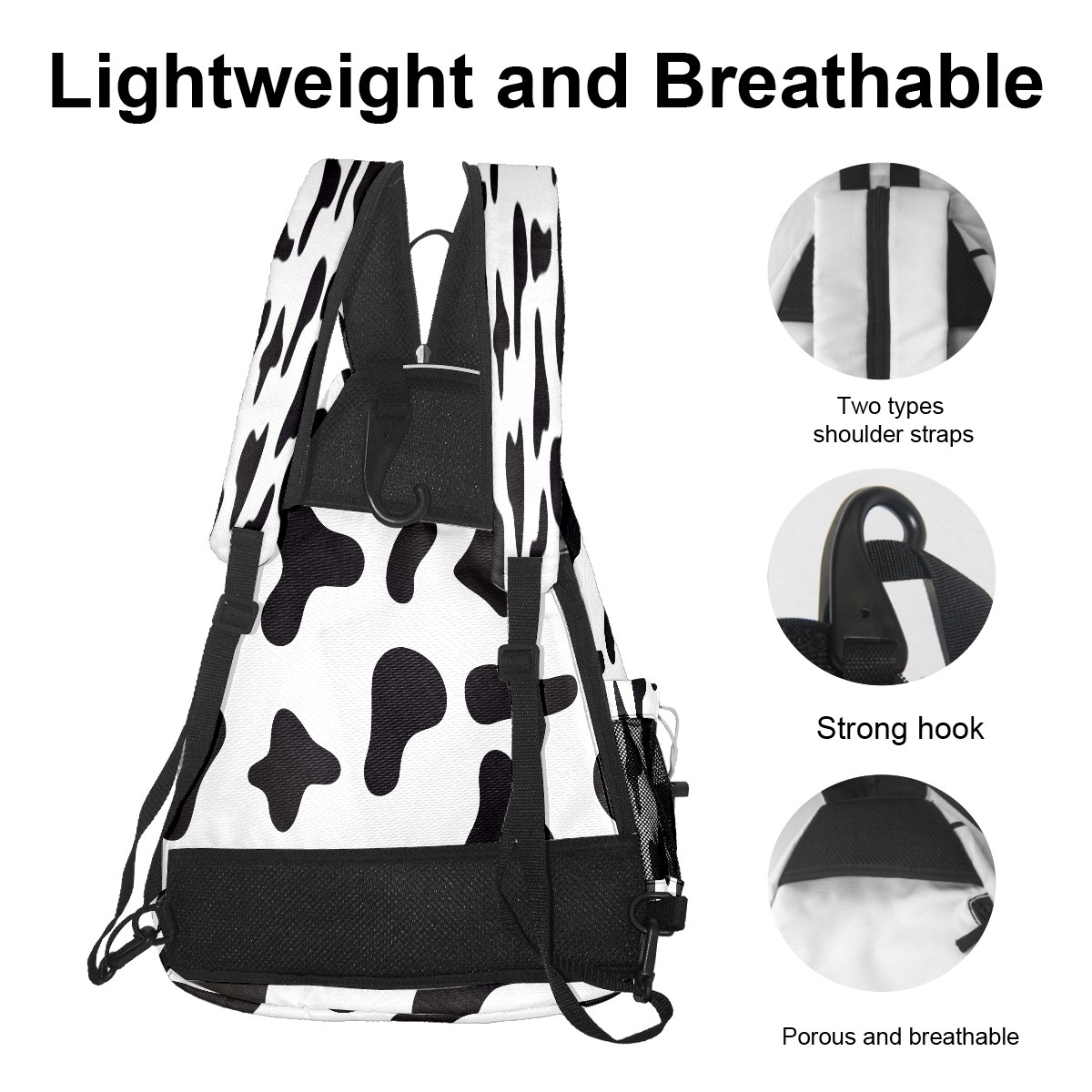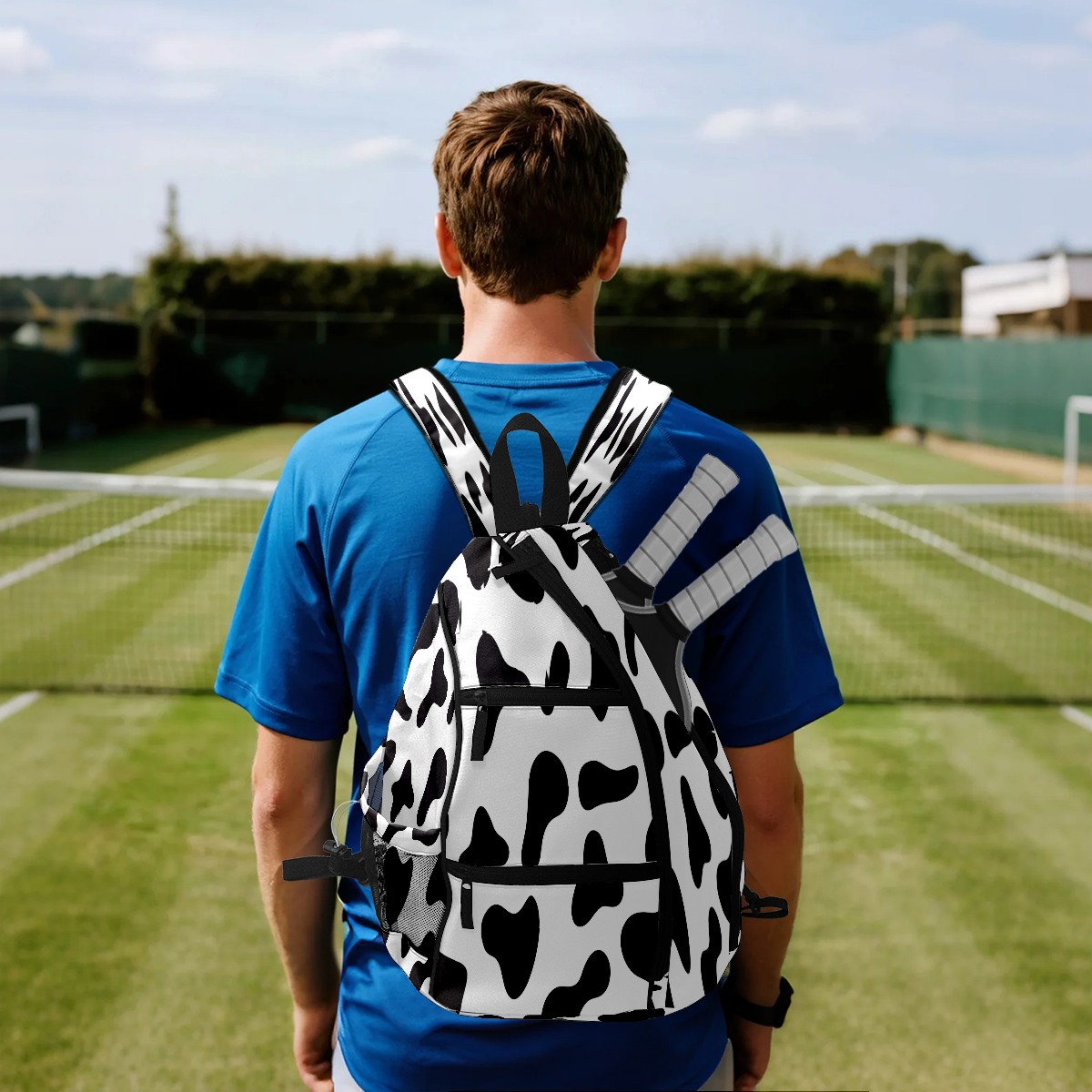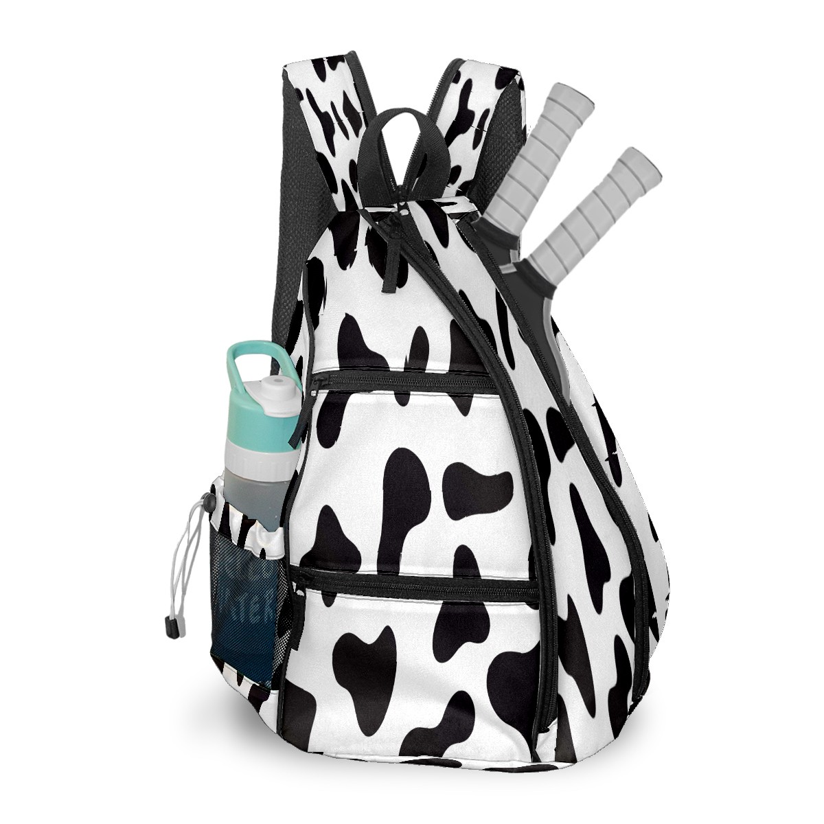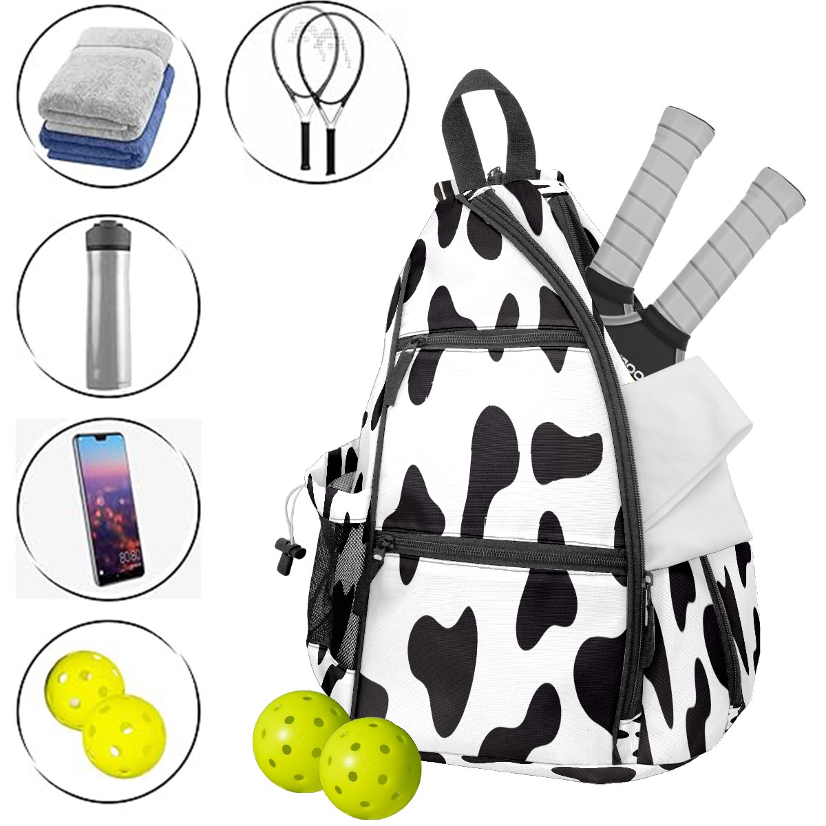 Multifunctional Pickleball Bag,Large Capacity Sports Pickleball Racket Bag, Water Bottle Holder and Fence Hook,Suitable for Both Men Women -Cow Skin Black White