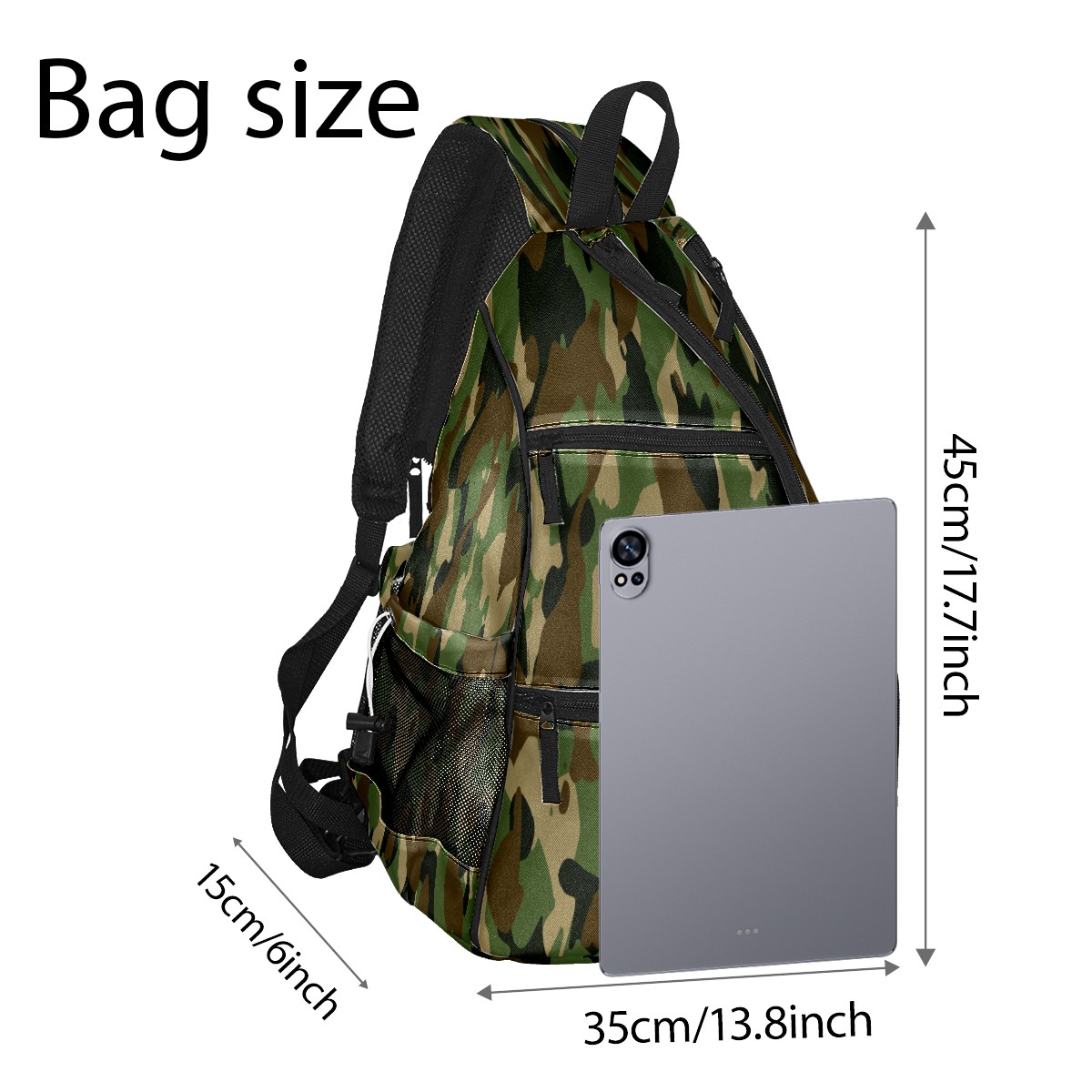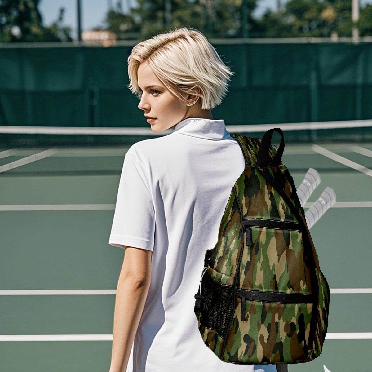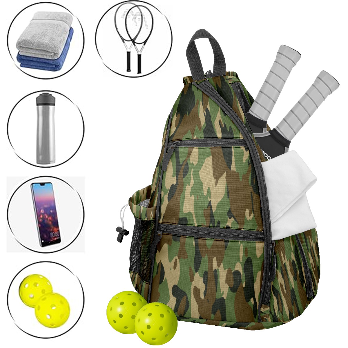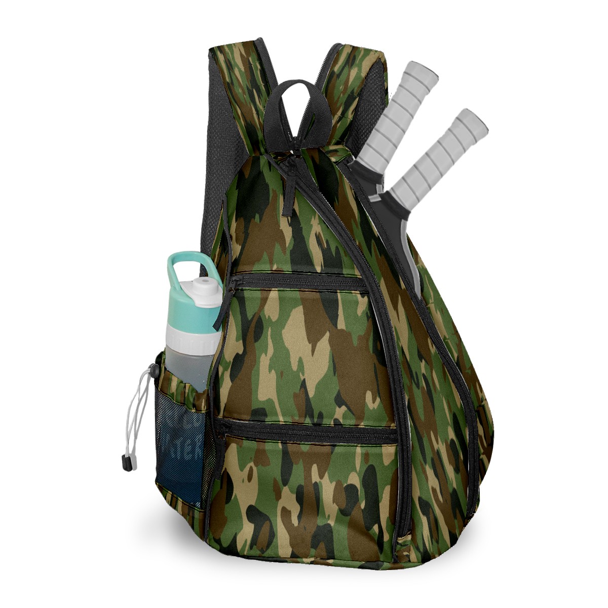 Multifunctional Pickleball Bag,Large Capacity Sports Pickleball Racket Bag, Water Bottle Holder and Fence Hook,Suitable for Both Men Women -Army Military Camouflage