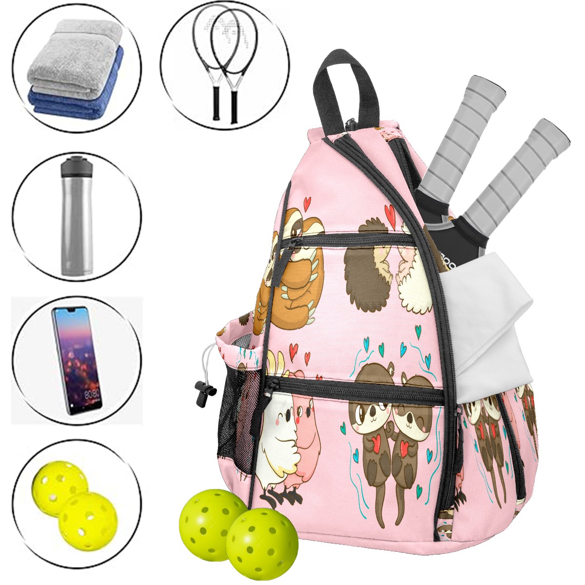 Multifunctional Pickleball Bag,Large Capacity Sports Pickleball Racket Bag, Water Bottle Holder and Fence Hook,Suitable for Both Men Women -Valentines Day Animal Love