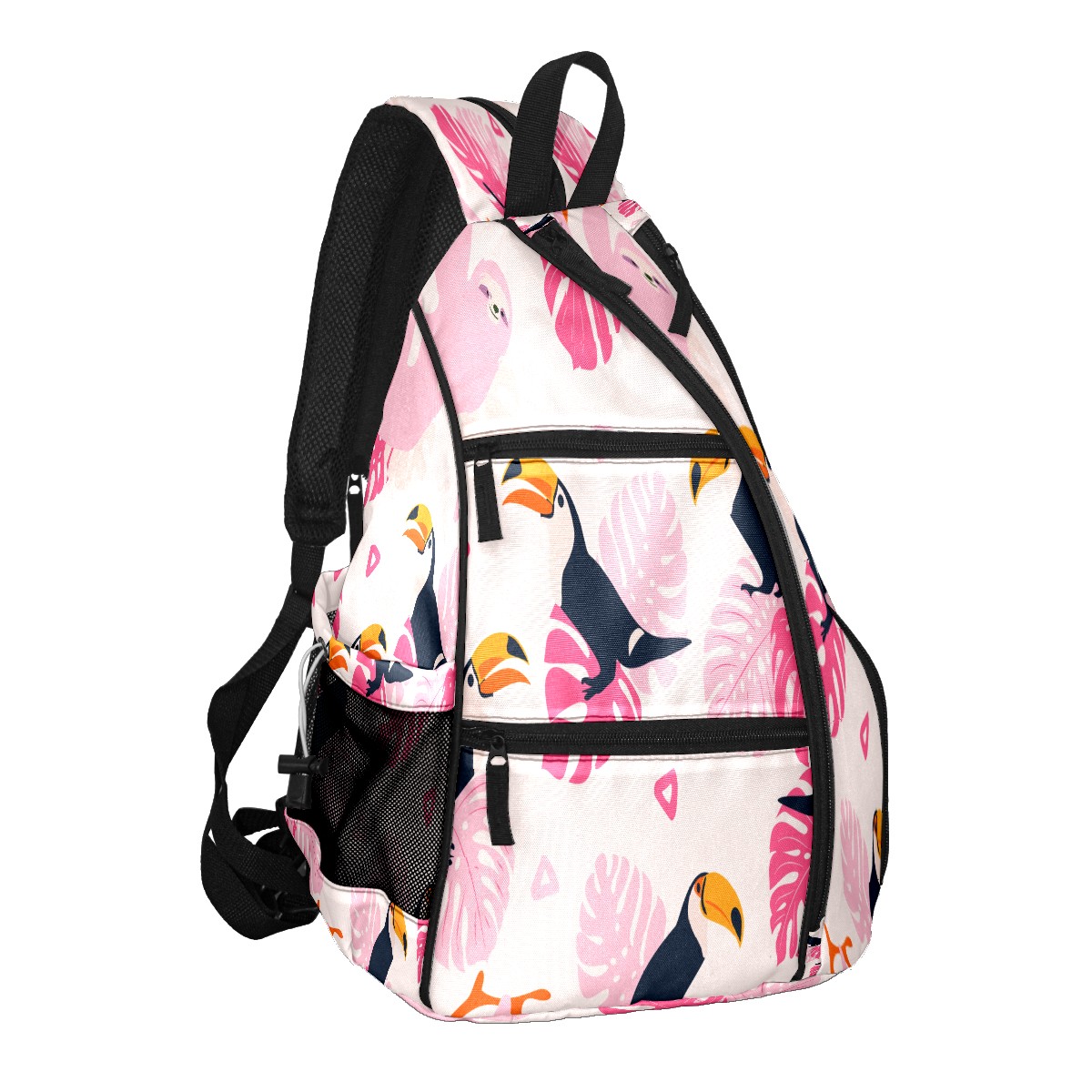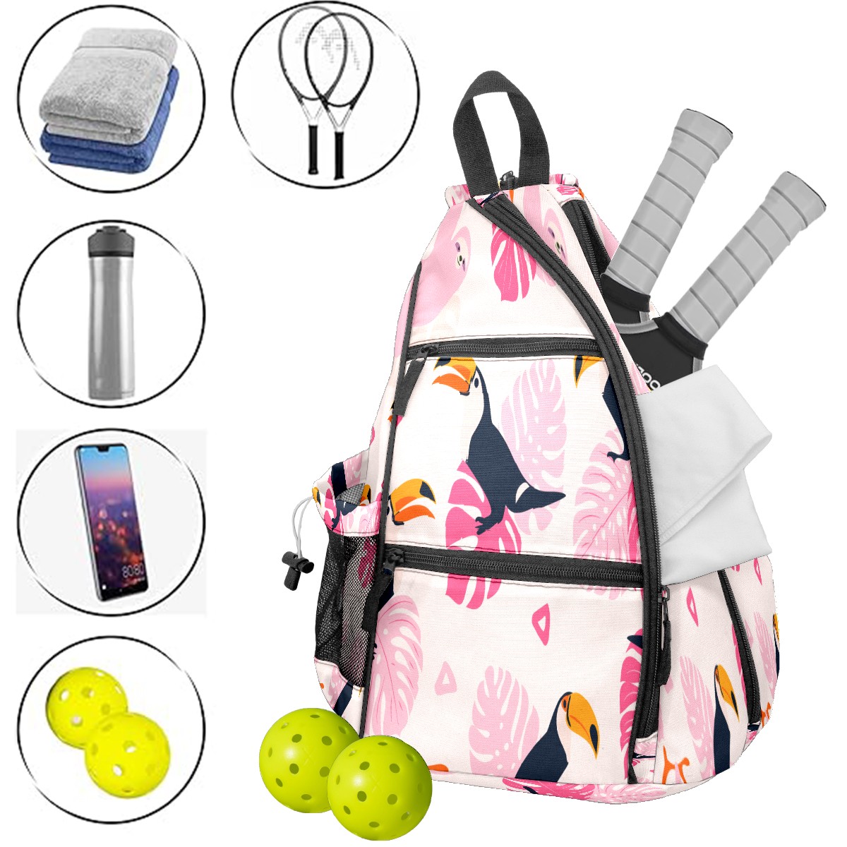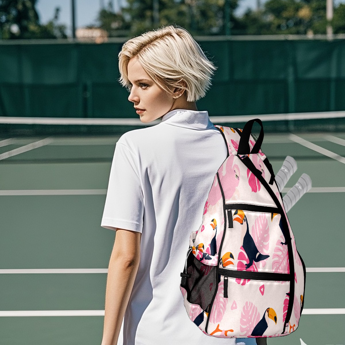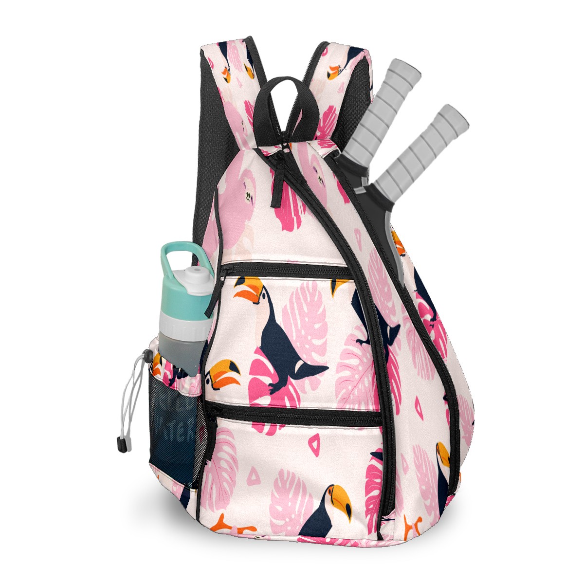 Multifunctional Pickleball Bag,Large Capacity Sports Pickleball Racket Bag, Water Bottle Holder and Fence Hook,Suitable for Both Men Women -Tropical Bird