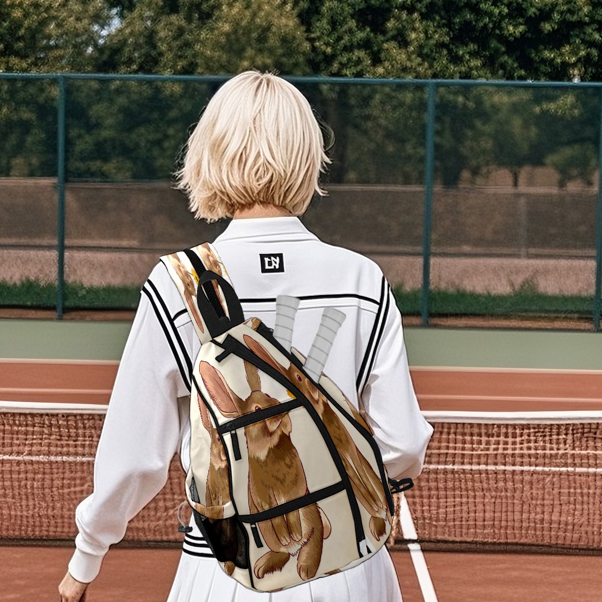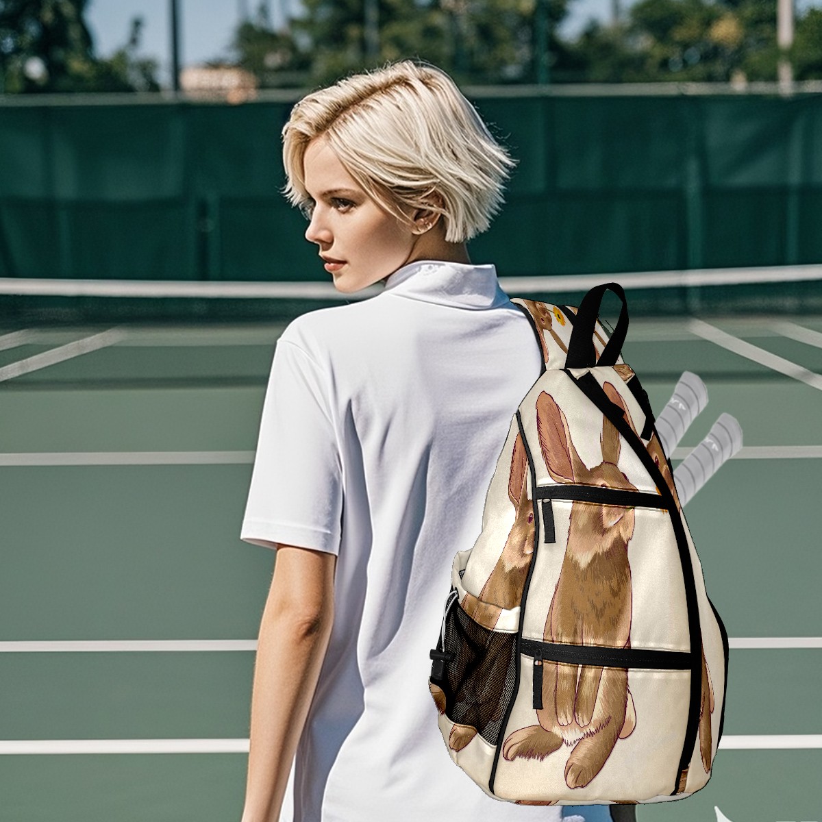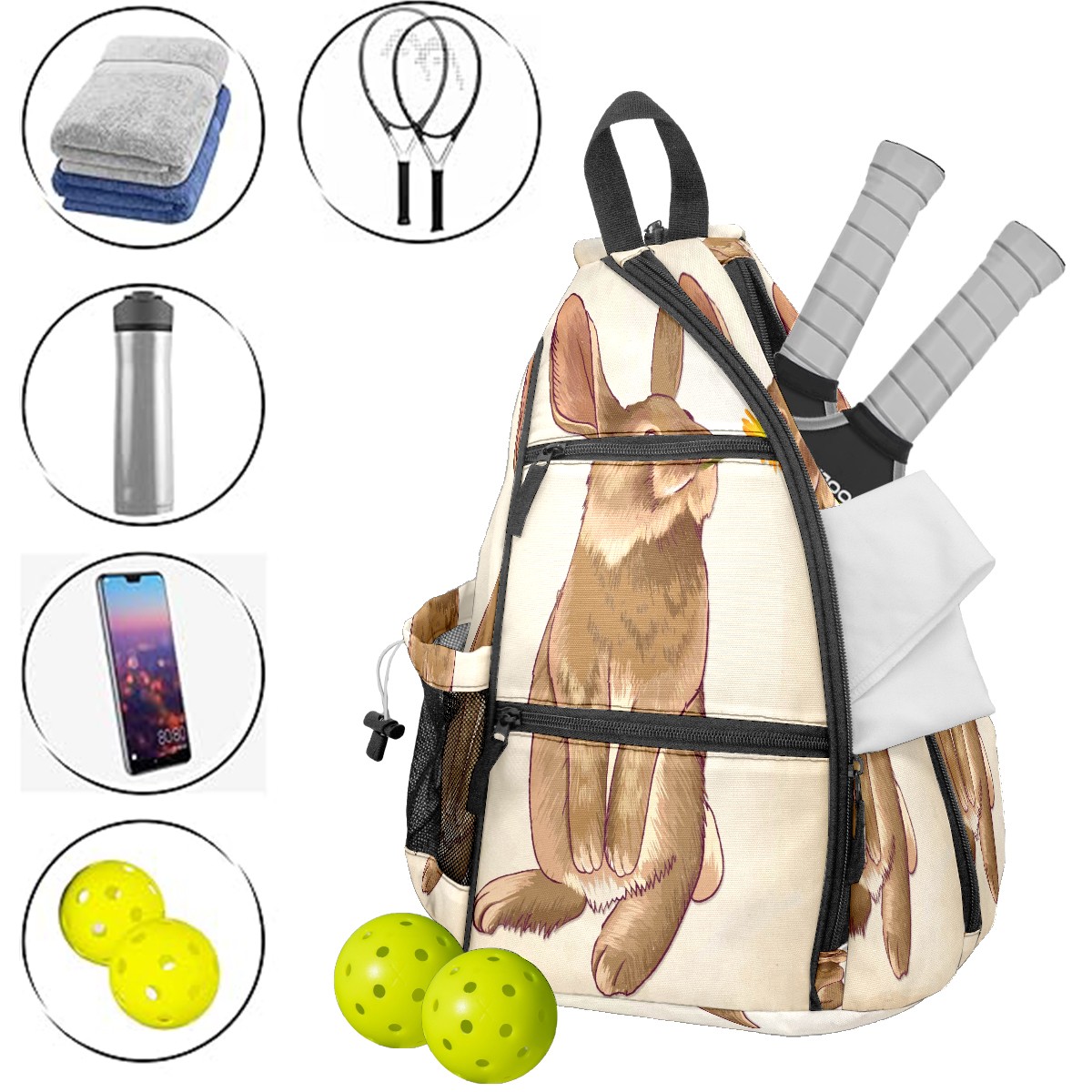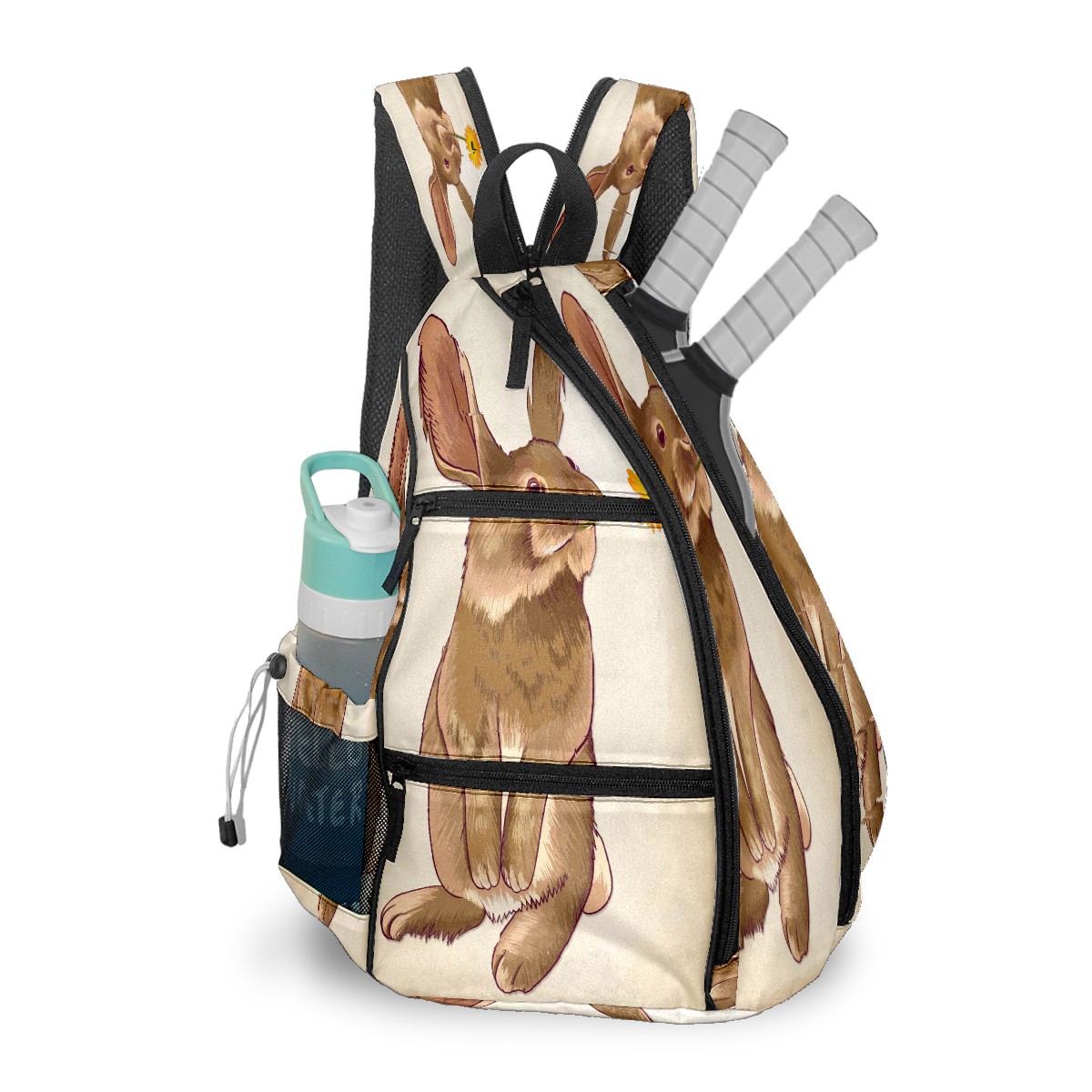 Multifunctional Pickleball Bag,Large Capacity Sports Pickleball Racket Bag, Water Bottle Holder and Fence Hook,Suitable for Both Men Women -ウサギ デイジー かわいい