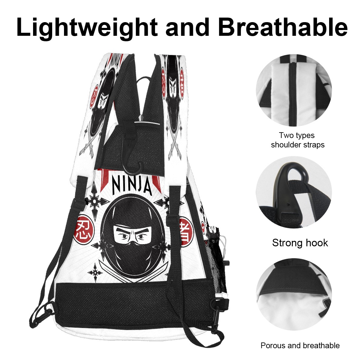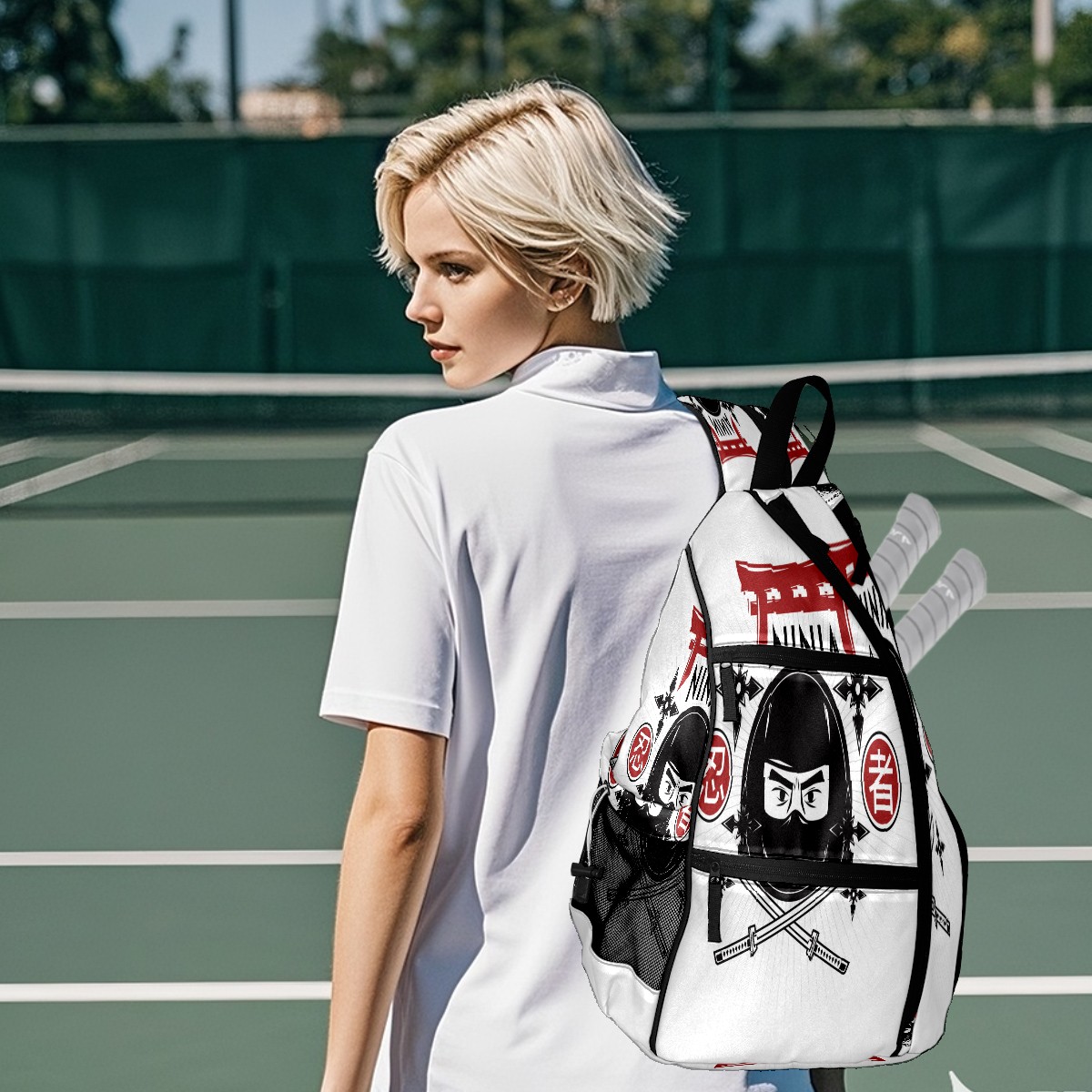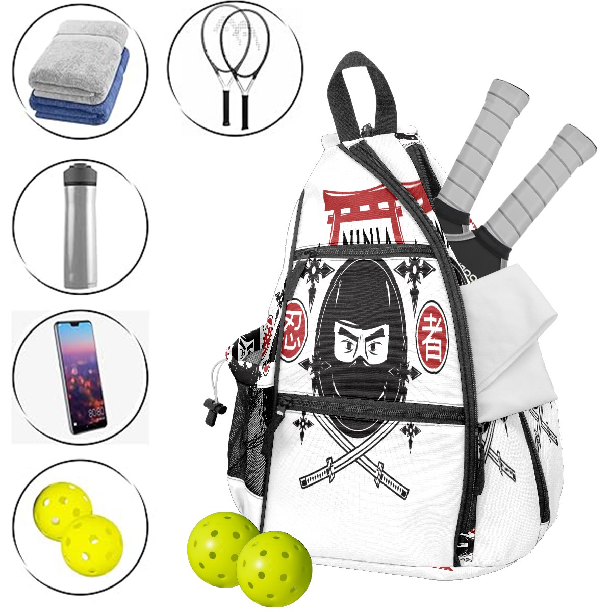 Multifunctional Pickleball Bag,Large Capacity Sports Pickleball Racket Bag, Water Bottle Holder and Fence Hook,Suitable for Both Men Women -忍者 剣 かっこいい