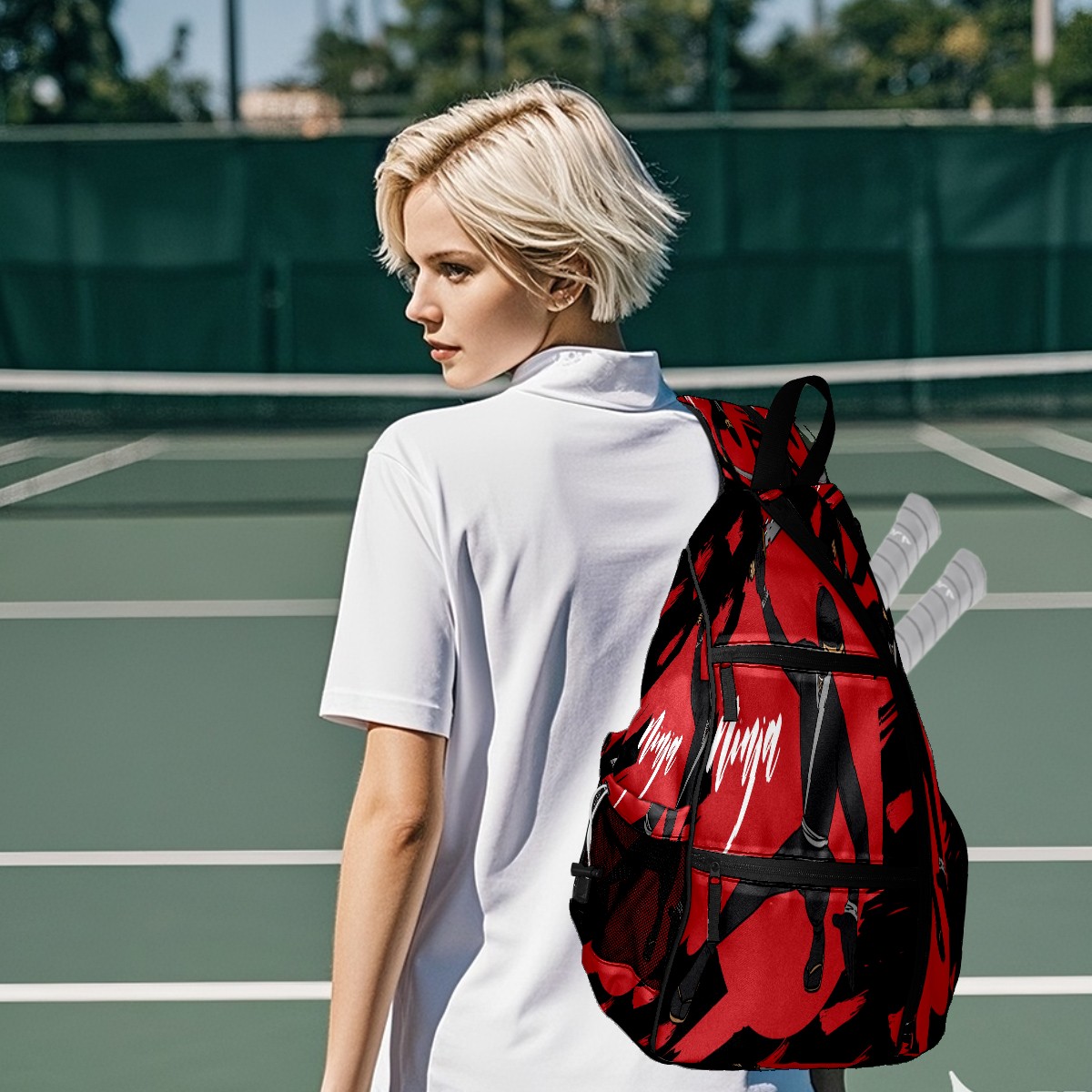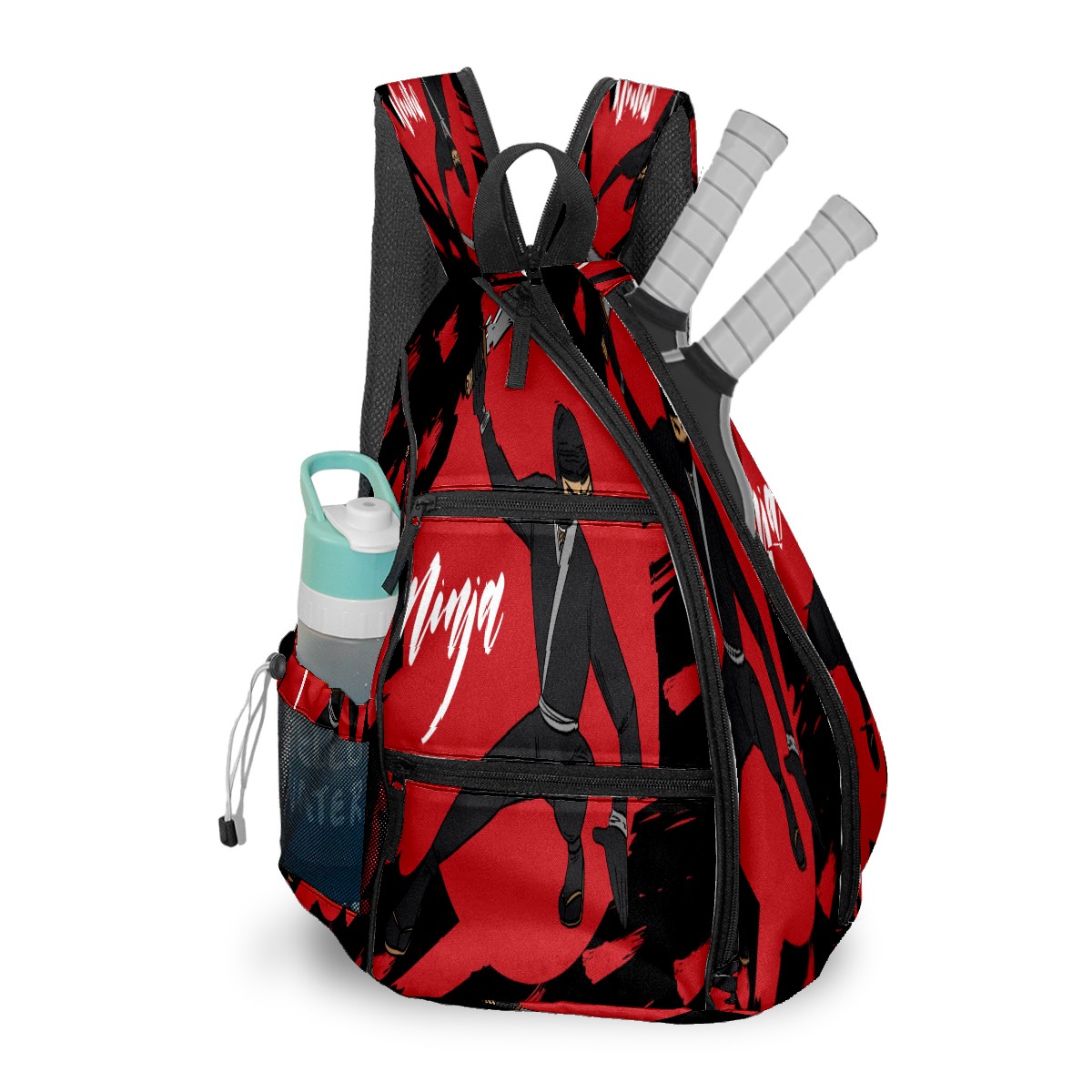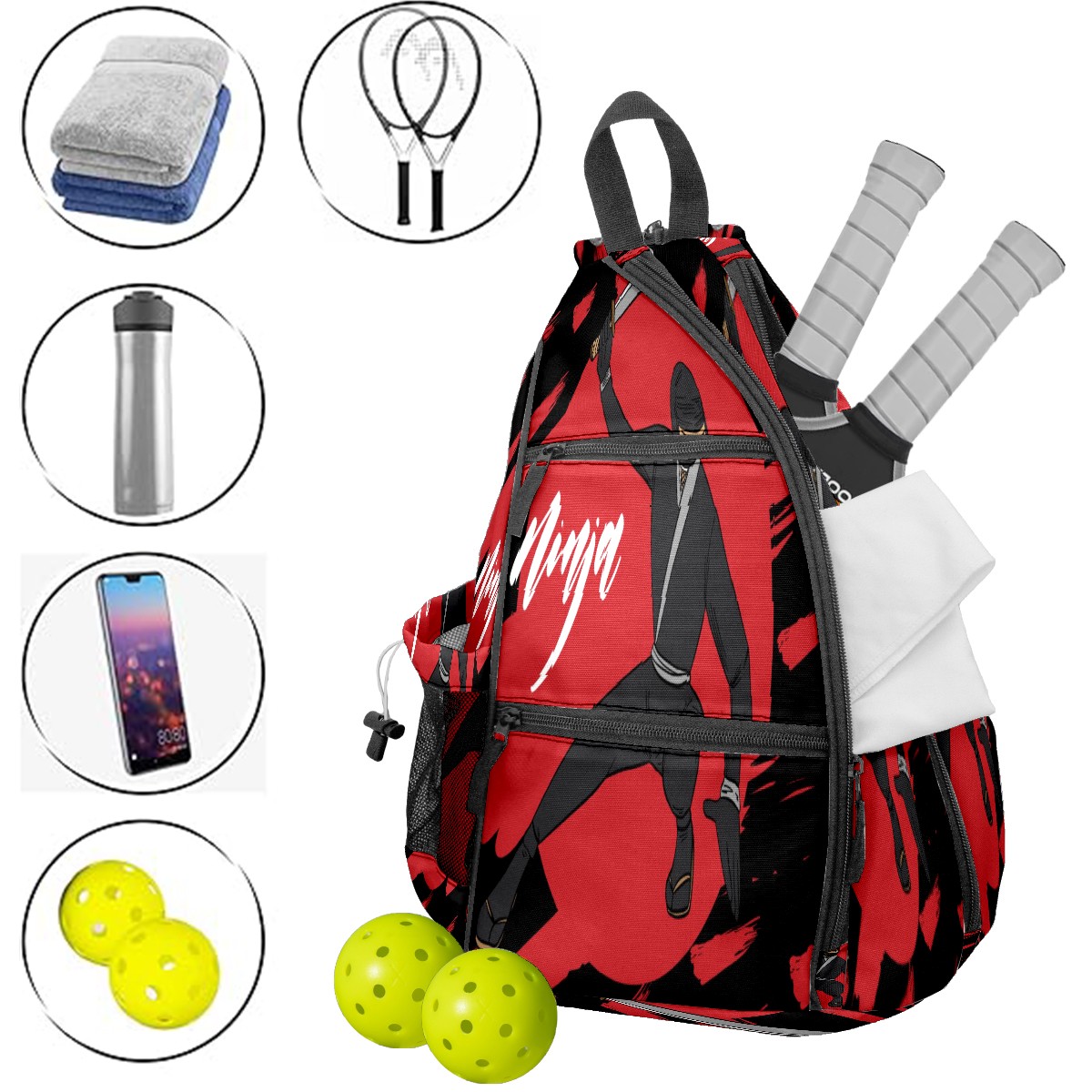 Multifunctional Pickleball Bag,Large Capacity Sports Pickleball Racket Bag, Water Bottle Holder and Fence Hook,Suitable for Both Men Women -忍者 赤黒 かっこいい