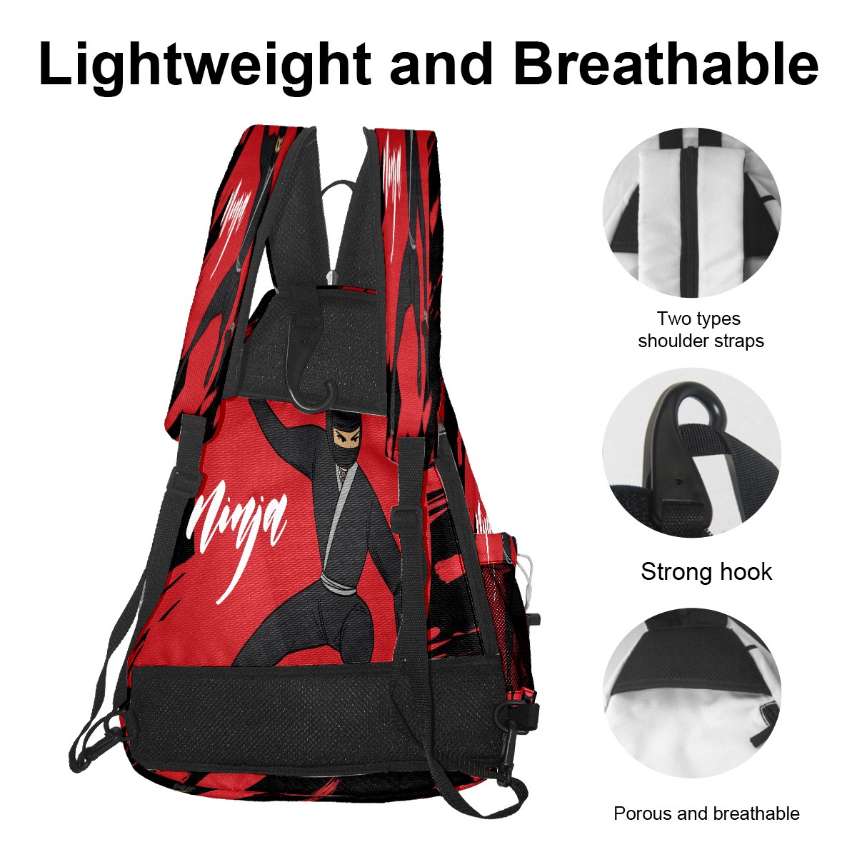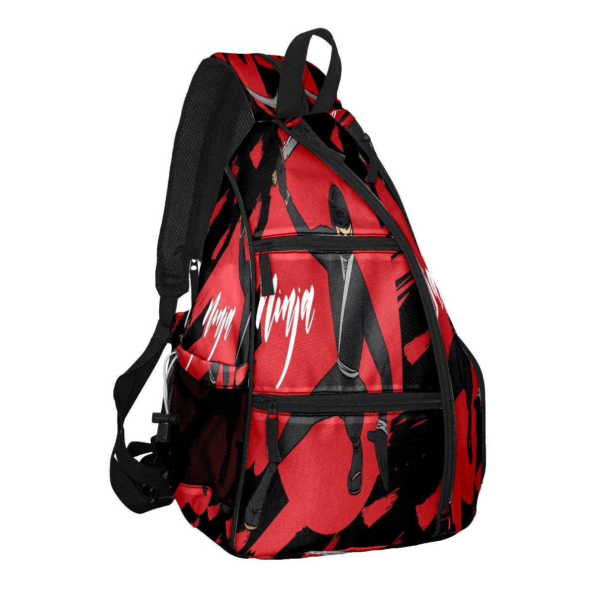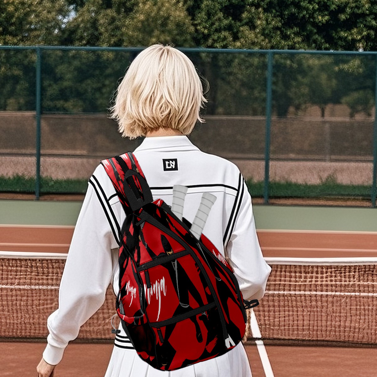 Multifunctional Pickleball Bag,Large Capacity Sports Pickleball Racket Bag, Water Bottle Holder and Fence Hook,Suitable for Both Men Women -忍者 赤黒 かっこいい