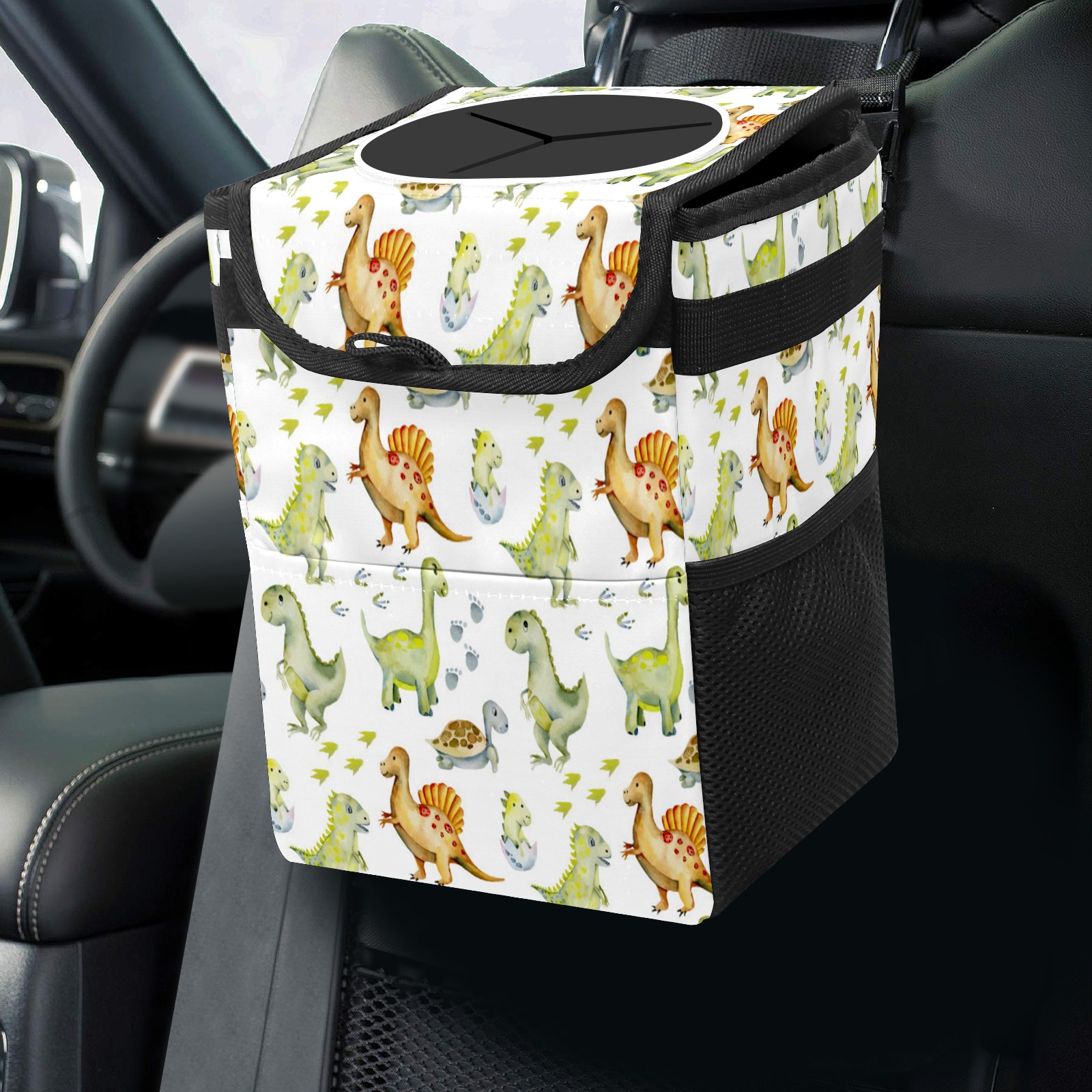 Car Garbage Can — Multi-functional, Lightweight Portable, Reusable Vehicle Trash Can, Waterproof with Sufficient Storage Capacity Cute Dinosaurs Turtles