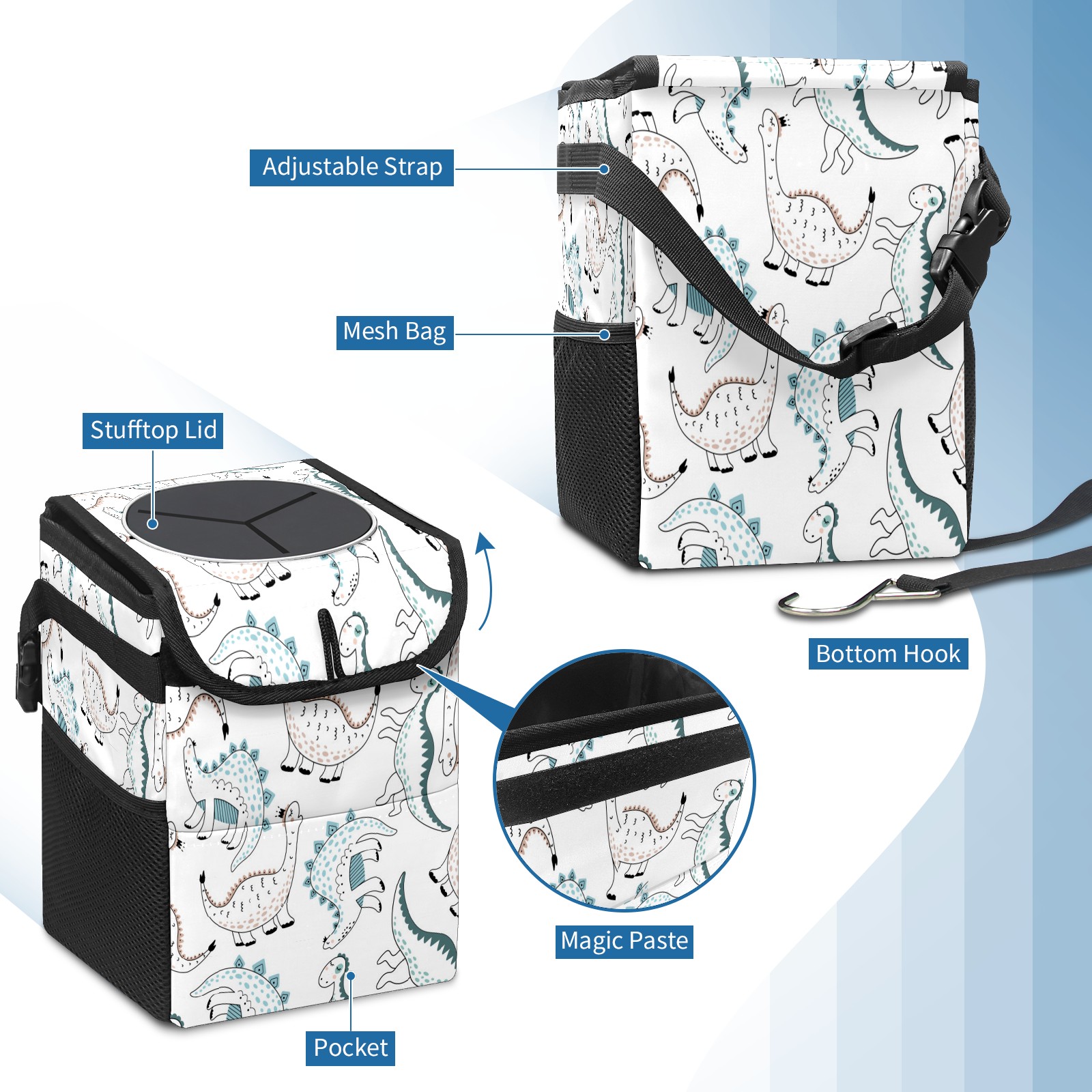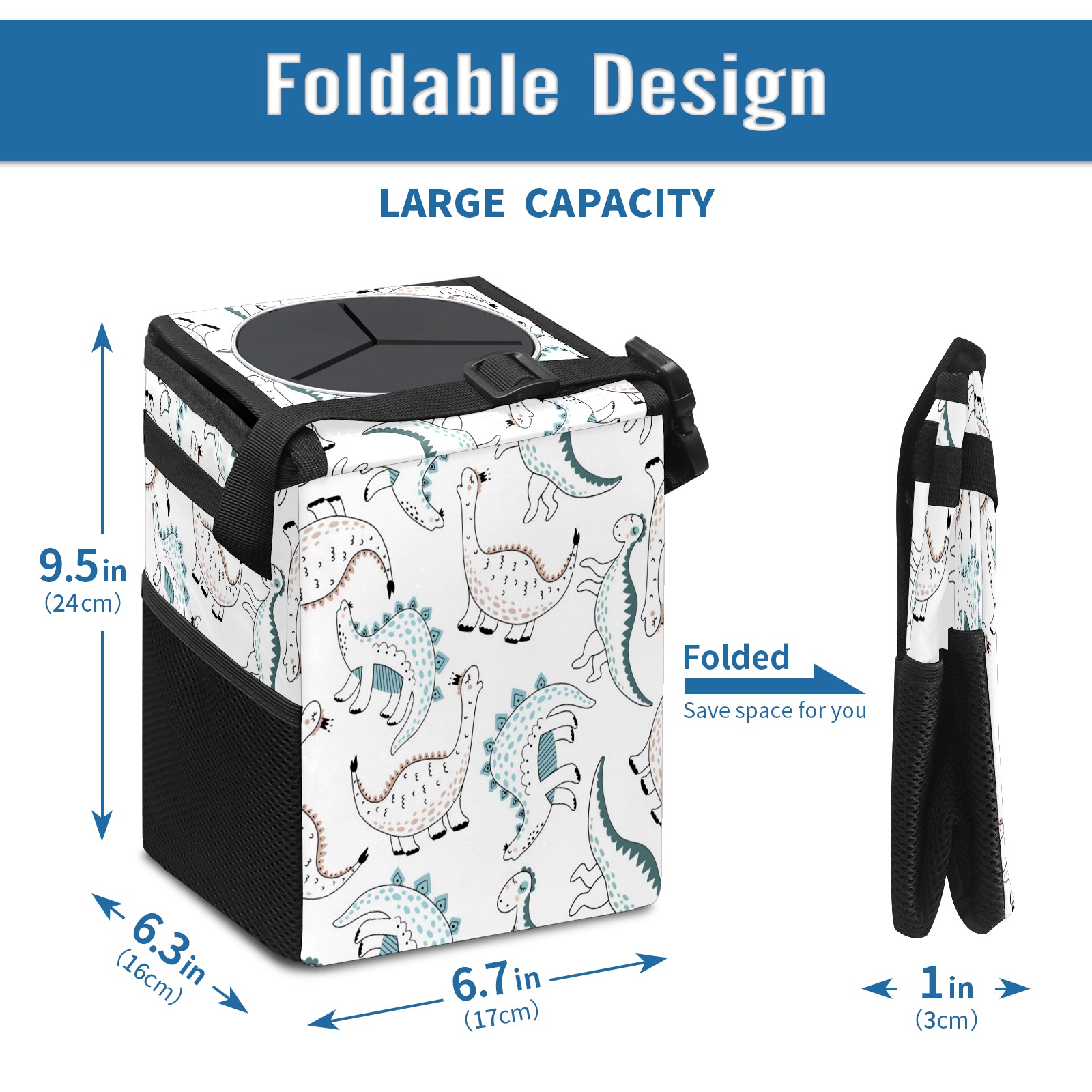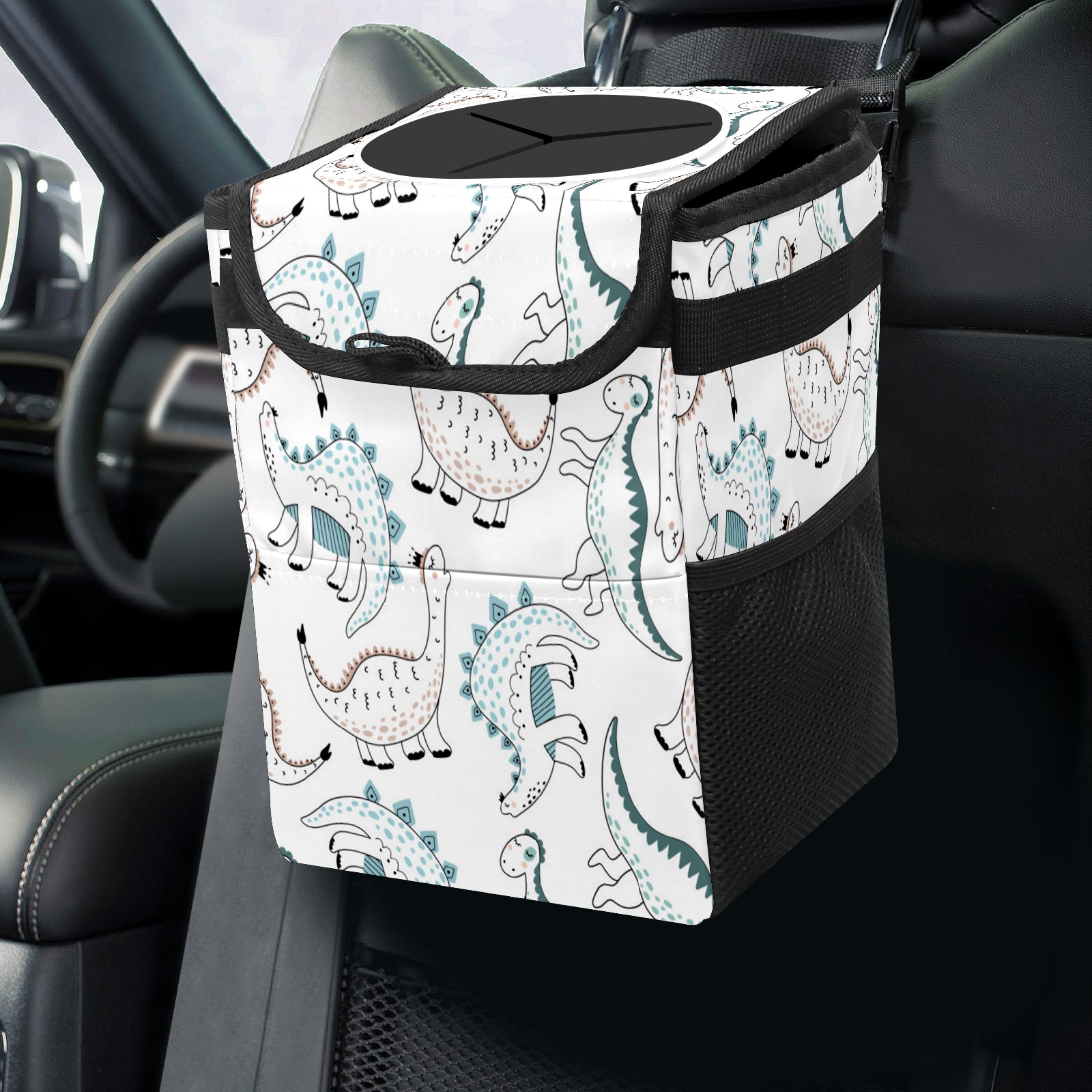 Car Garbage Can — Multi-functional, Lightweight Portable, Reusable Vehicle Trash Can, Waterproof with Sufficient Storage Capacity Cute Dinosaurs
