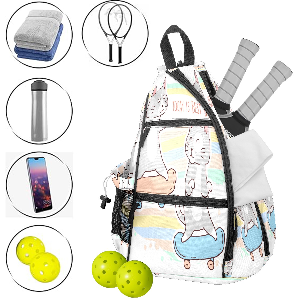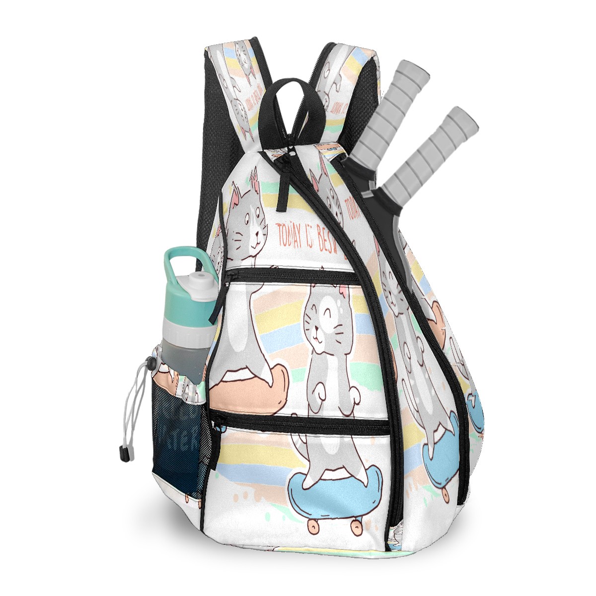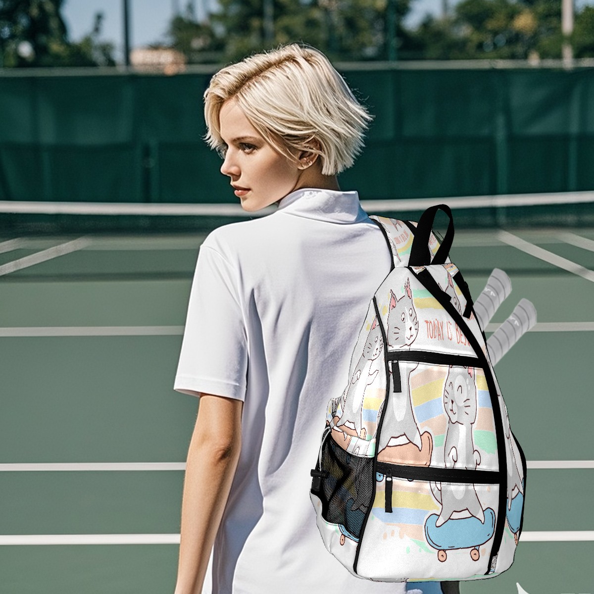 Multifunctional Pickleball Bag,Large Capacity Sports Pickleball Racket Bag, Water Bottle Holder and Fence Hook,Suitable for Both Men Women -猫 スケートボード