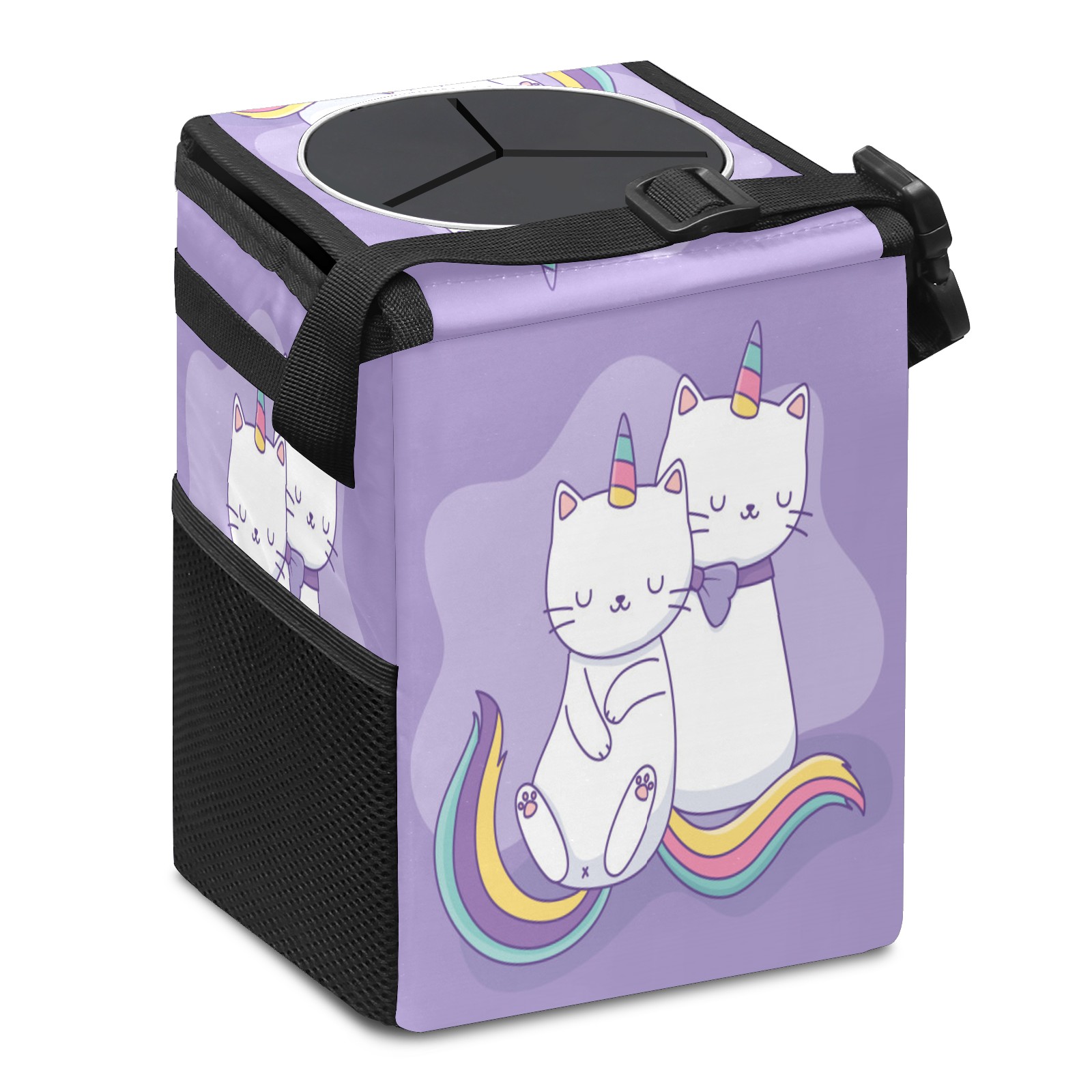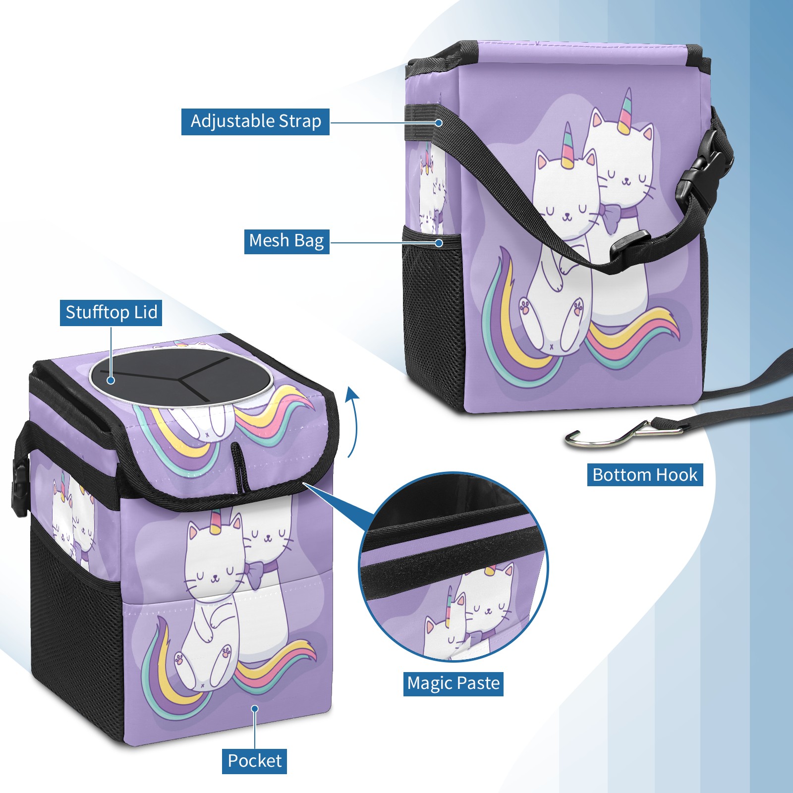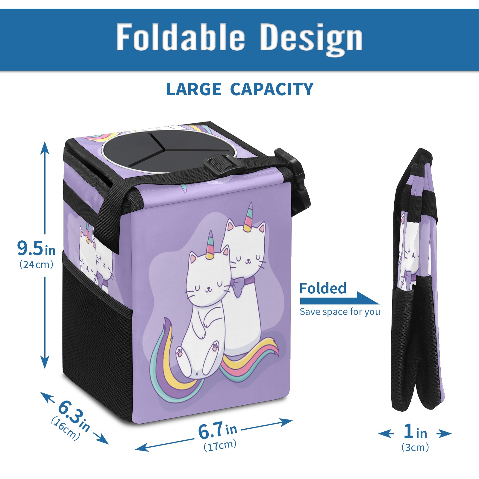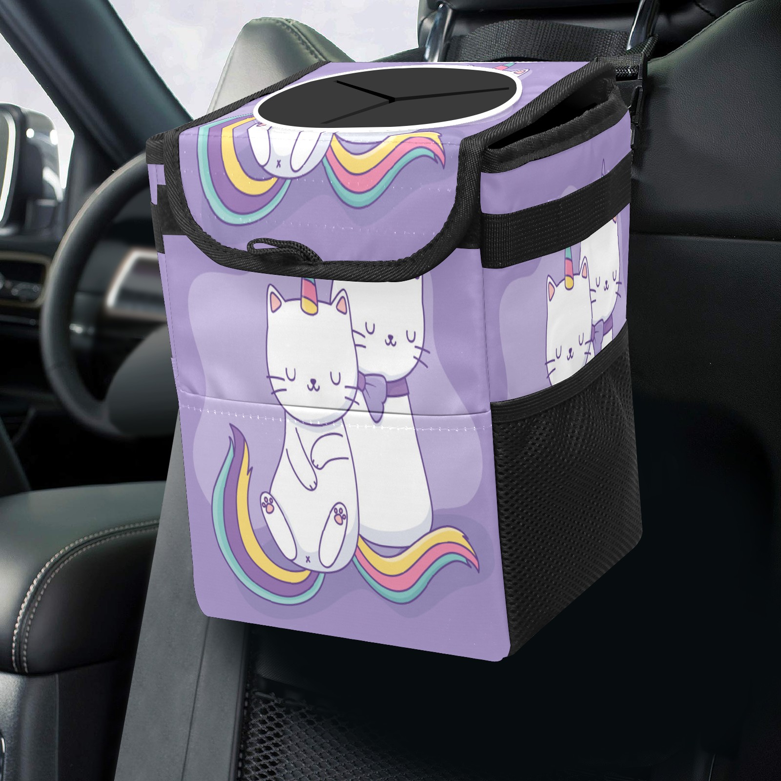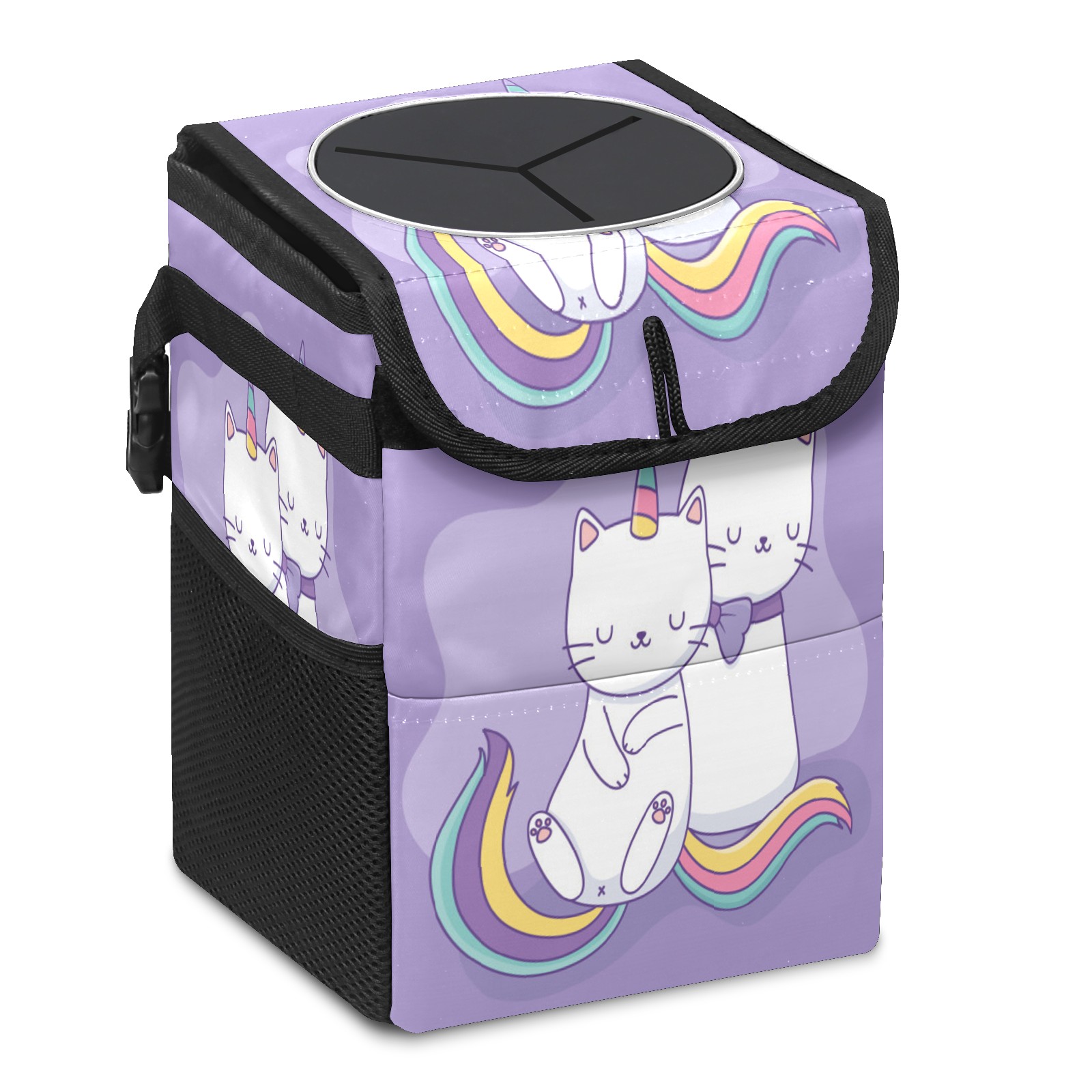 Car Garbage Can — Multi-functional, Lightweight Portable, Reusable Vehicle Trash Can, Waterproof with Sufficient Storage Capacity Cute Cats With Rainbow Tail