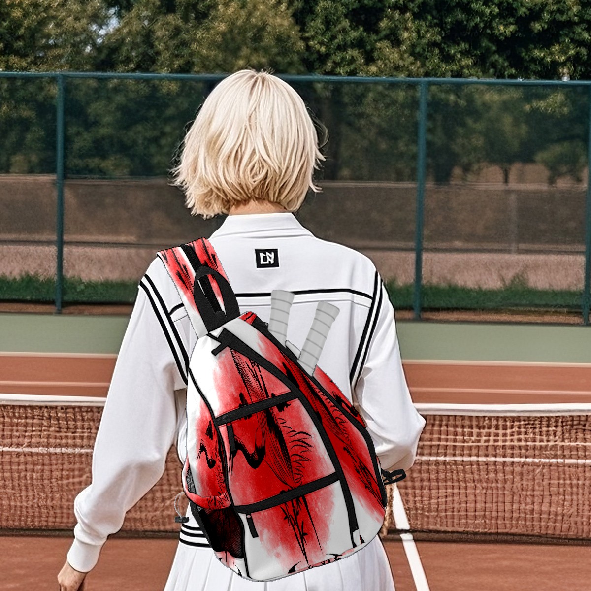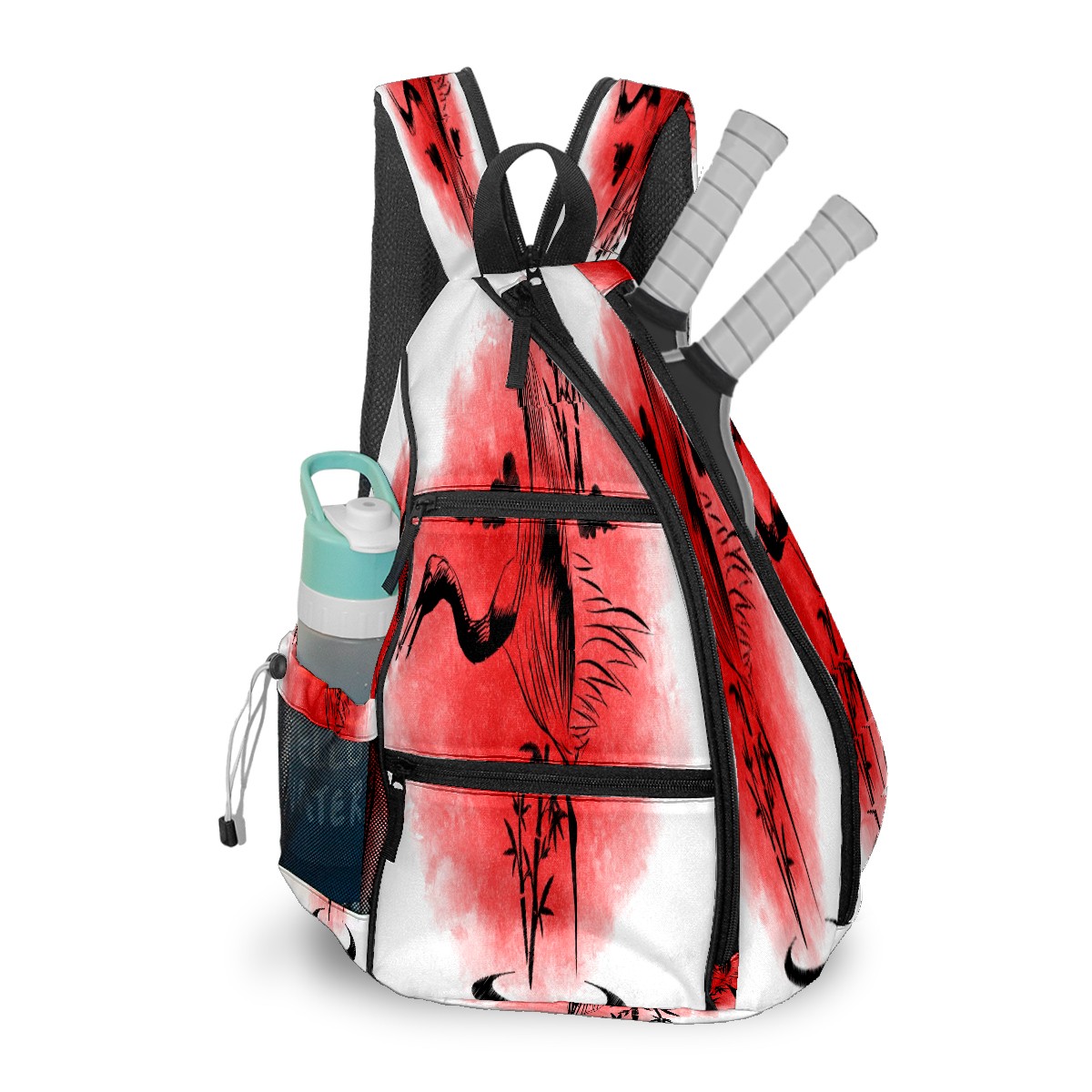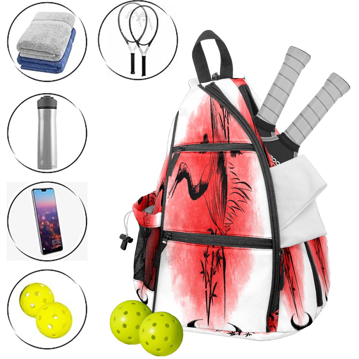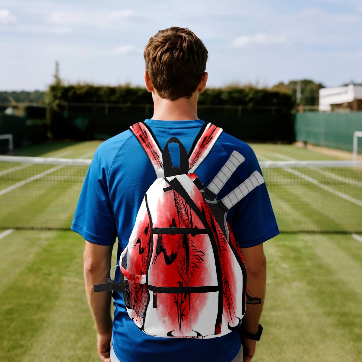 Multifunctional Pickleball Bag,Large Capacity Sports Pickleball Racket Bag, Water Bottle Holder and Fence Hook,Suitable for Both Men Women -鶴 竹 和風