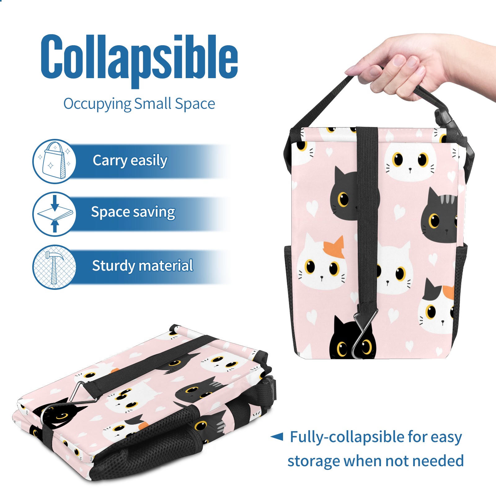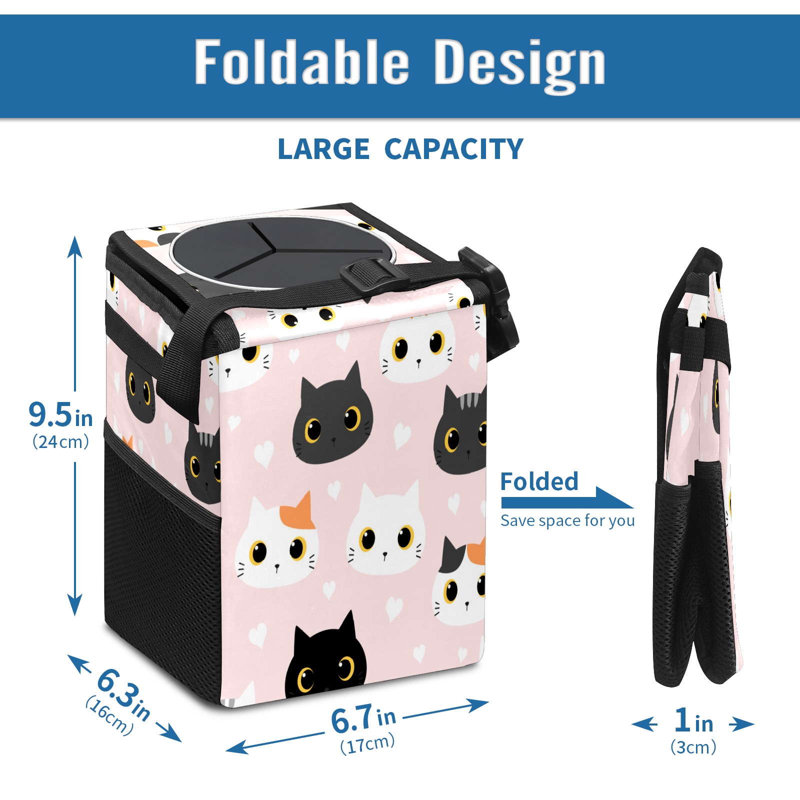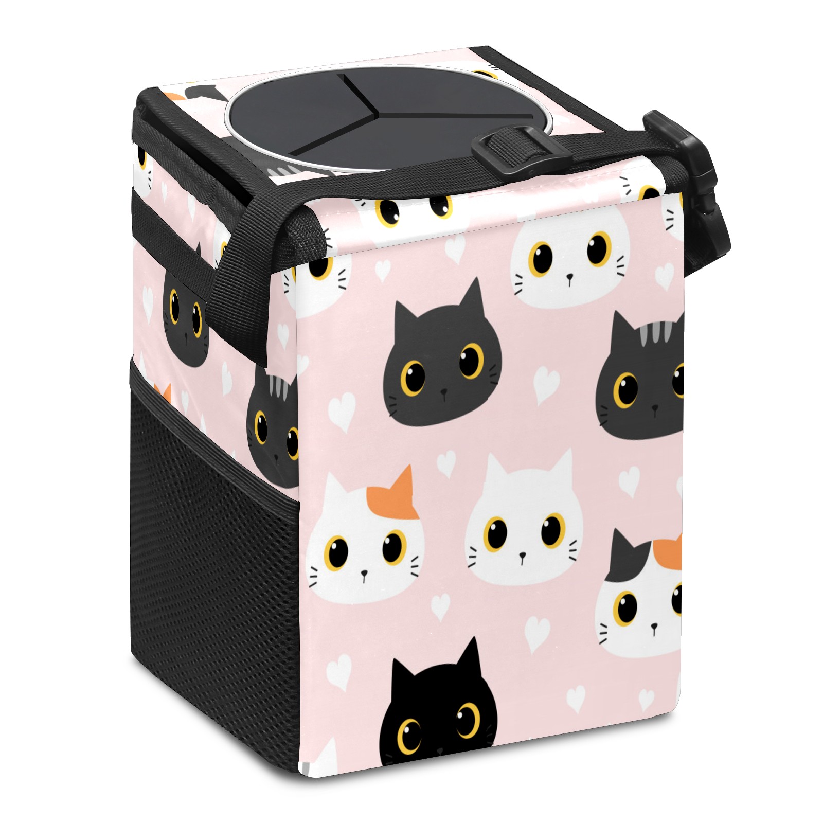 Car Garbage Can — Multi-functional, Lightweight Portable, Reusable Vehicle Trash Can, Waterproof with Sufficient Storage Capacity Cute Cat Kitten With Heart Cartoon Doodle Pattern