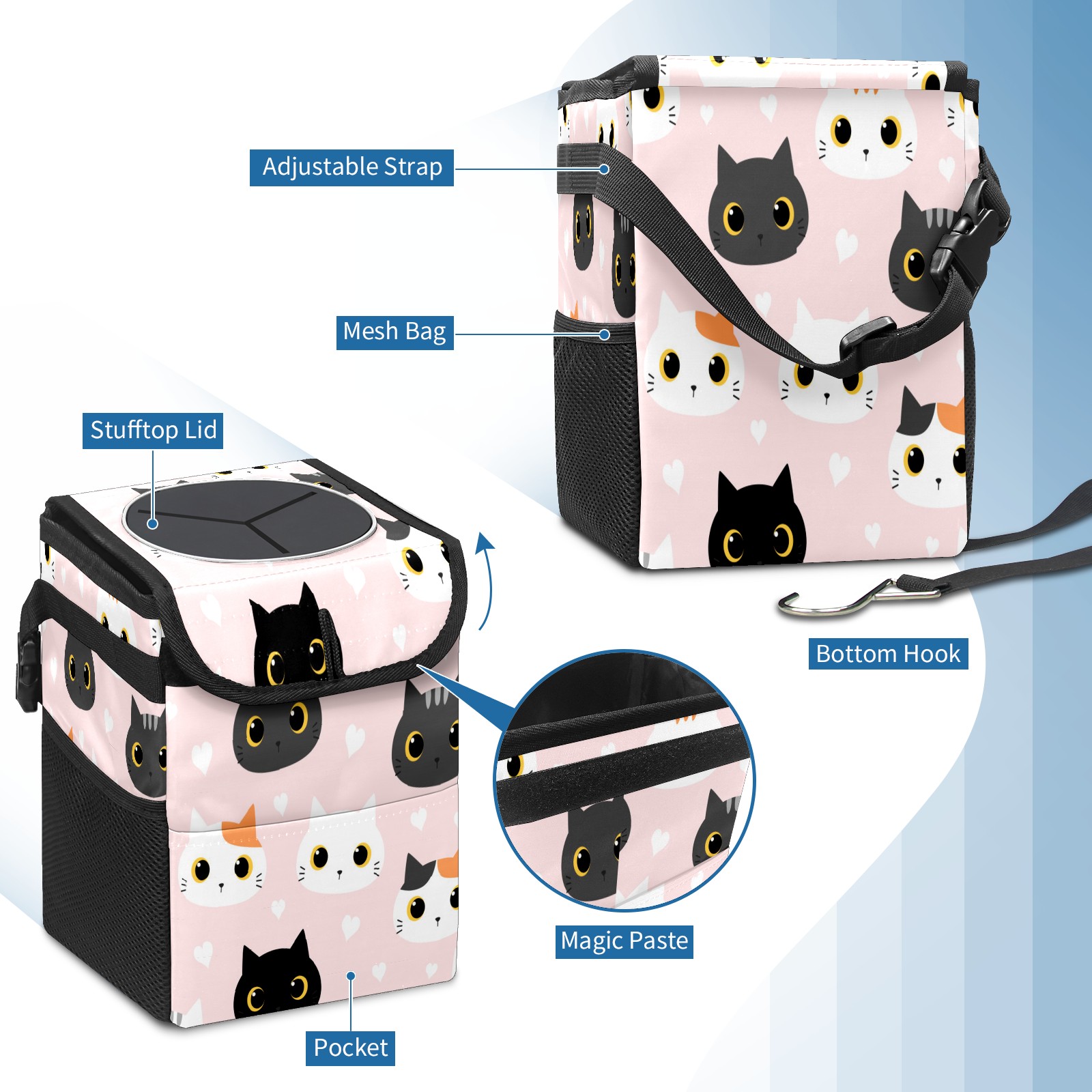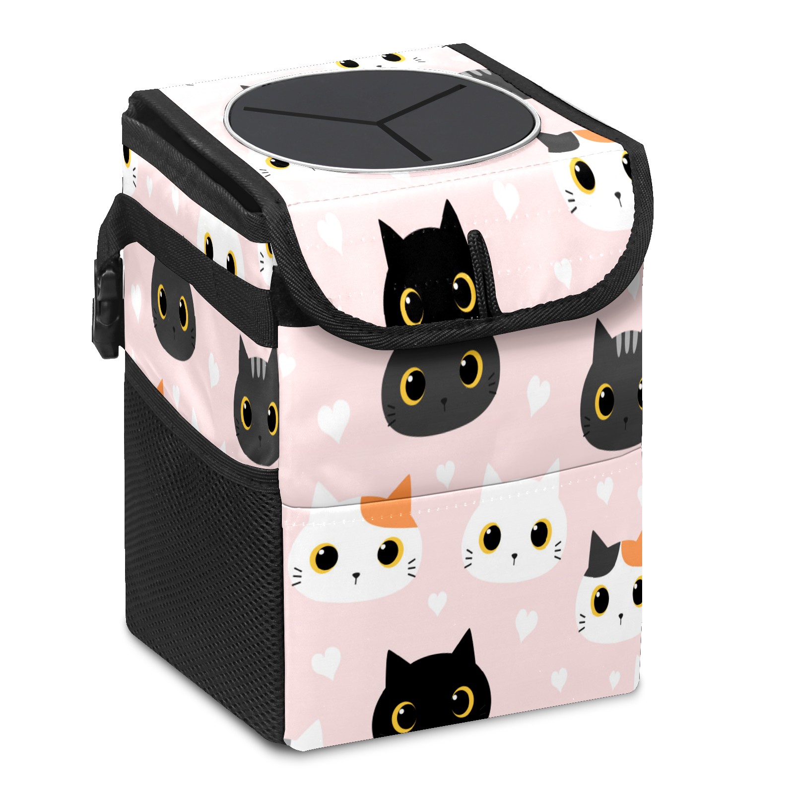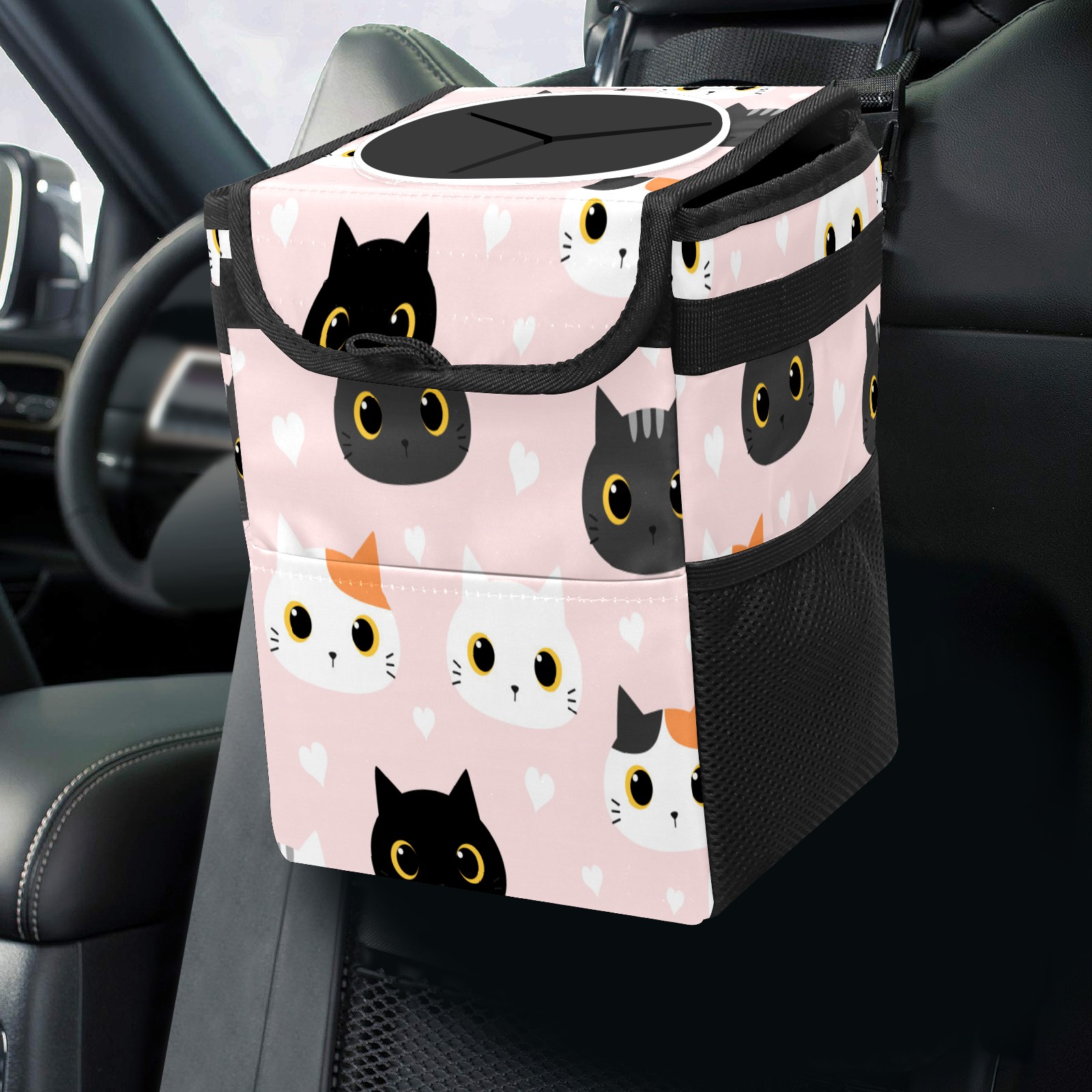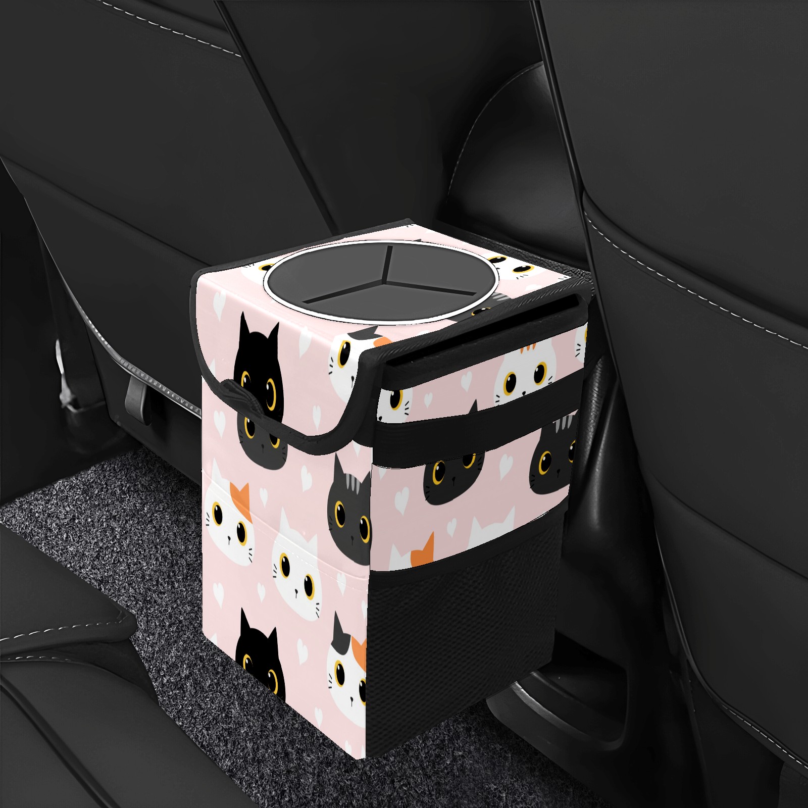 Car Garbage Can — Multi-functional, Lightweight Portable, Reusable Vehicle Trash Can, Waterproof with Sufficient Storage Capacity Cute Cat Kitten With Cartoon Pattern