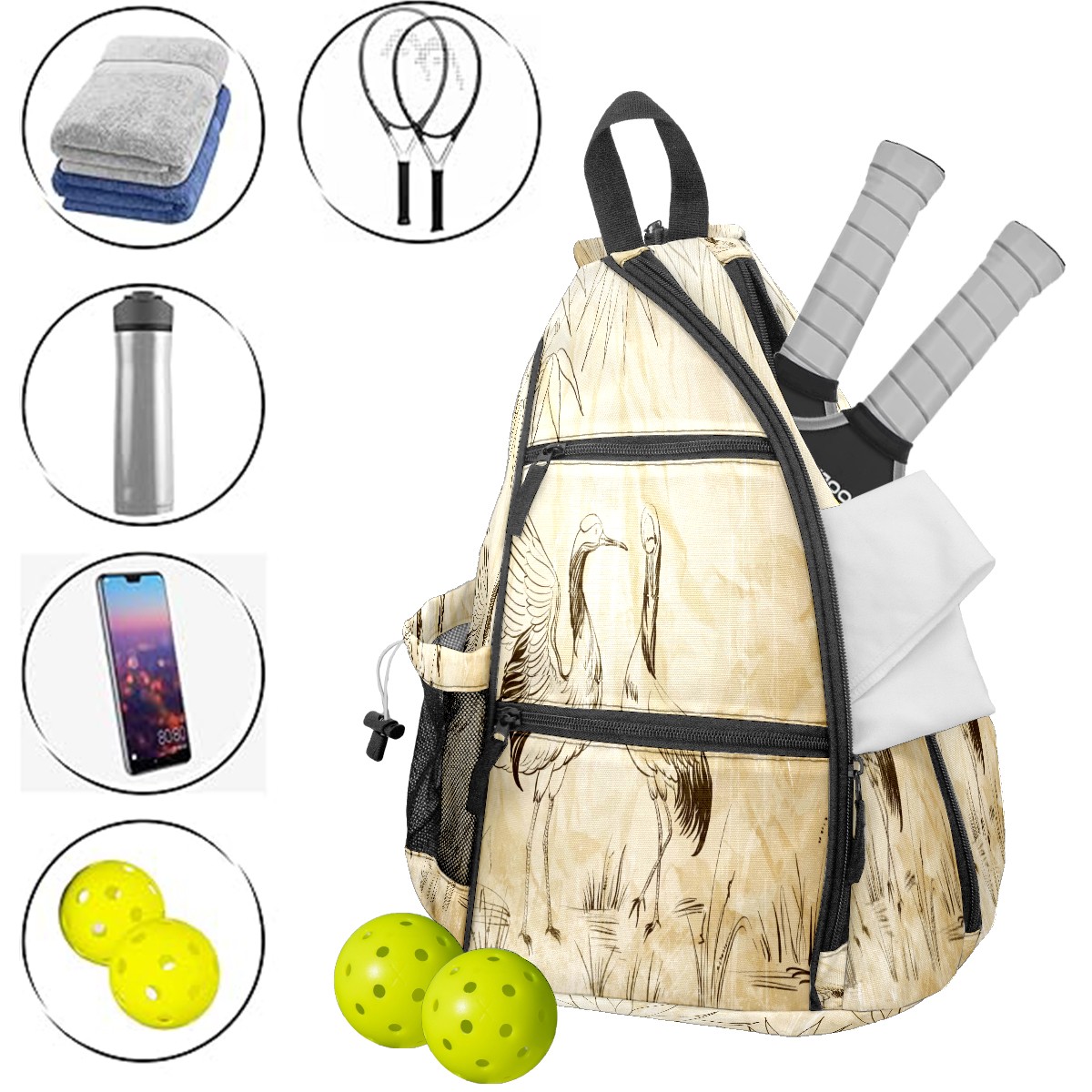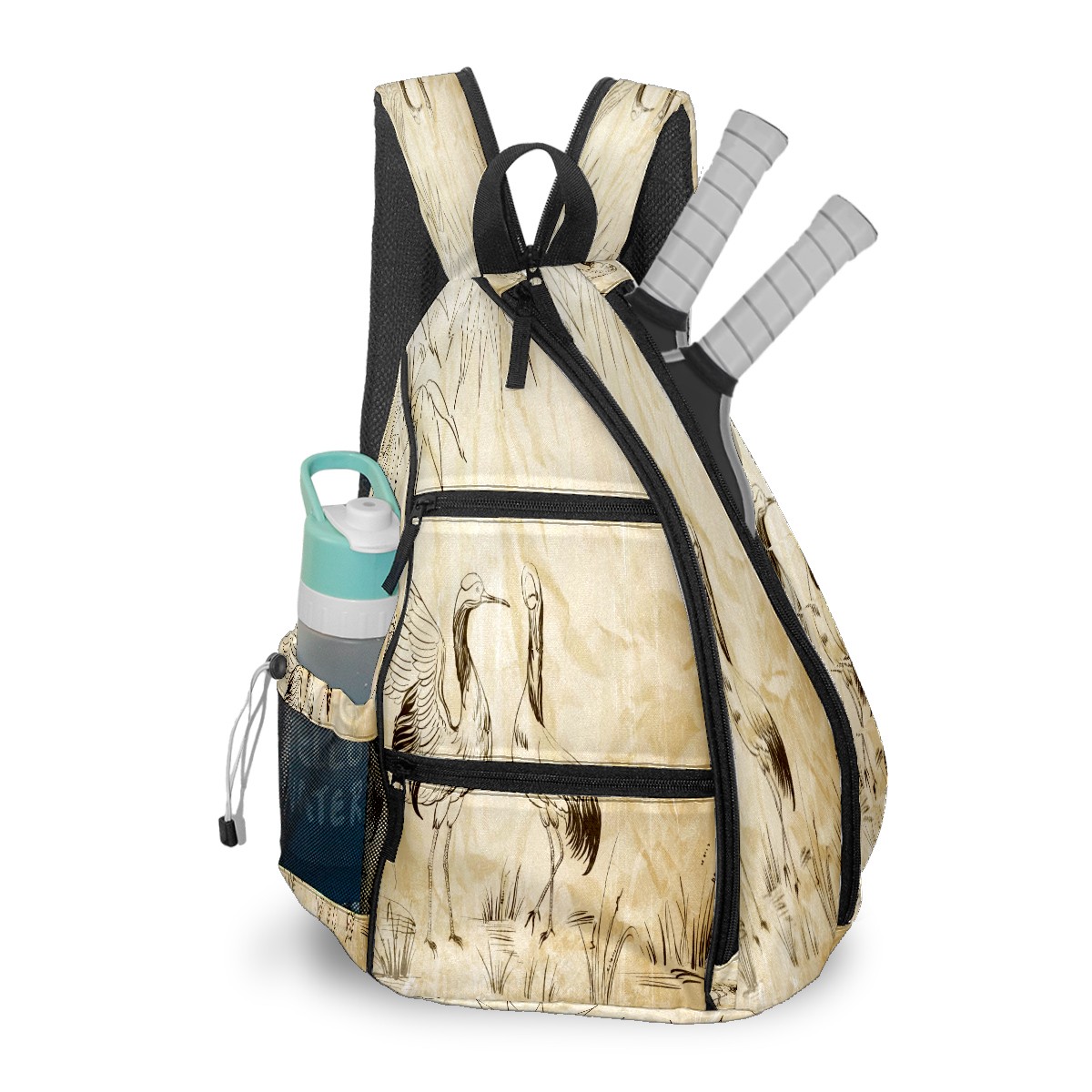 Multifunctional Pickleball Bag,Large Capacity Sports Pickleball Racket Bag, Water Bottle Holder and Fence Hook,Suitable for Both Men Women -鶴 復古 竹