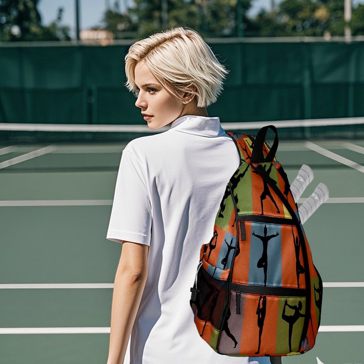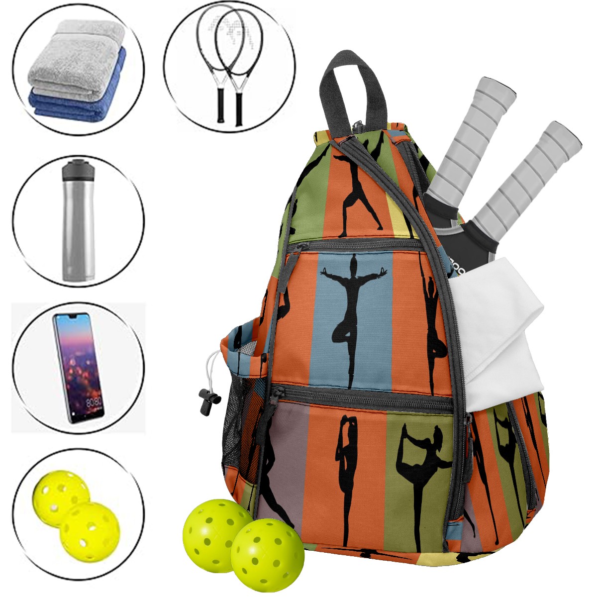 Multifunctional Pickleball Bag,Large Capacity Sports Pickleball Racket Bag, Water Bottle Holder and Fence Hook,Suitable for Both Men Women -ヨガの姿 おしゃれ