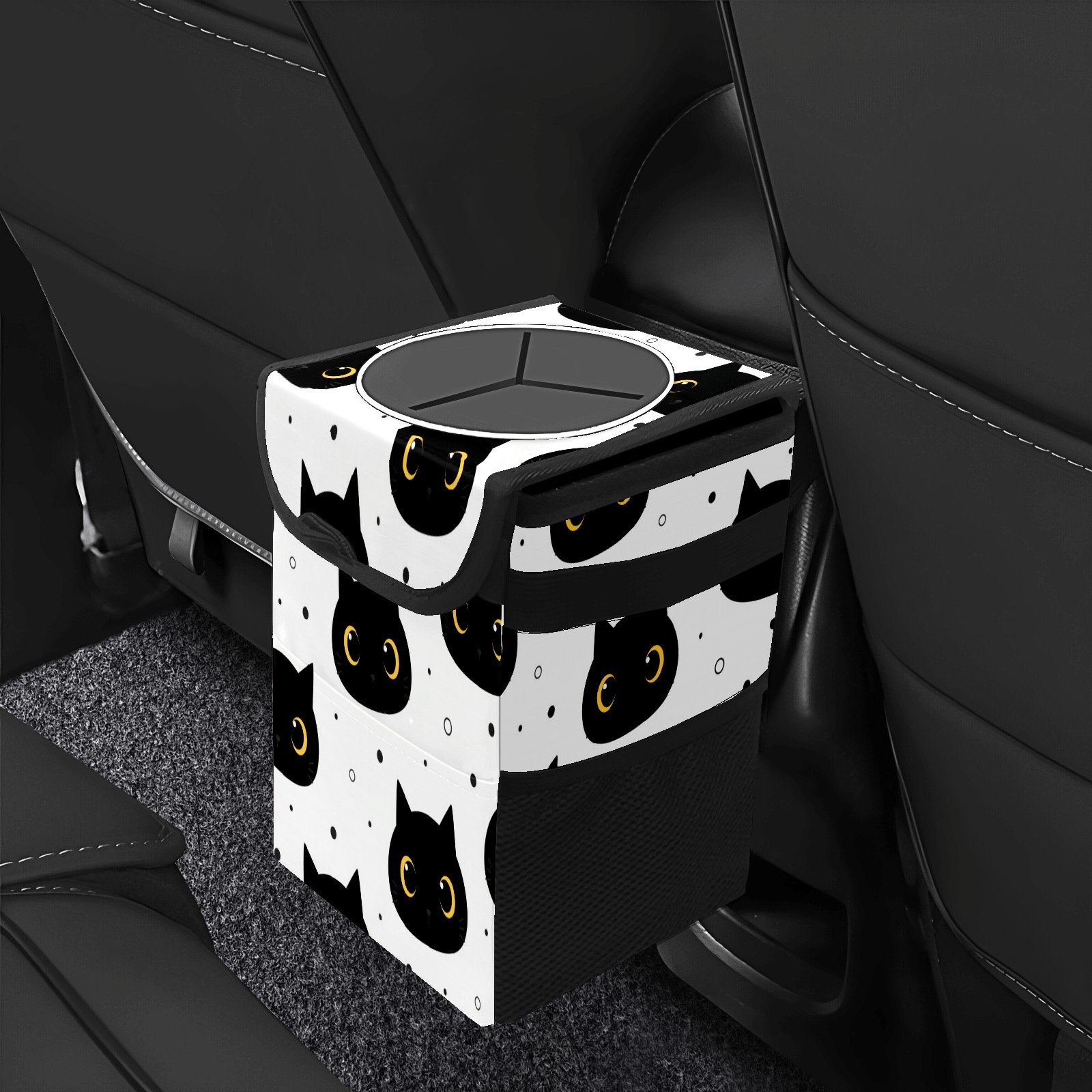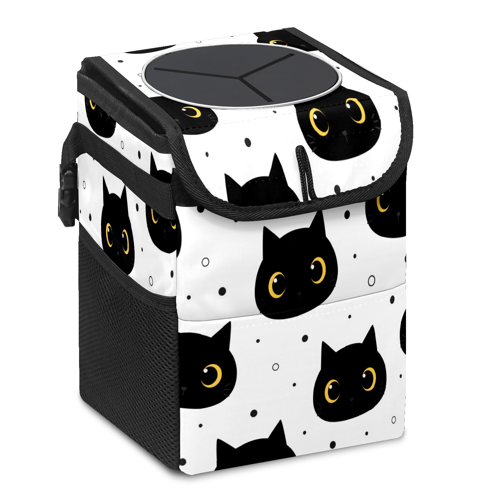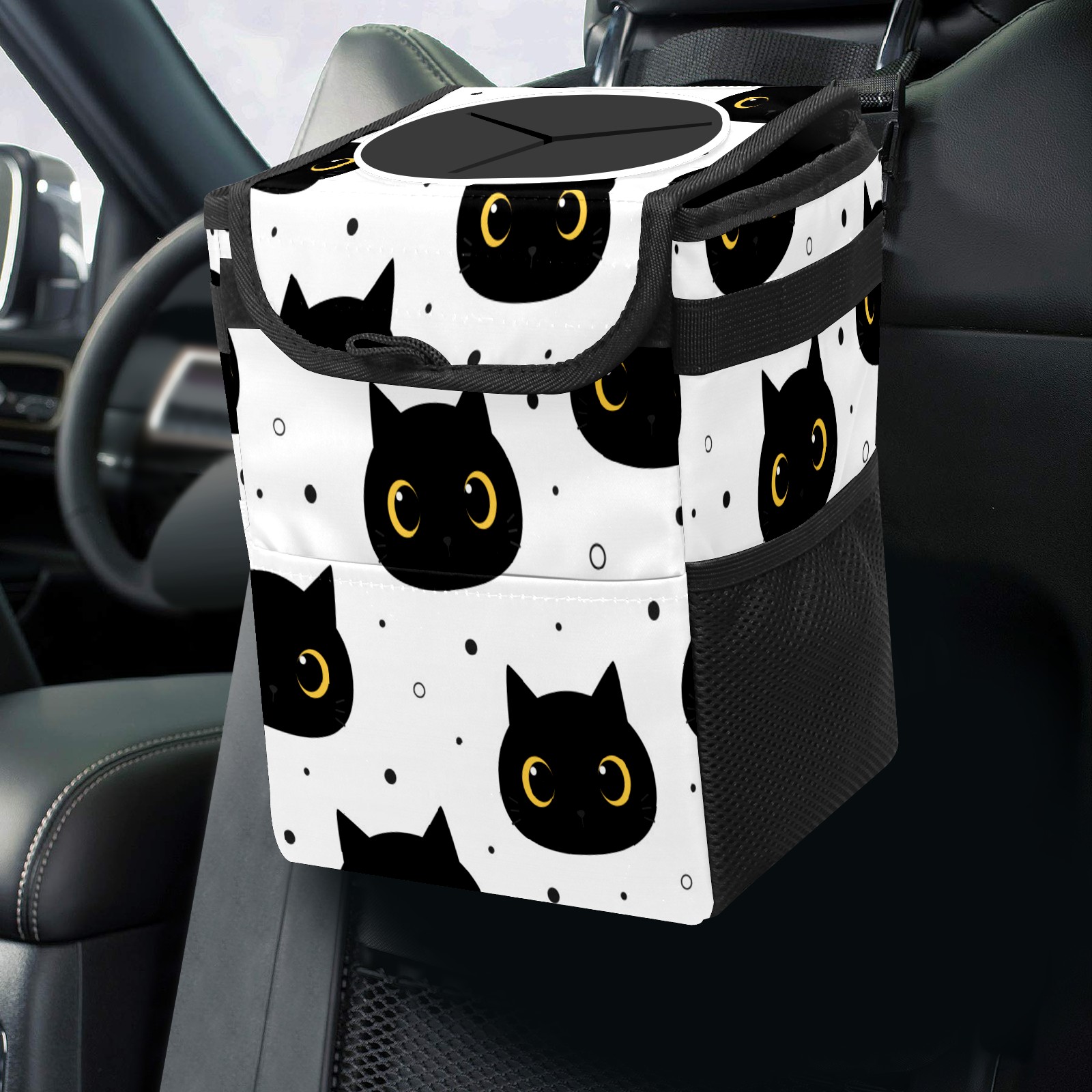 Car Garbage Can — Multi-functional, Lightweight Portable, Reusable Vehicle Trash Can, Waterproof with Sufficient Storage Capacity Cute Black Cat Cartoon Pattern