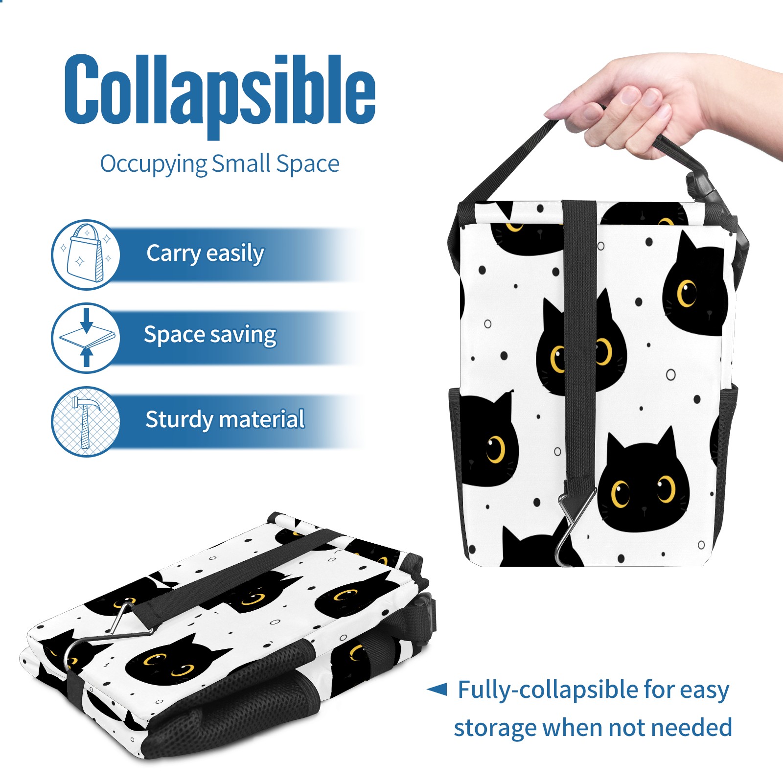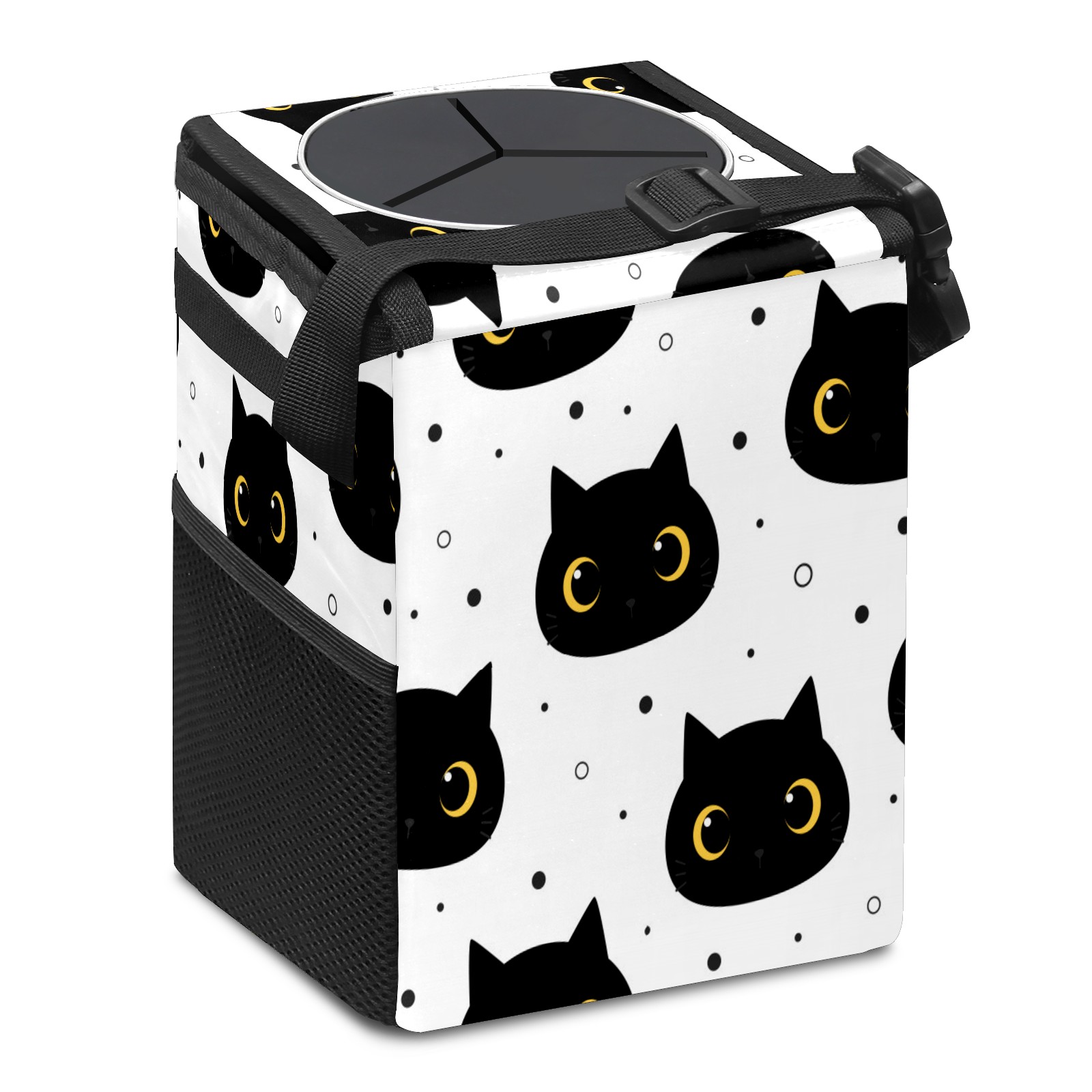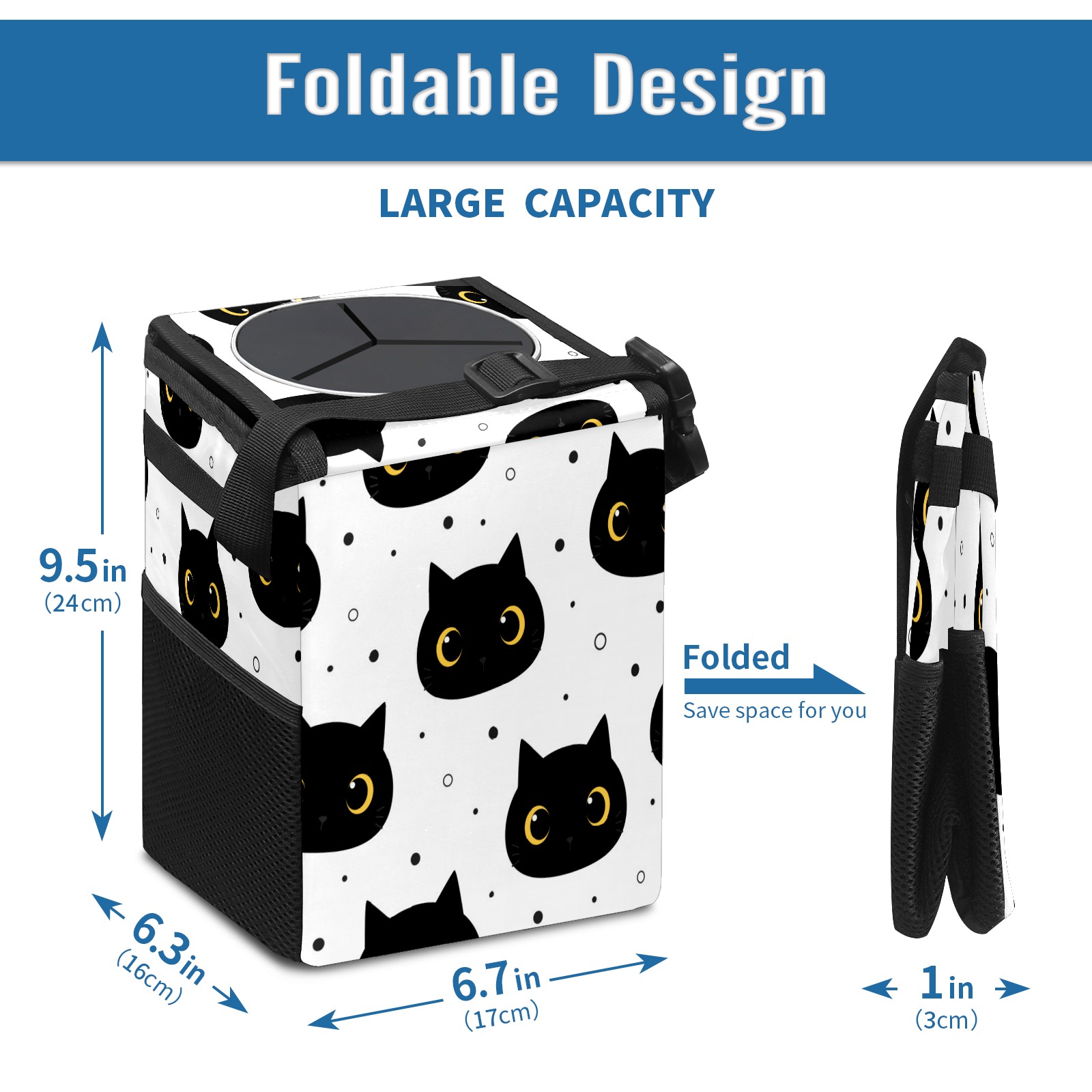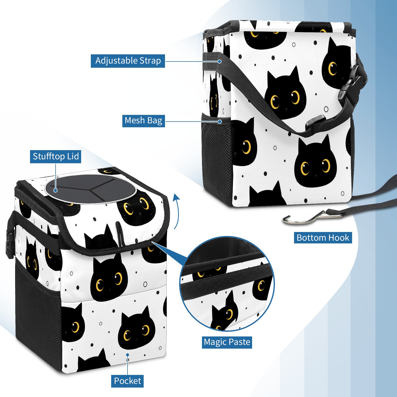 Car Garbage Can — Multi-functional, Lightweight Portable, Reusable Vehicle Trash Can, Waterproof with Sufficient Storage Capacity Cute Black Cat Cartoon Pattern