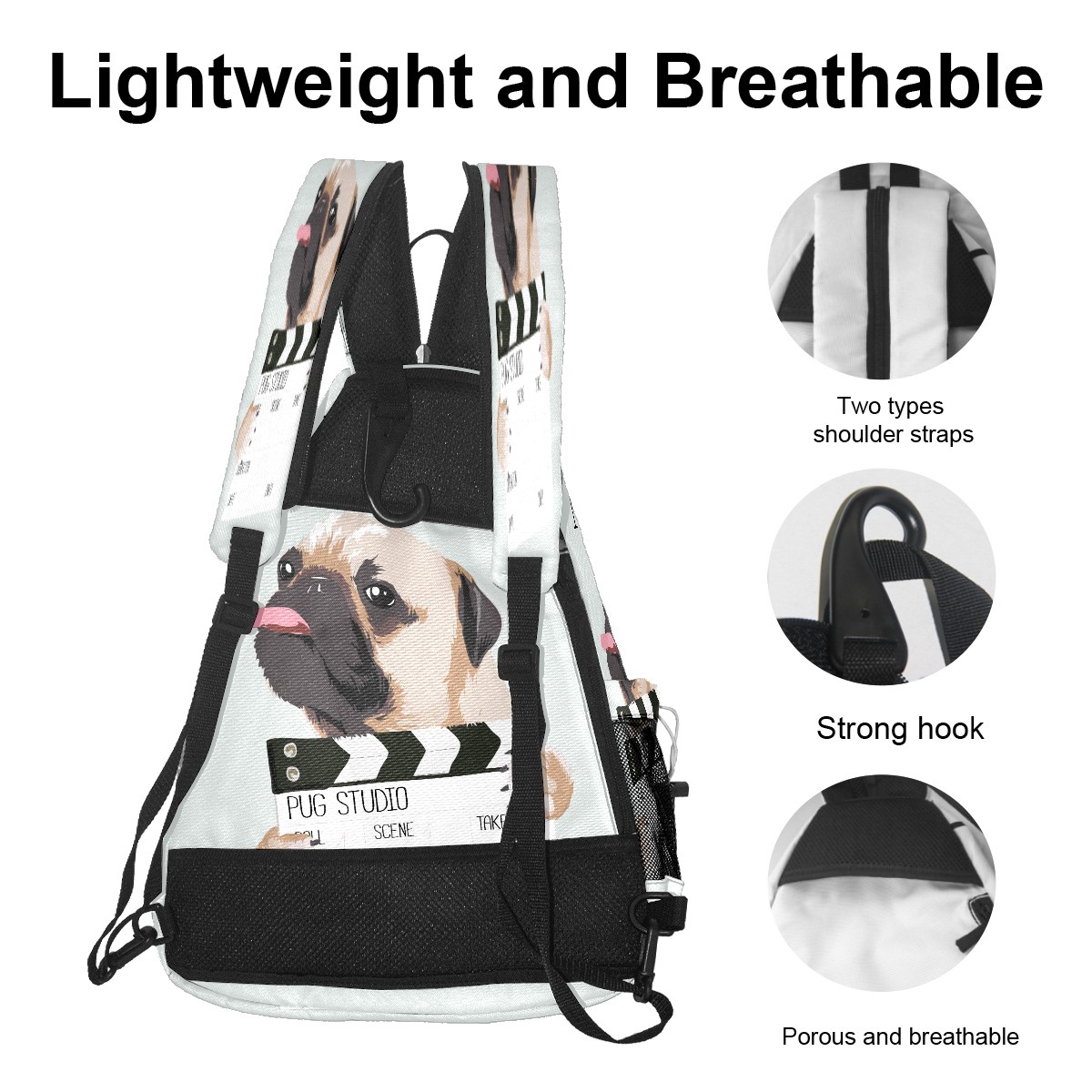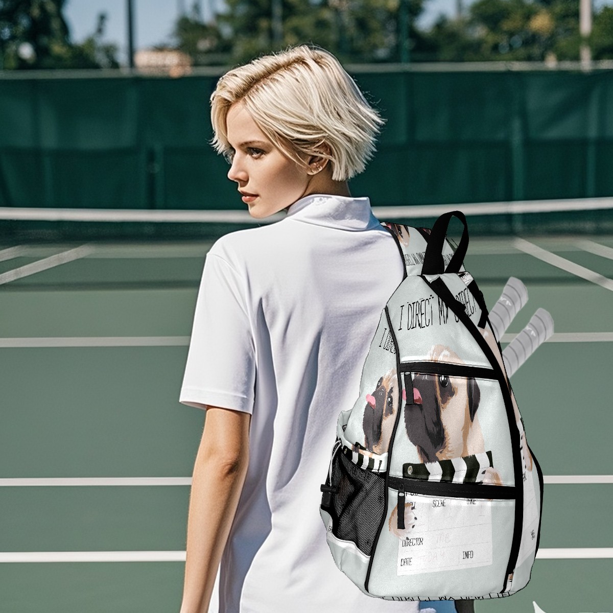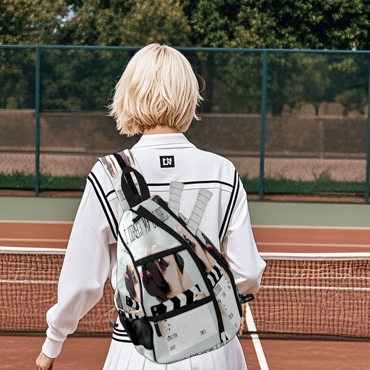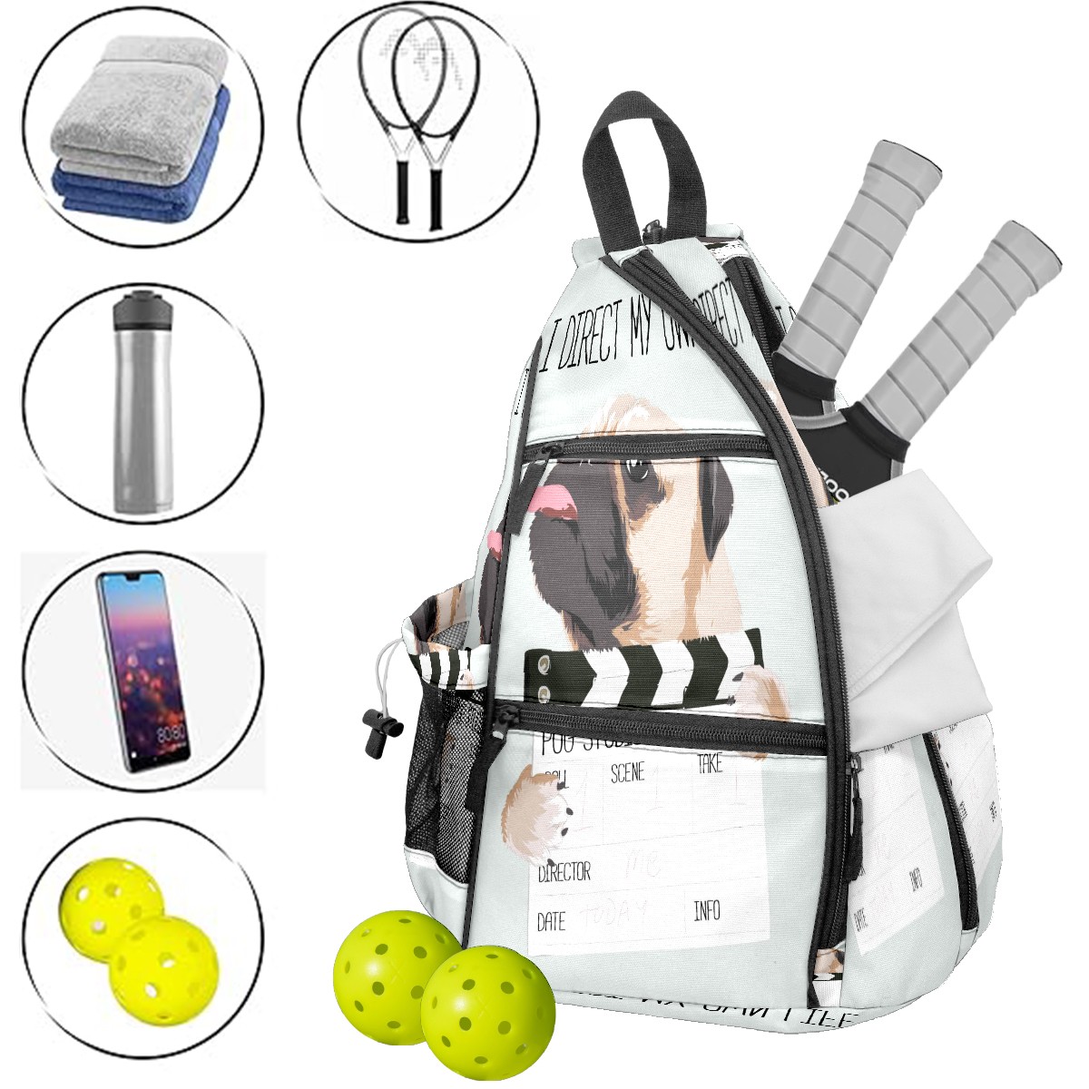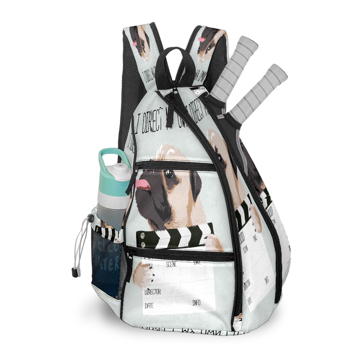 Multifunctional Pickleball Bag,Large Capacity Sports Pickleball Racket Bag, Water Bottle Holder and Fence Hook,Suitable for Both Men Women -パグ 面白い 犬