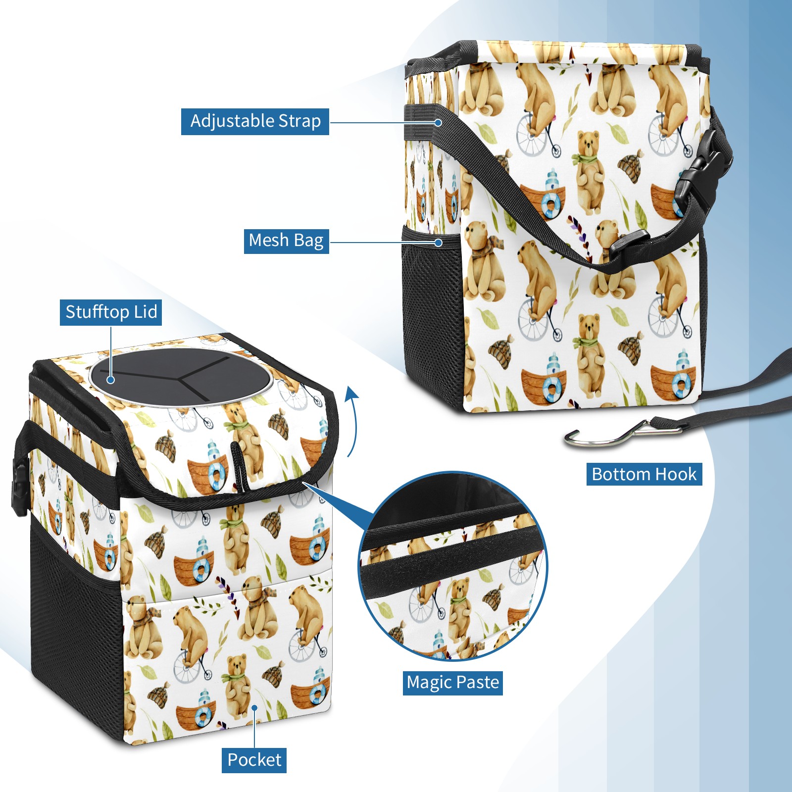 Car Garbage Can — Multi-functional, Lightweight Portable, Reusable Vehicle Trash Can, Waterproof with Sufficient Storage Capacity Cute Bears Bicycle