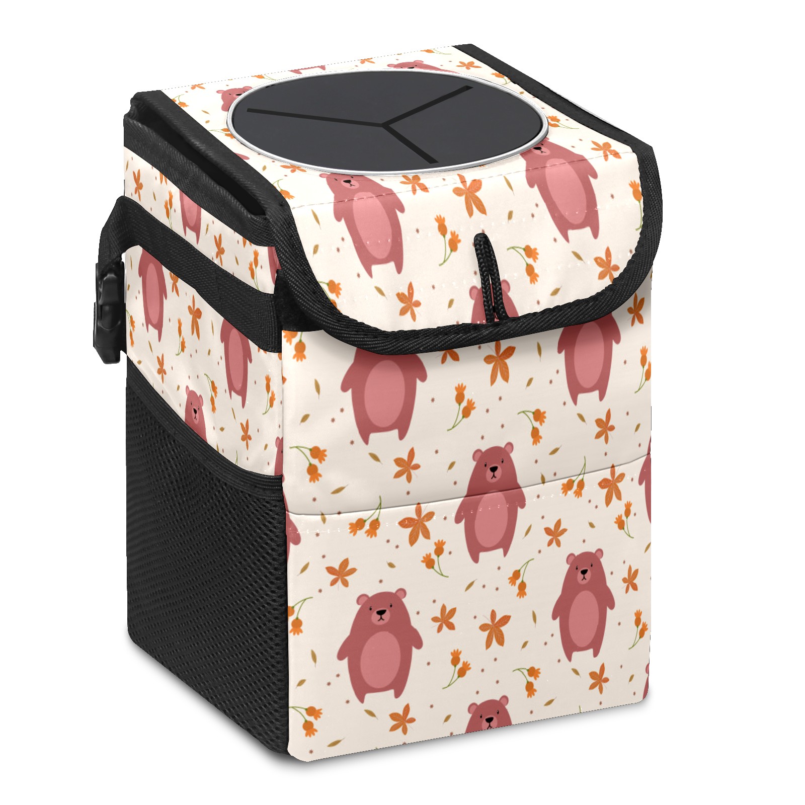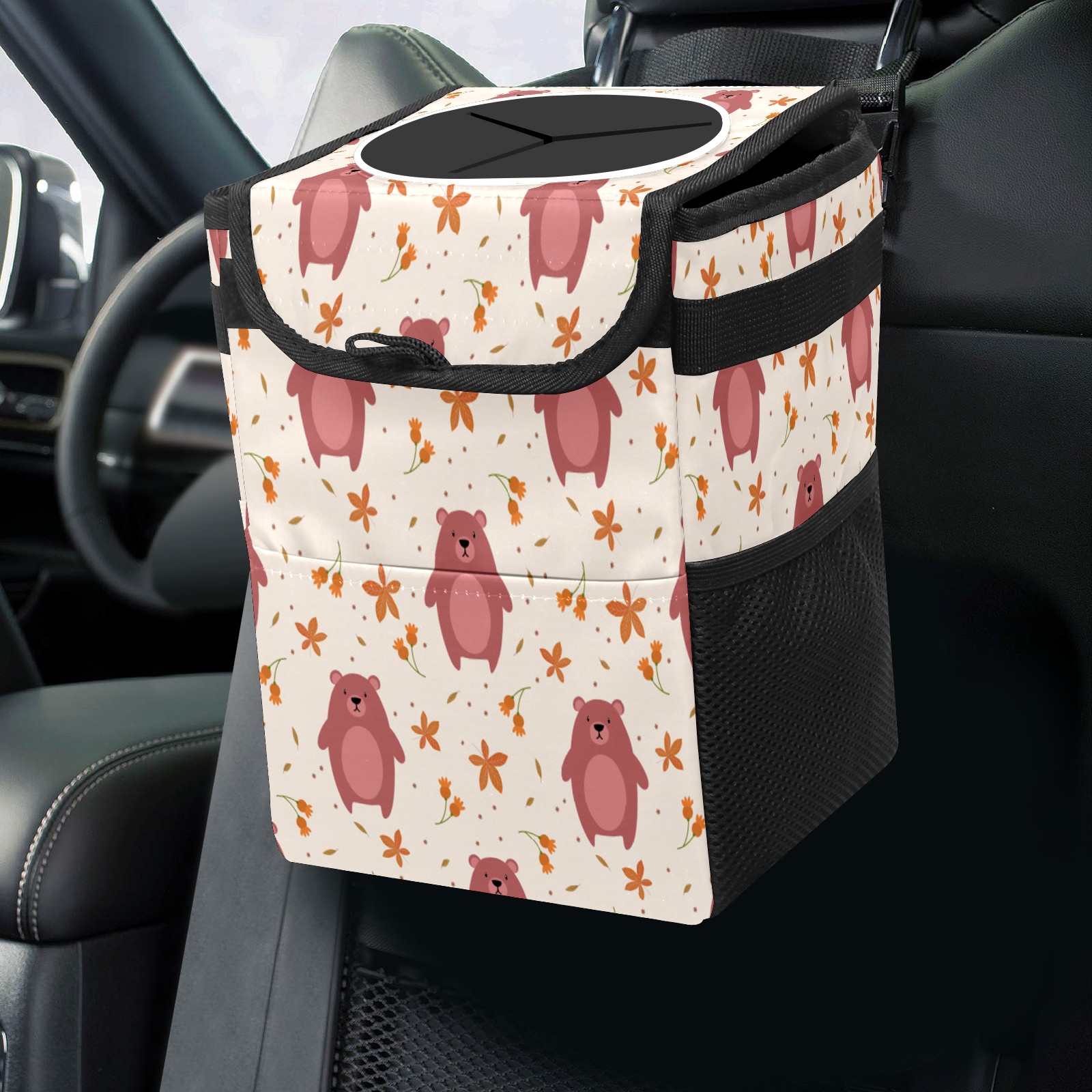 Car Garbage Can — Multi-functional, Lightweight Portable, Reusable Vehicle Trash Can, Waterproof with Sufficient Storage Capacity Cute Bear Leaves Pattern