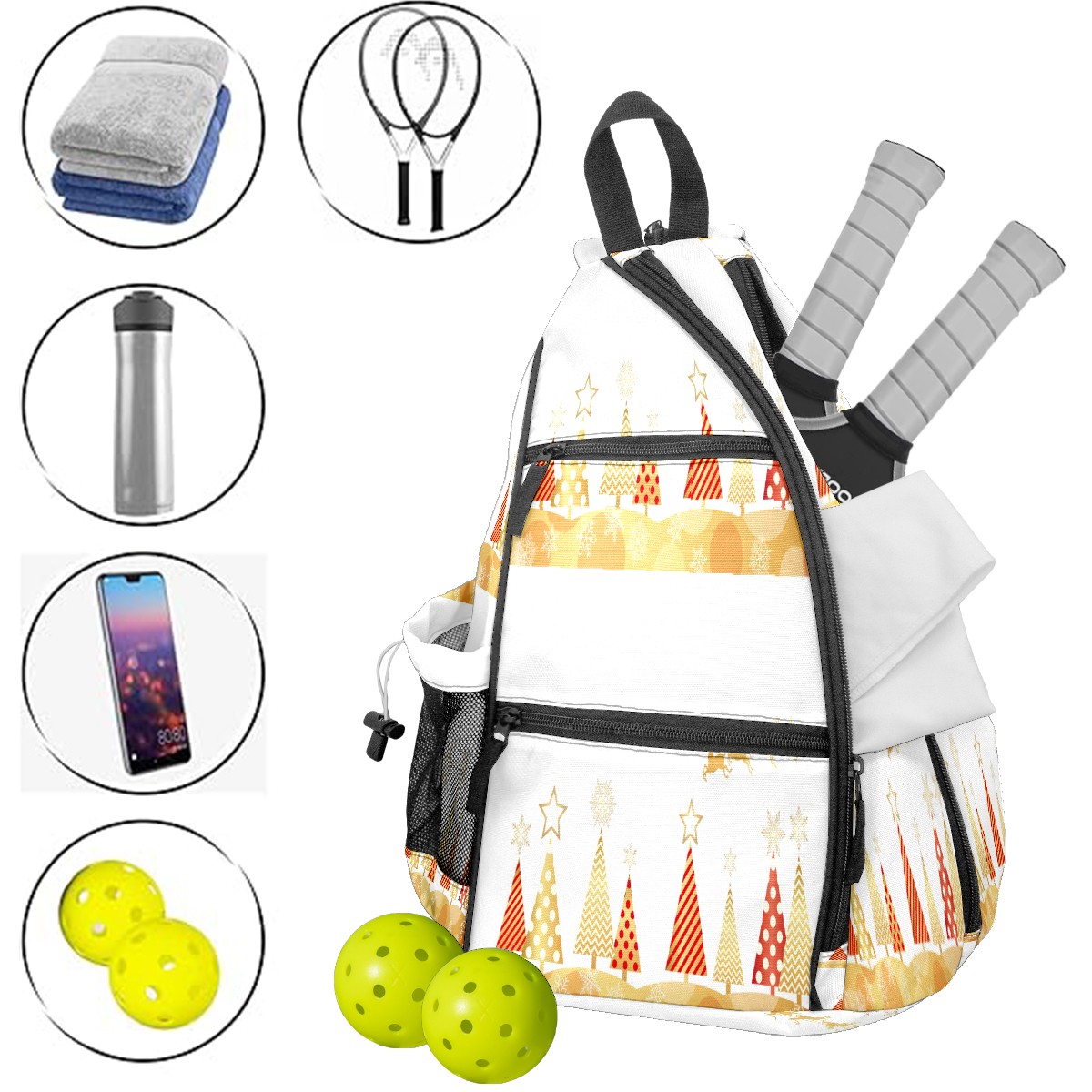 Multifunctional Pickleball Bag,Large Capacity Sports Pickleball Racket Bag, Water Bottle Holder and Fence Hook,Suitable for Both Men Women -クリスマス 松 おしゃれ