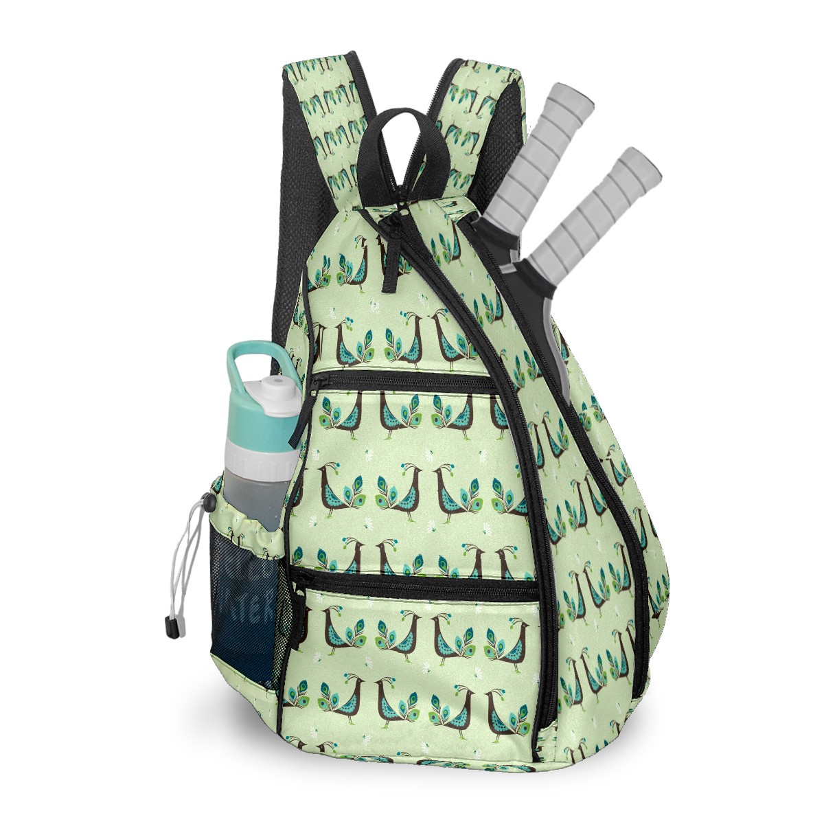 Multifunctional Pickleball Bag,Large Capacity Sports Pickleball Racket Bag, Water Bottle Holder and Fence Hook,Suitable for Both Men Women -クジャク柄 おしゃれ かわいい