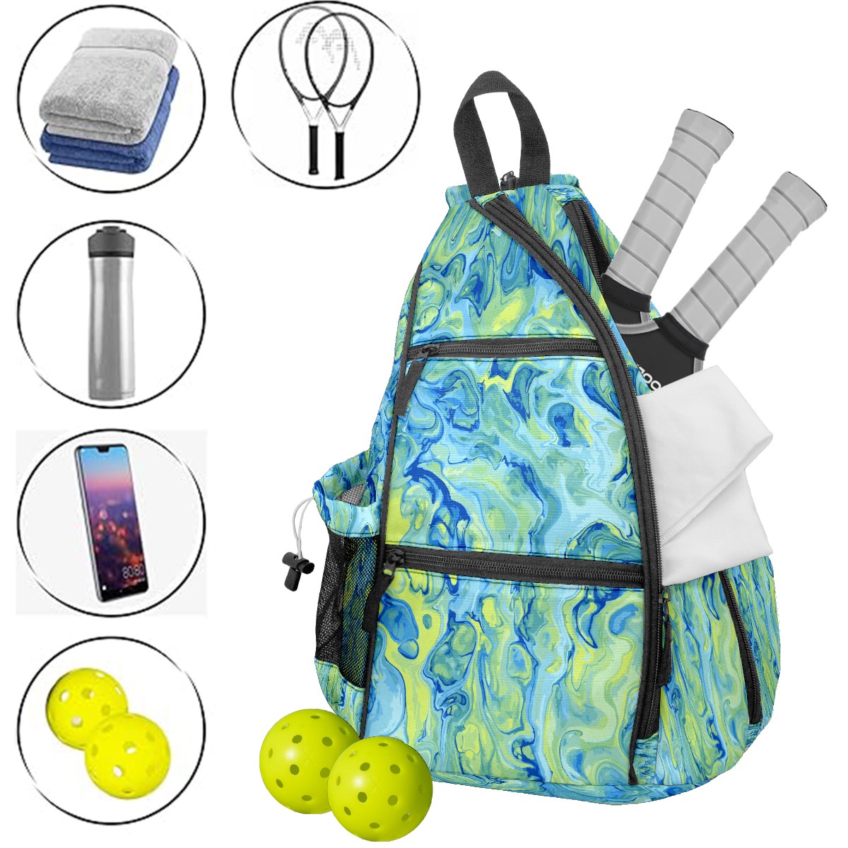 Multifunctional Pickleball Bag,Large Capacity Sports Pickleball Racket Bag, Water Bottle Holder and Fence Hook,Suitable for Both Men Women -きれい 流れ