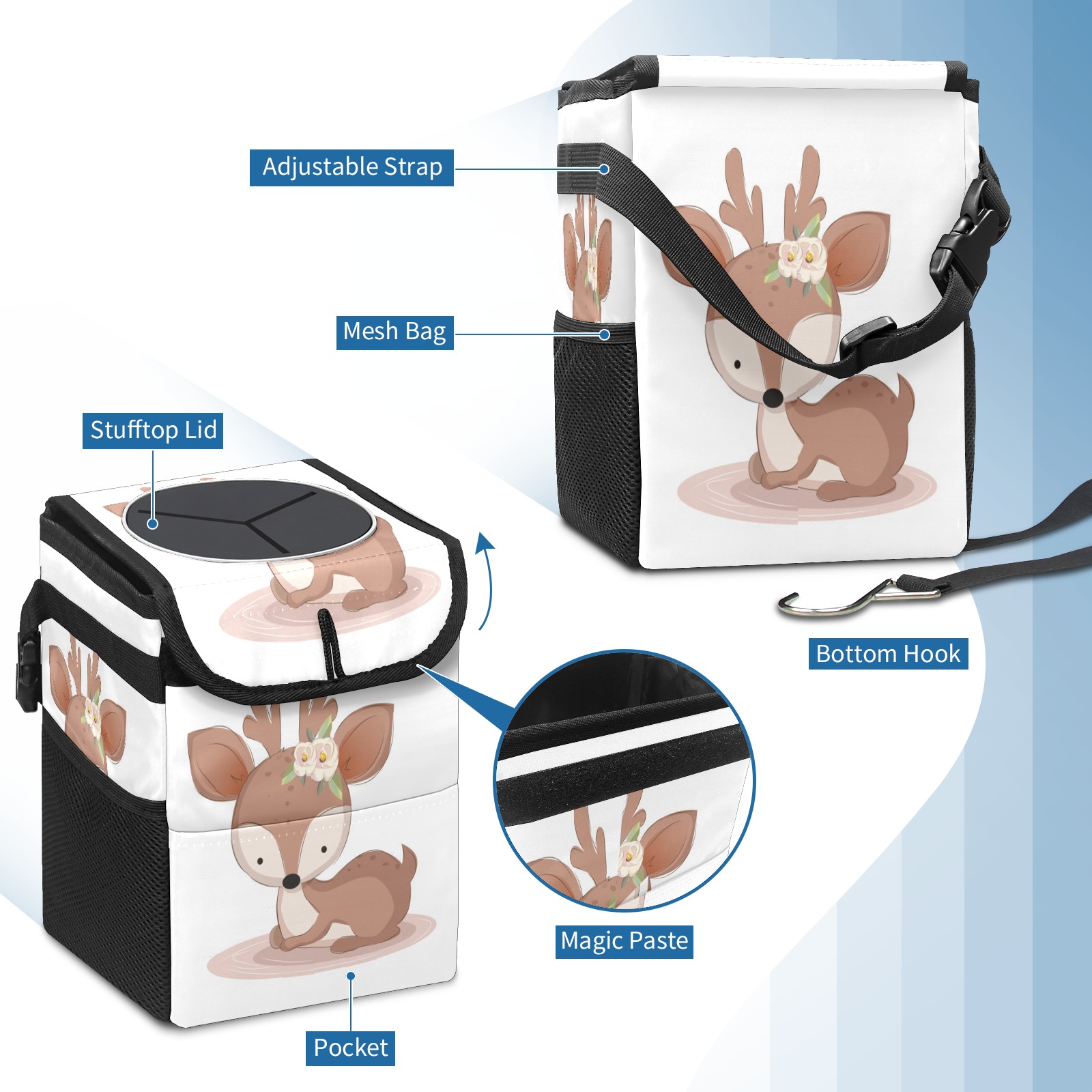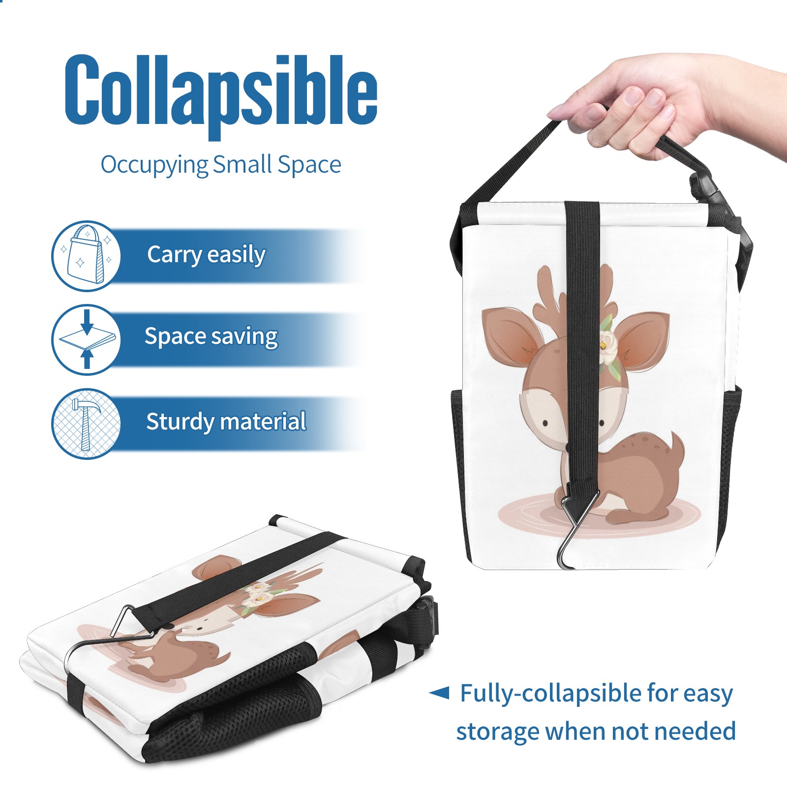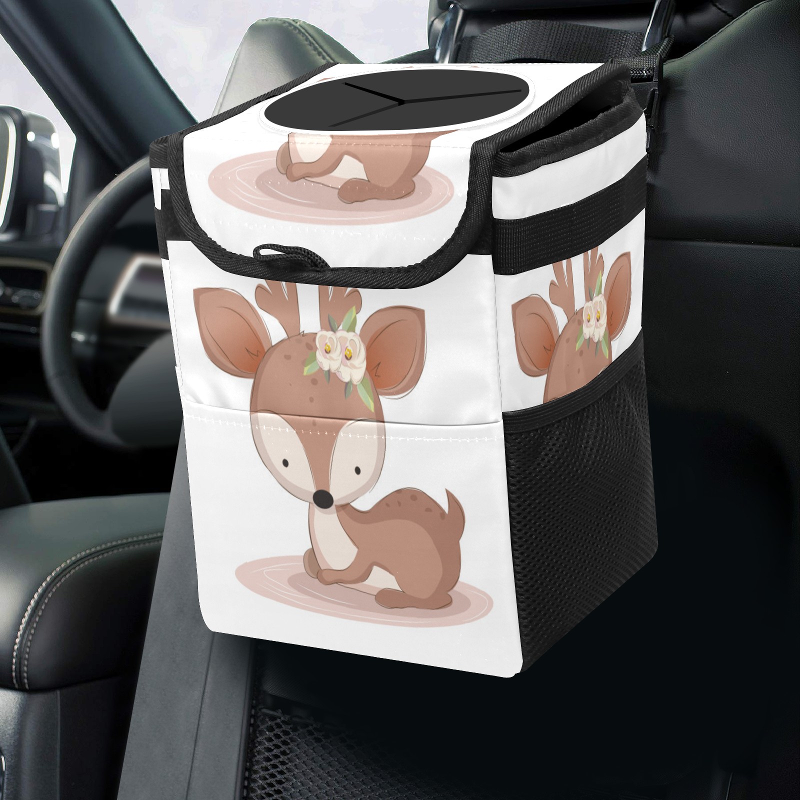 Car Garbage Can — Multi-functional, Lightweight Portable, Reusable Vehicle Trash Can, Waterproof with Sufficient Storage Capacity Cute Baby Deer Relaxing