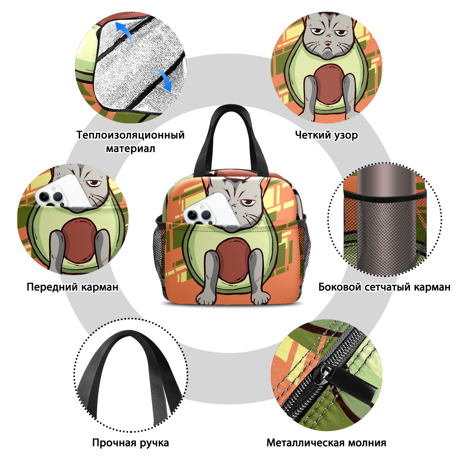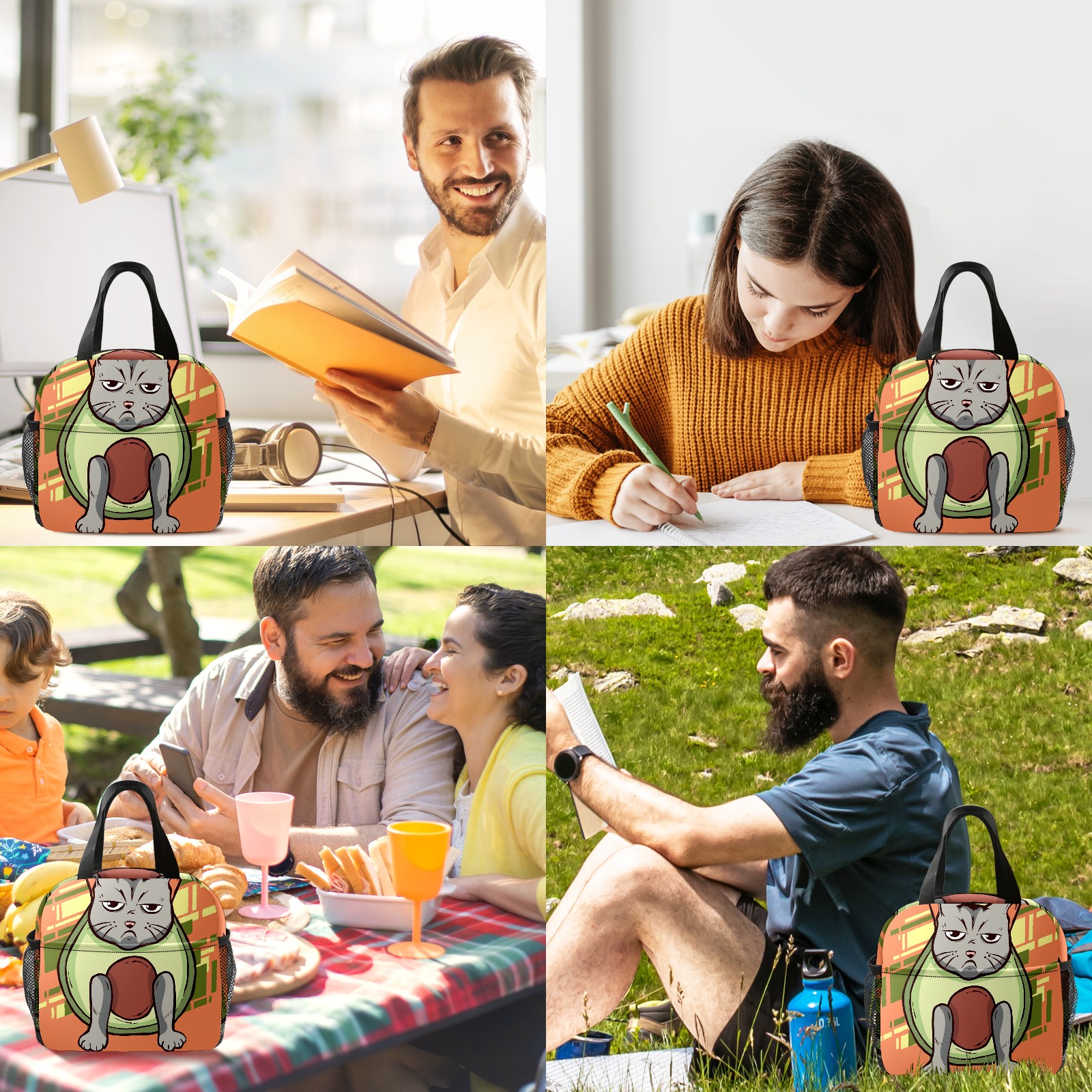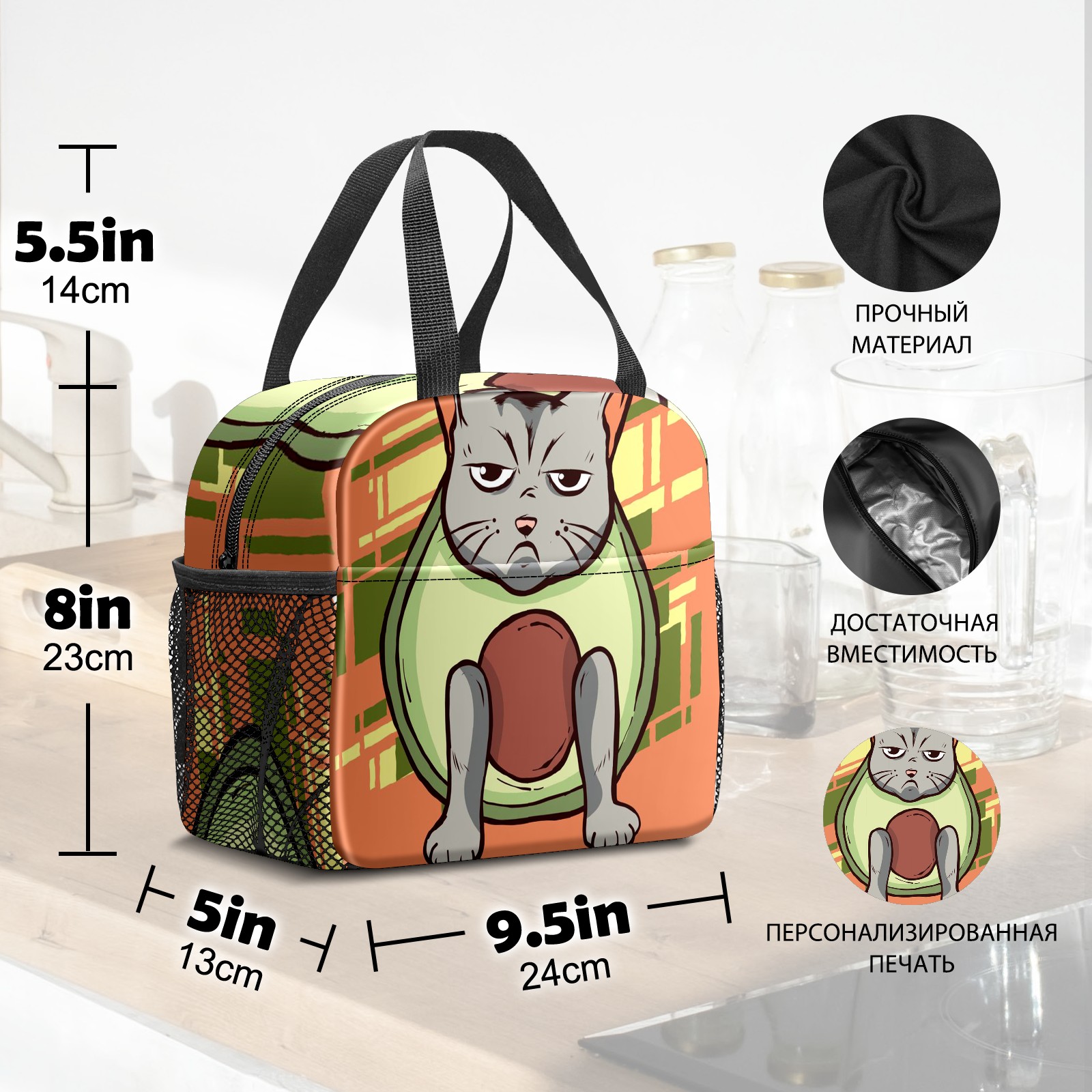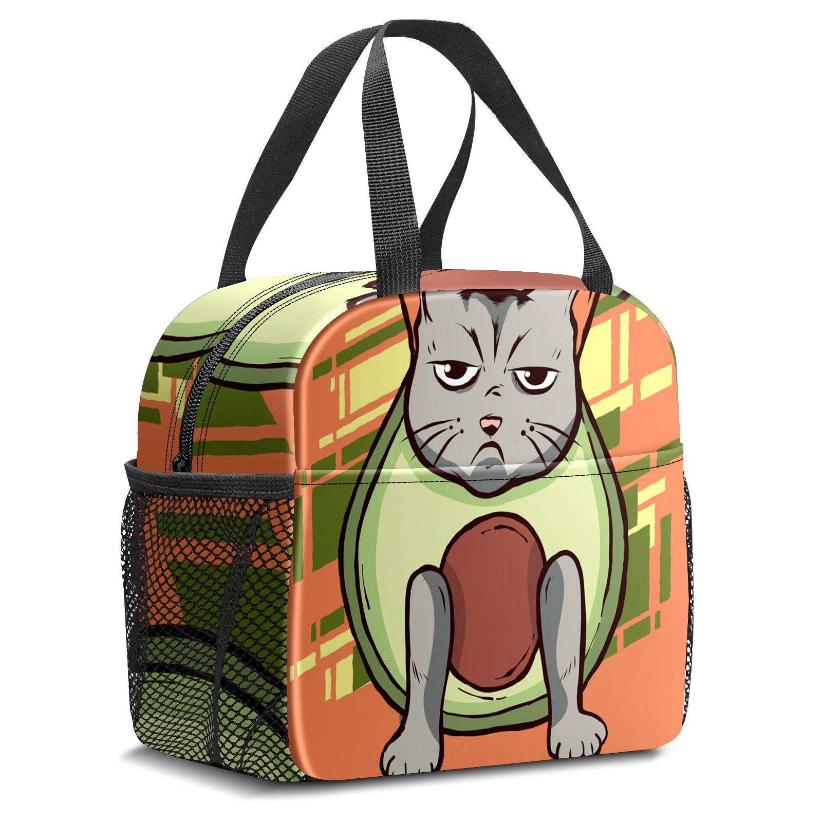 Lunch Bag,Lunch Box for Women Men,Cat Avocado Reusable Insulated Lunch Tote,Small Leakproof Cute Lunch Cooler with High Capacity for Work,Picnic,Camping