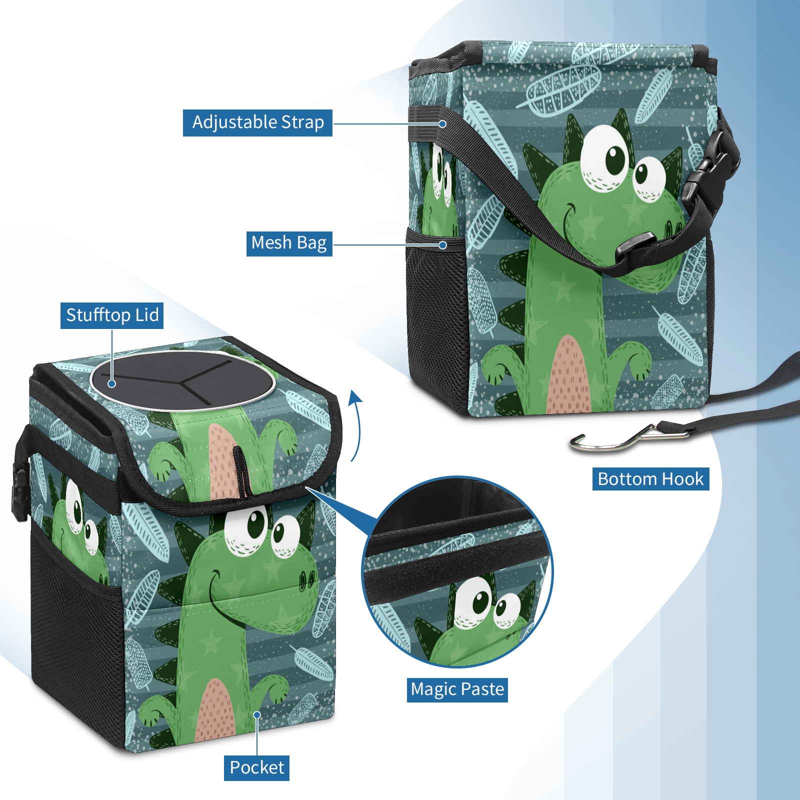 Car Garbage Can — Multi-functional, Lightweight Portable, Reusable Vehicle Trash Can, Waterproof with Sufficient Storage Capacity Crazy Dinosaur Characters