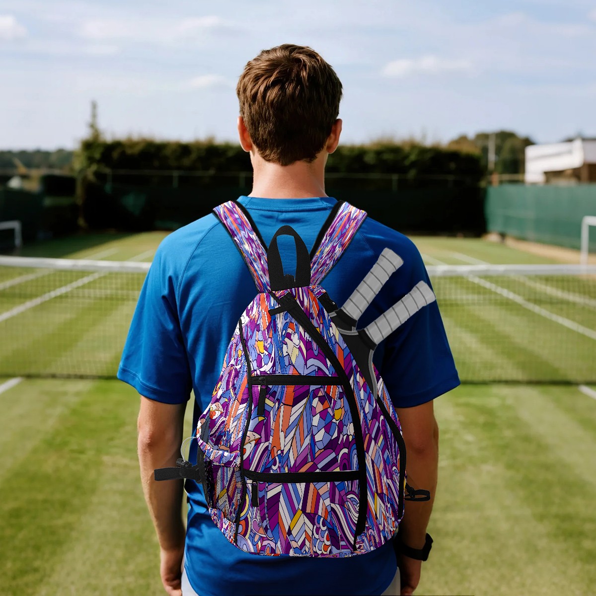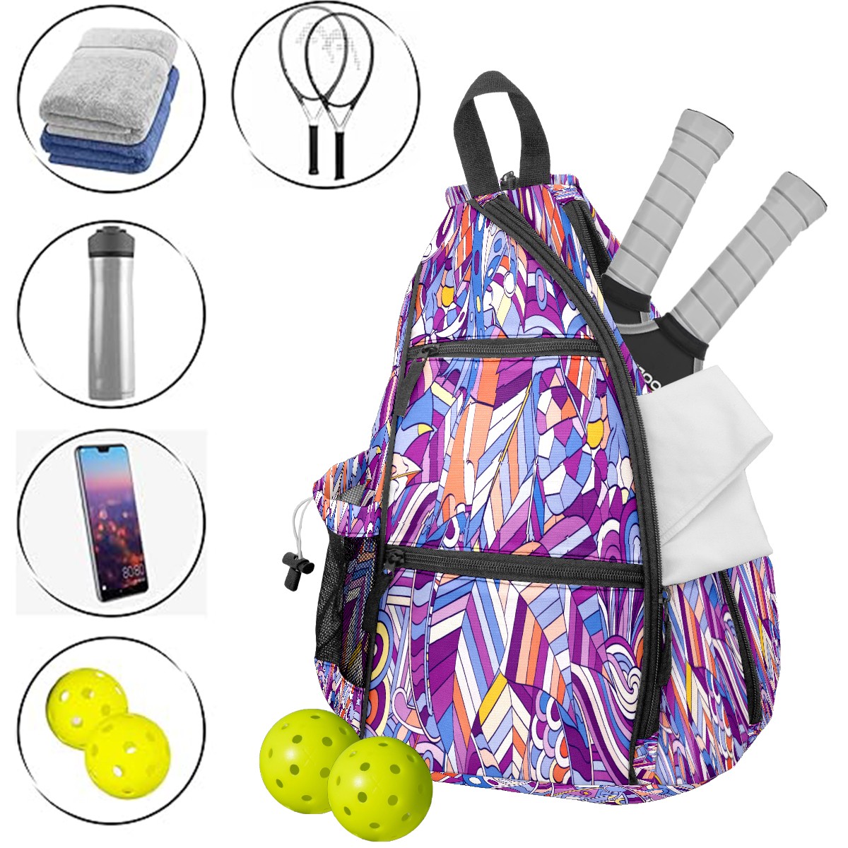 Multifunctional Pickleball Bag,Large Capacity Sports Pickleball Racket Bag, Water Bottle Holder and Fence Hook,Suitable for Both Men Women -カラー きれい