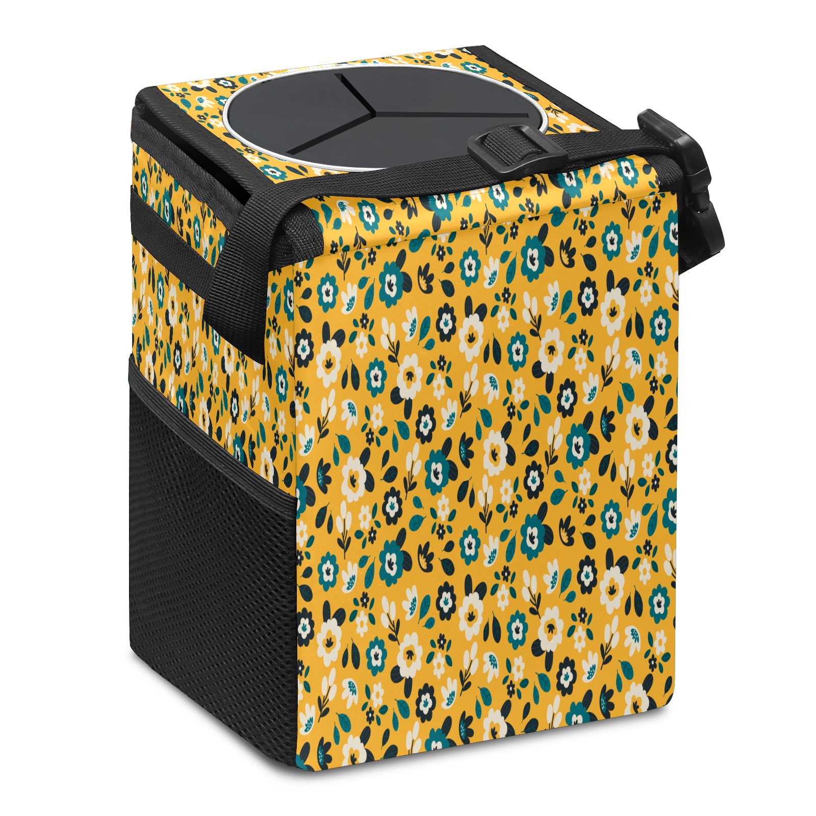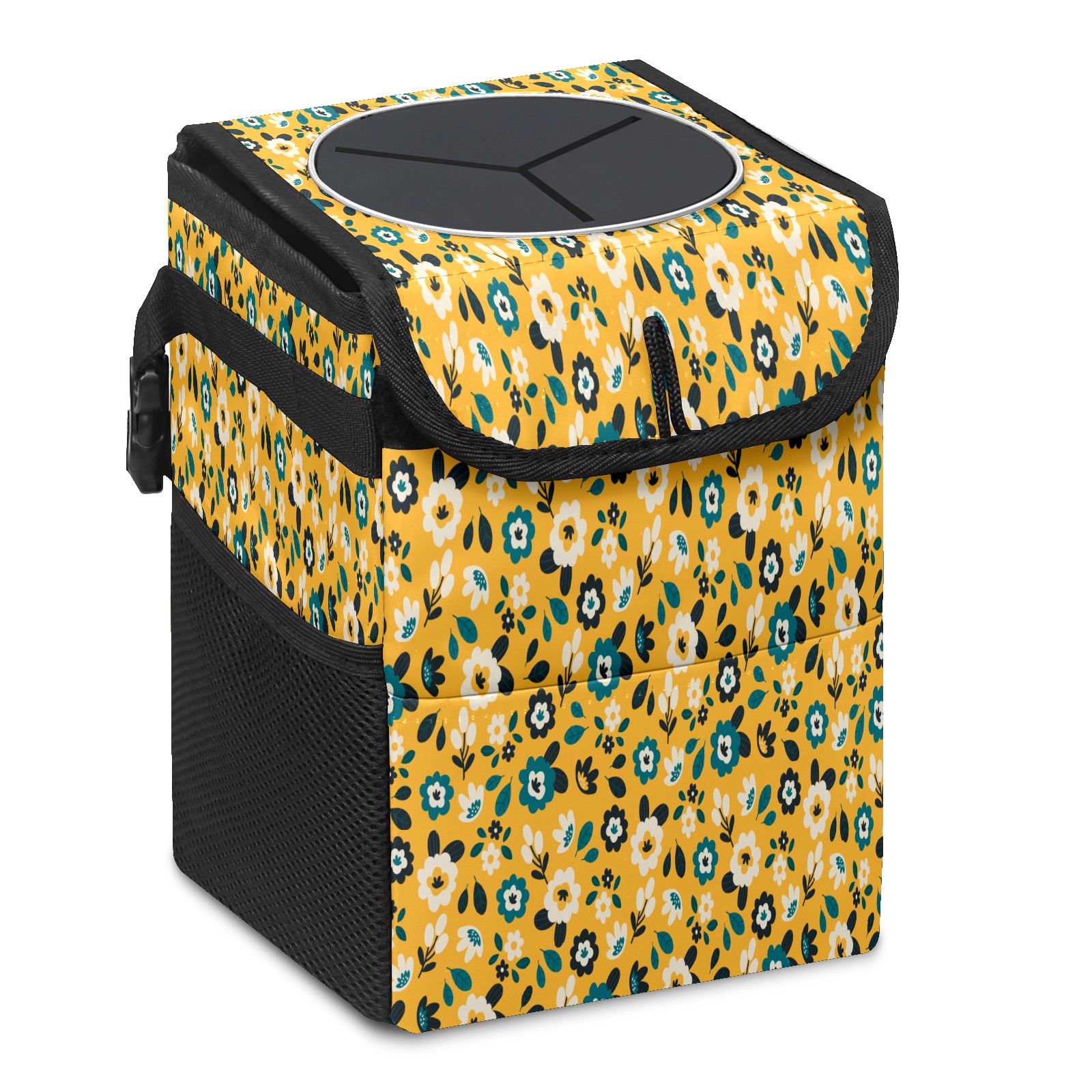 Car Garbage Can — Multi-functional, Lightweight Portable, Reusable Vehicle Trash Can, Waterproof with Sufficient Storage Capacity Colorful Flowers Yellow