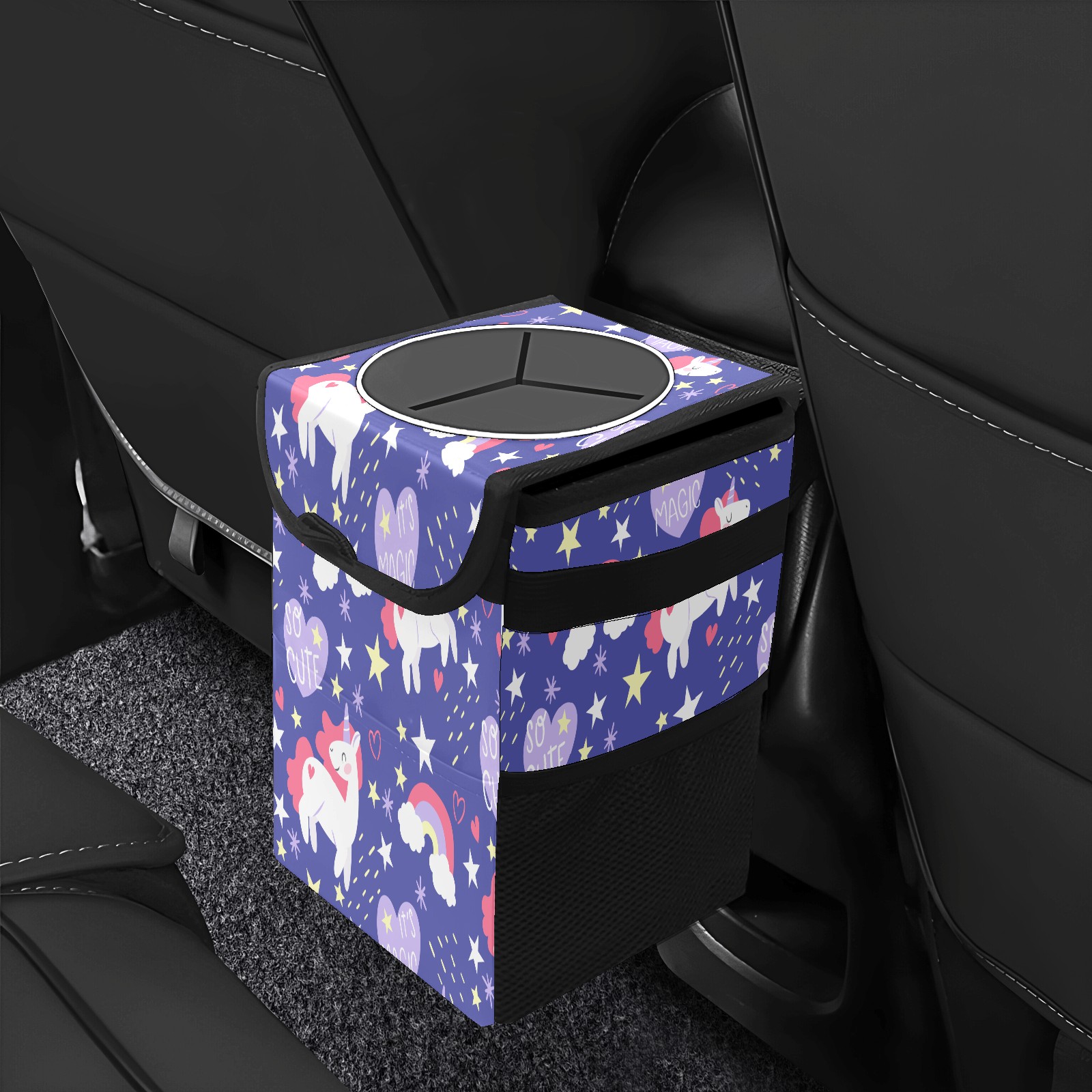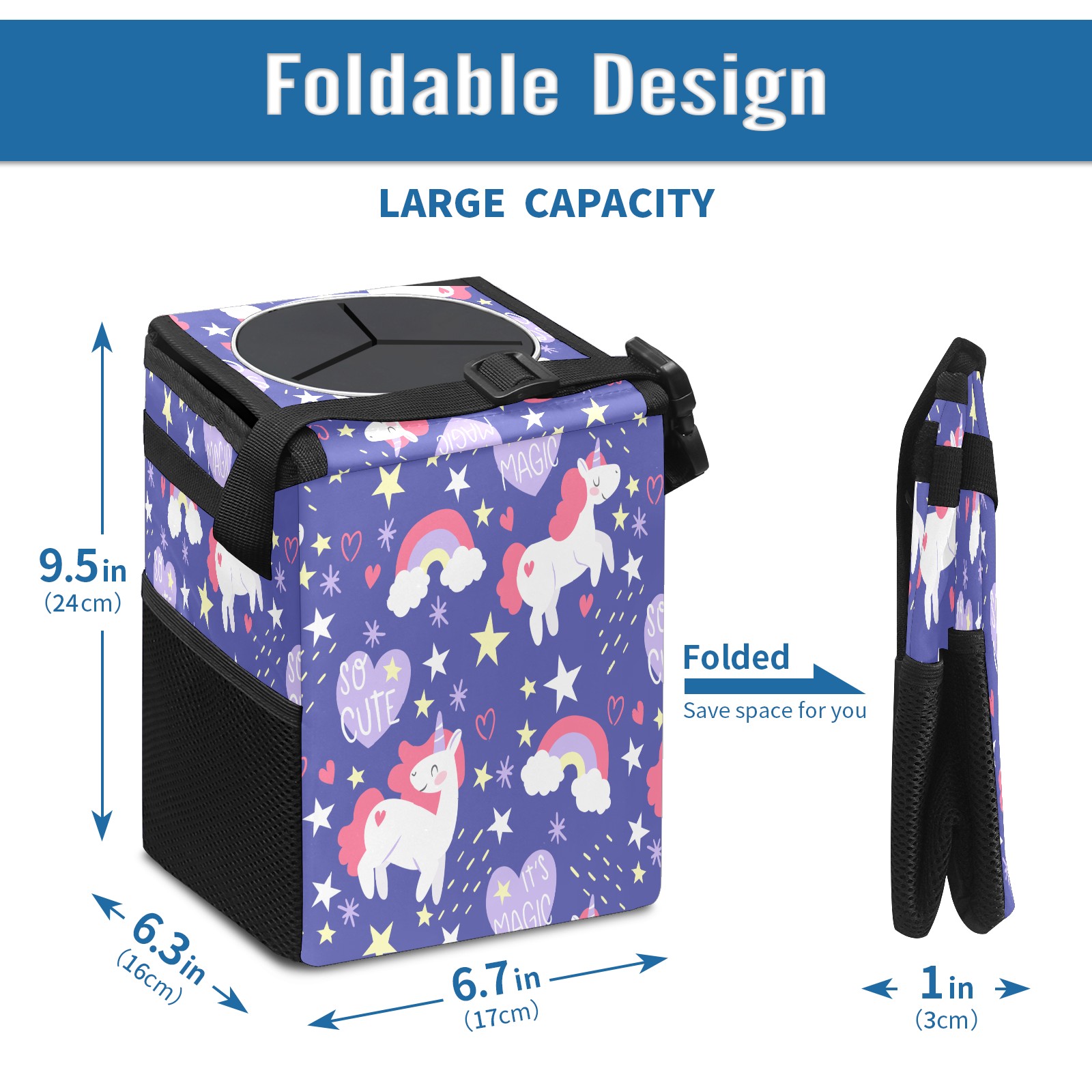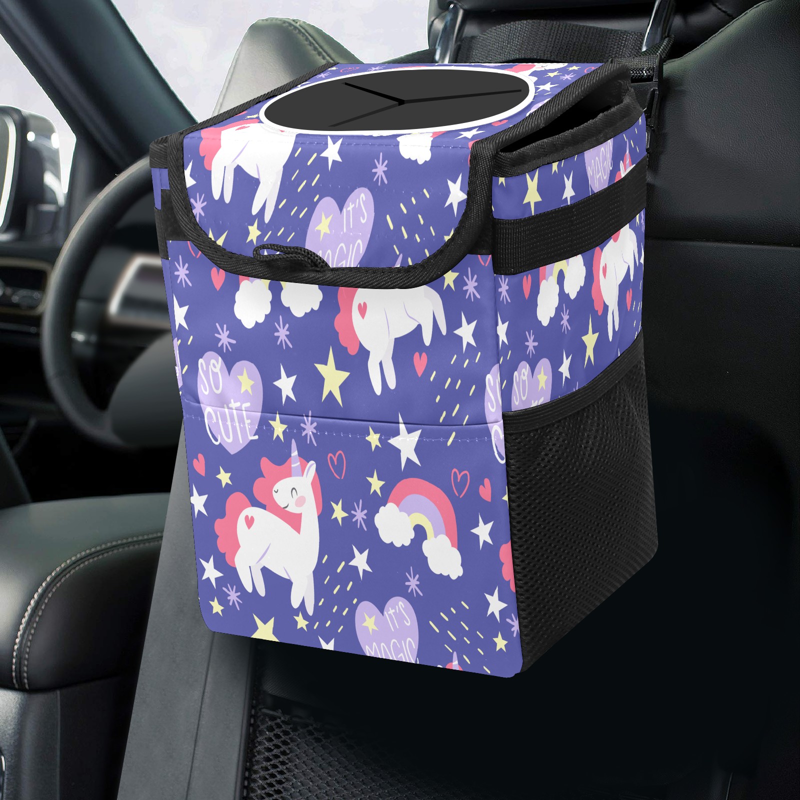 Car Garbage Can — Multi-functional, Lightweight Portable, Reusable Vehicle Trash Can, Waterproof with Sufficient Storage Capacity Colorful Unicorns Pattern
