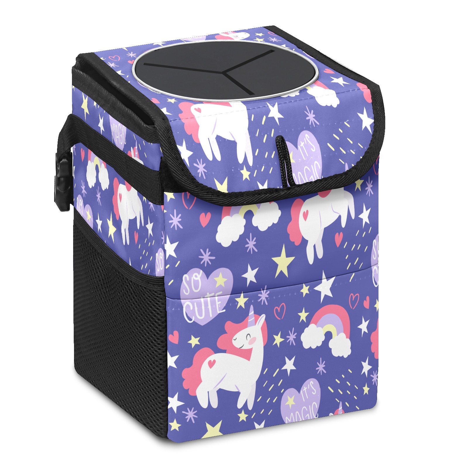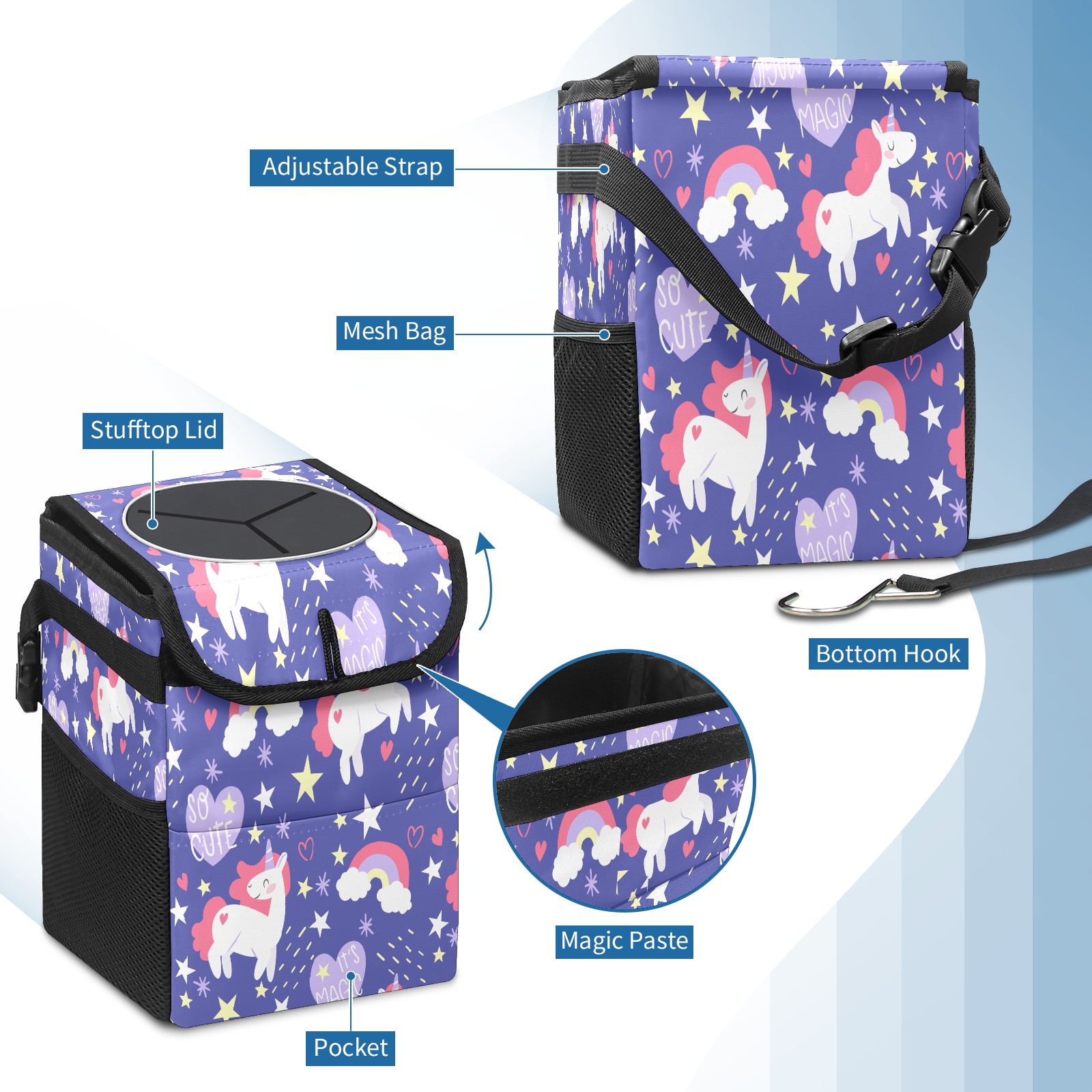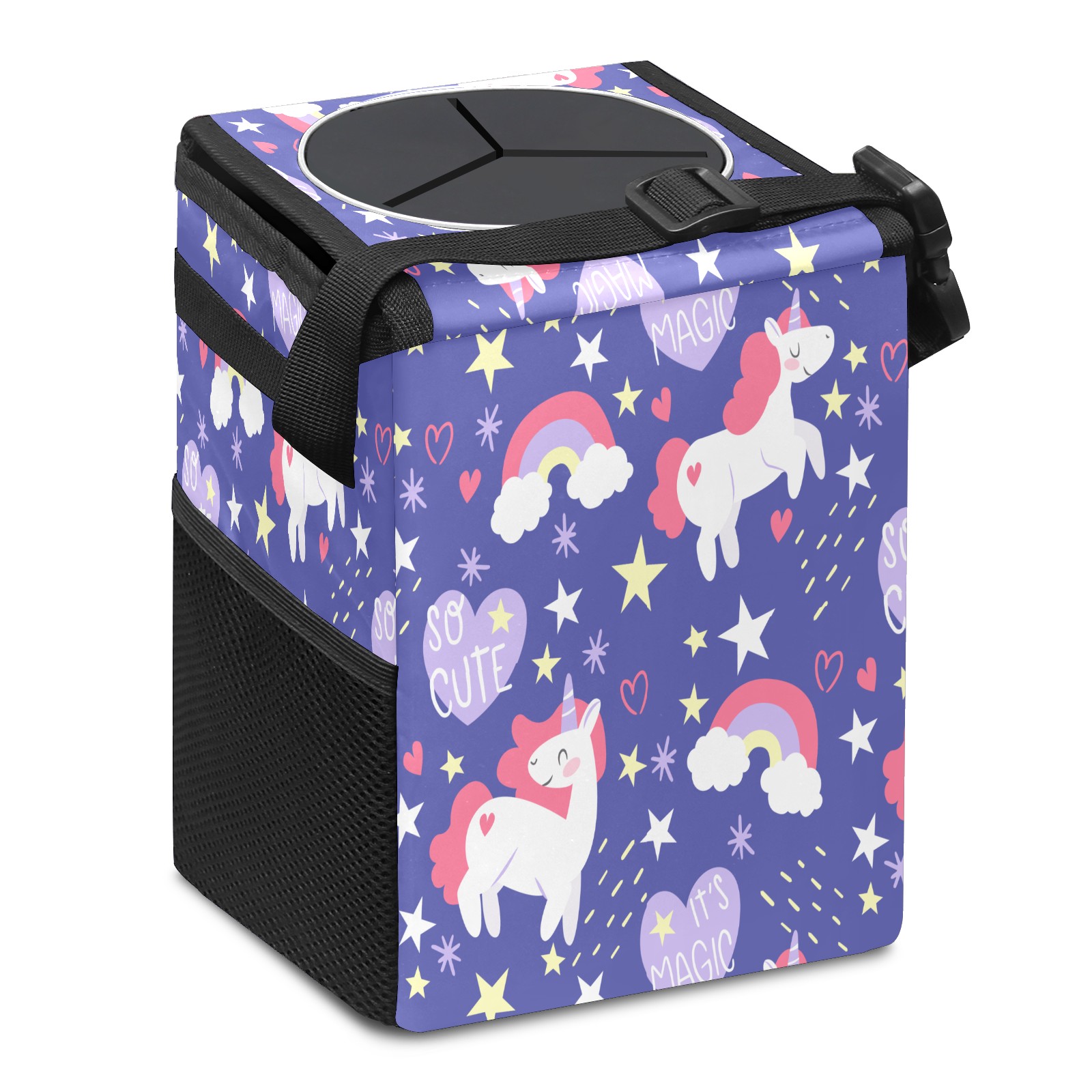 Car Garbage Can — Multi-functional, Lightweight Portable, Reusable Vehicle Trash Can, Waterproof with Sufficient Storage Capacity Colorful Unicorns Pattern