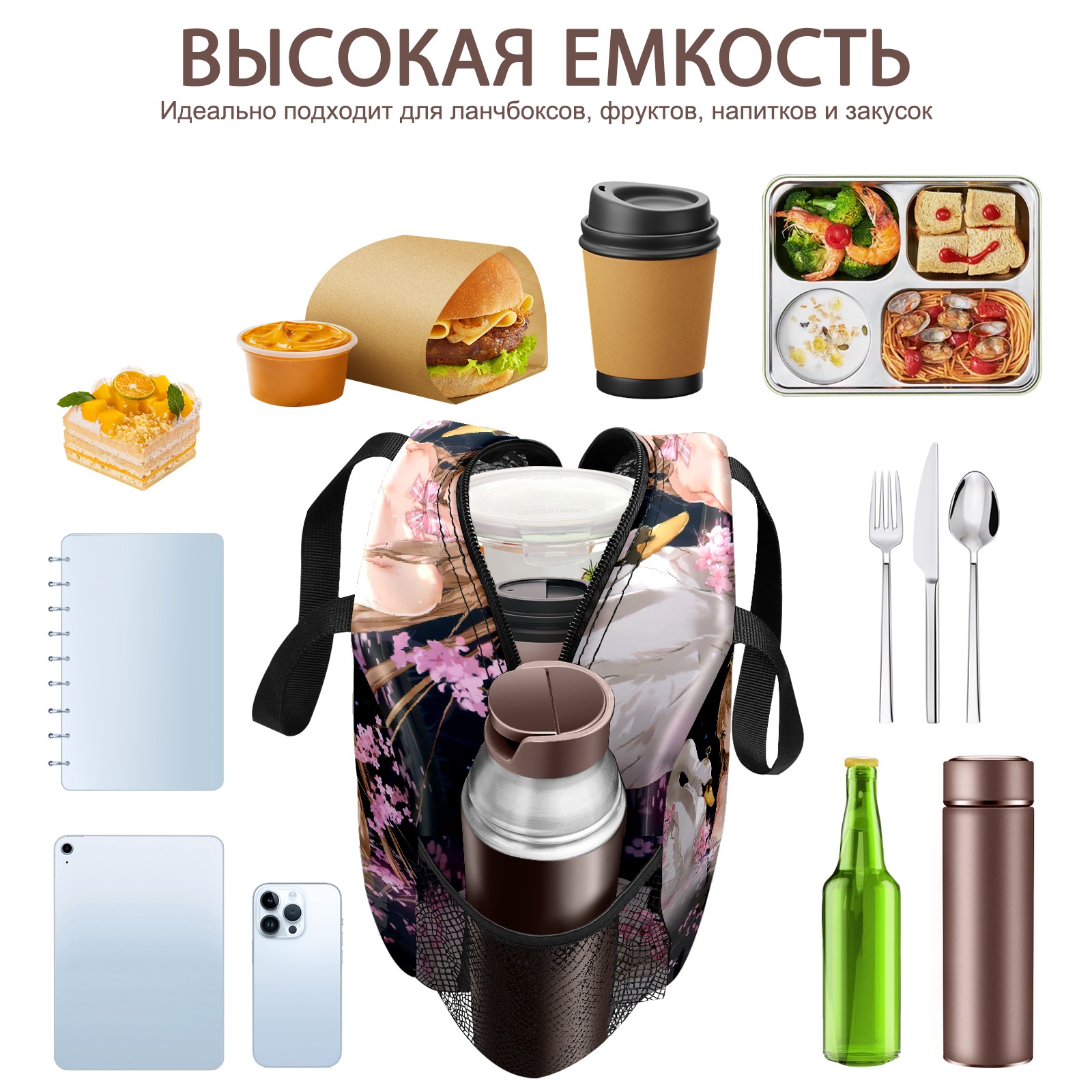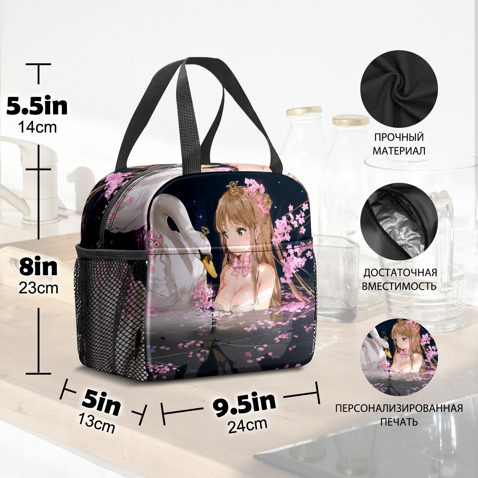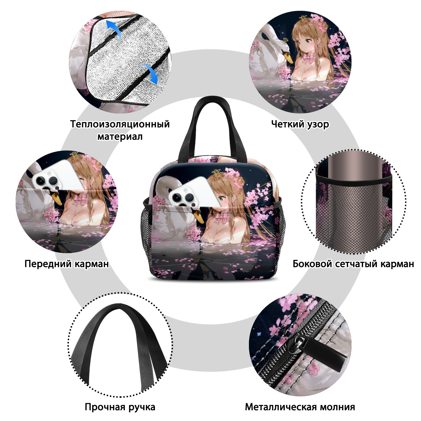 Lunch Bag,Lunch Box for Women Men,Swan And Girl Anime Reusable Insulated Lunch Tote,Small Leakproof Cute Lunch Cooler with High Capacity for Work,Picnic,Camping
